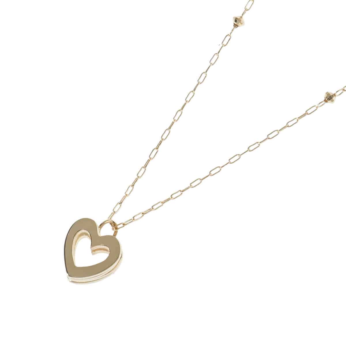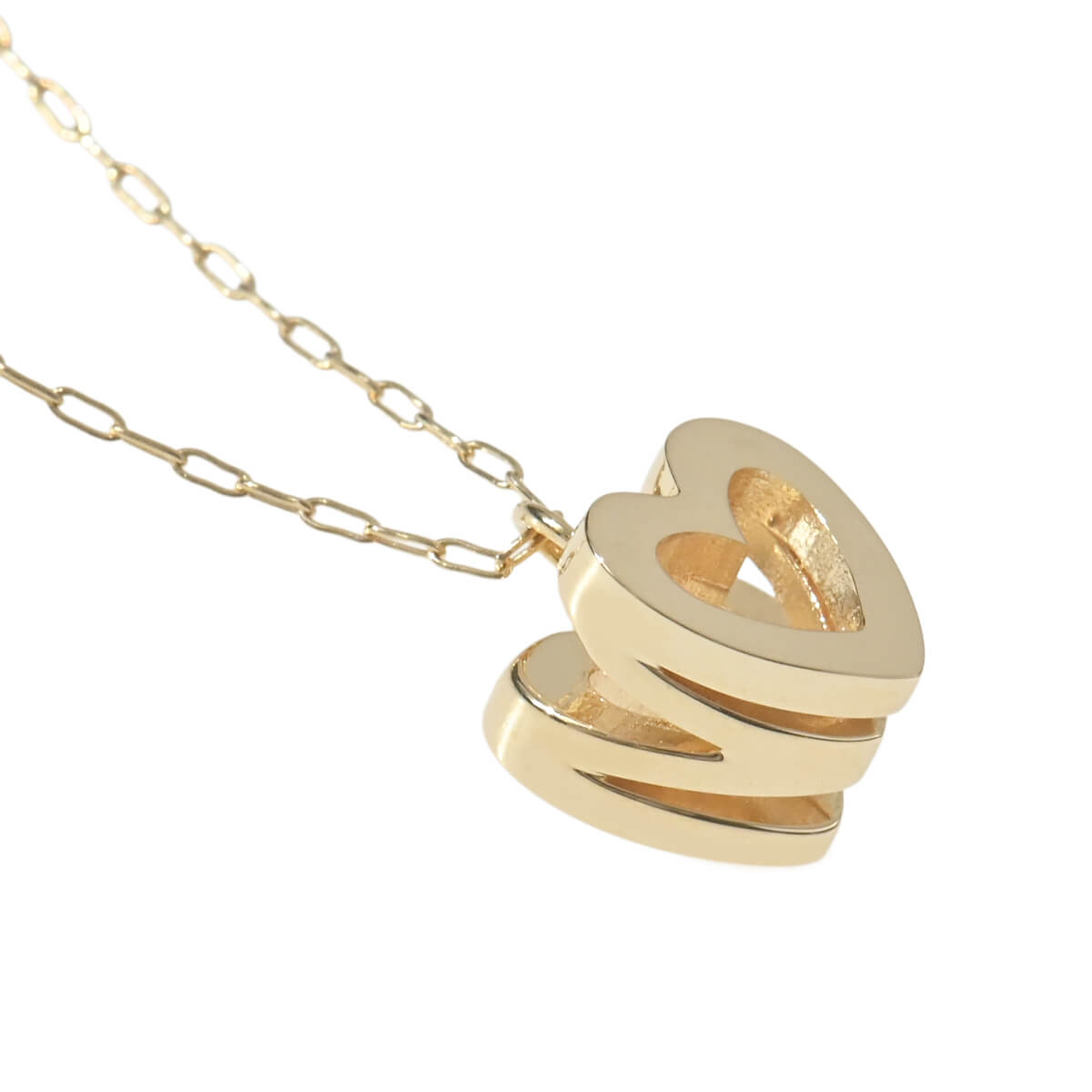 正面からは“M”、サイドからはハートに見える立体フォルムのモチーフがひとつ、繊細なデザインチェーンにあしらわれた、イエローゴールド製ペンダントネックレス。遊び心のあるデザインが、さりげない個性と大人の可愛らしさでデコルテを彩ります。軽やかな着け心地と、可愛い価格も魅力のゴールドジュエリー。自分のイニシャルはもちろん、大切な人のイニシャルを選ぶのも素敵ですね。