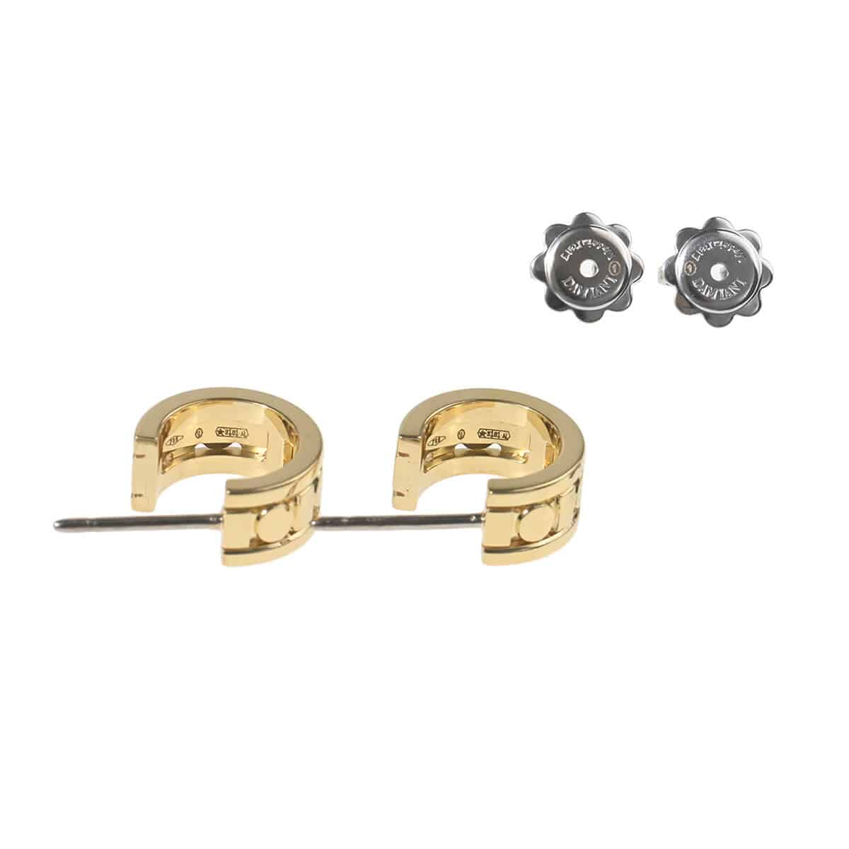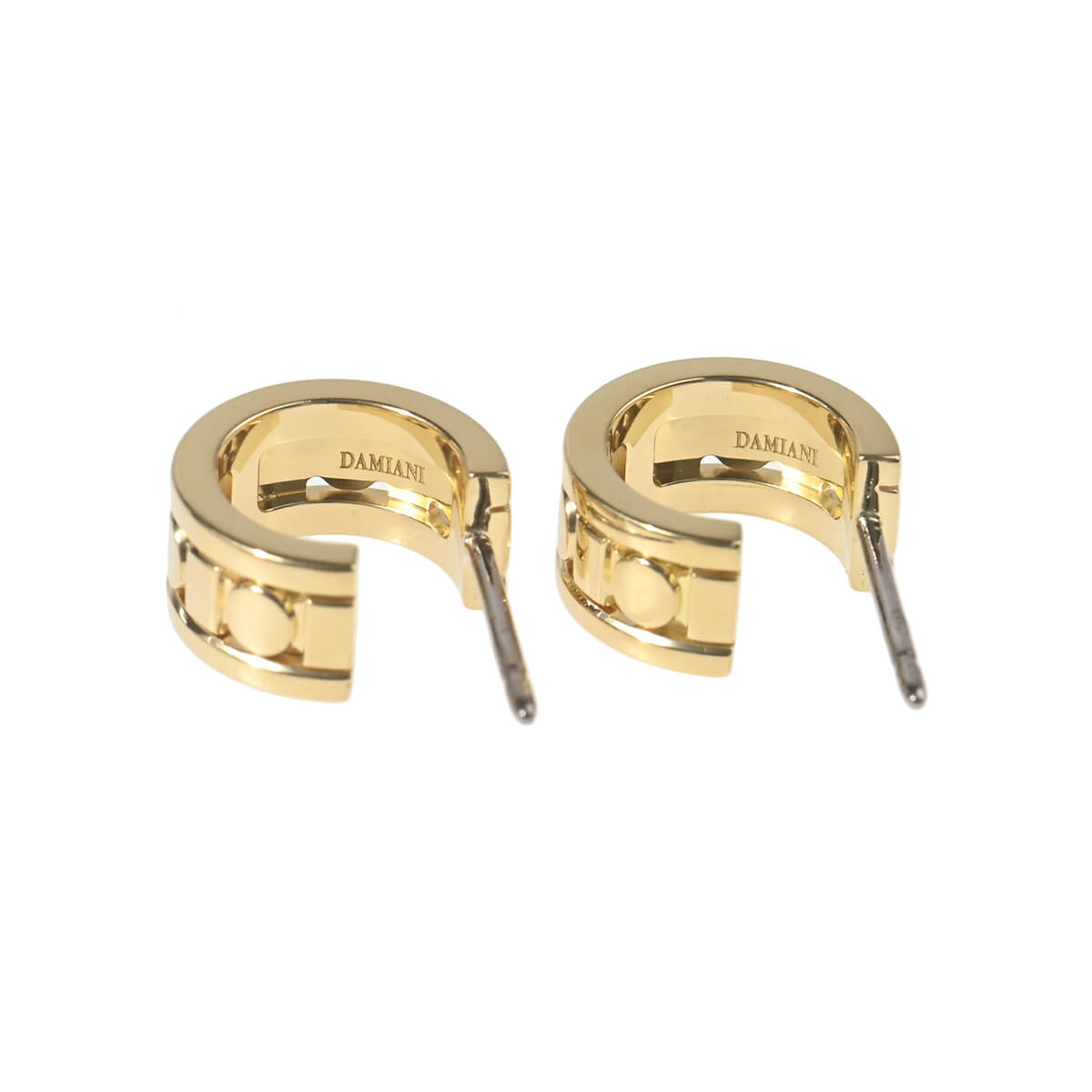 『DAMIANI(ダミアーニ)』を代表する、映画と視覚芸術にインスピレーションを得たオリジナルの「ベル エポック」コレクションの卓越したセンスやクラフツマンシップに、コンテンポラリーなエッセンスを添えたモダンなデザインが印象的な「ベルエポック リール」は、映画のフィルム“リール”をモチーフにしたコレクション。まるでソーシャルフィールドの複数の動画のように無限に広がる円や長方形、形の中の形が、とめどなく続くインフィニティのシンボルを表現しているんだとか。ラウンドとレクタングルを交互に連ねた程よいボリュームのデザインフープが横顔を飾る、イエローゴールド製ピアス。「ベル エポック」ならではの美の哲学と匠の技を宿したアイコンデザインはそのままに、コンテンポラリーなムードを備えたピアスが耳元で華やかな存在感を放ちます。