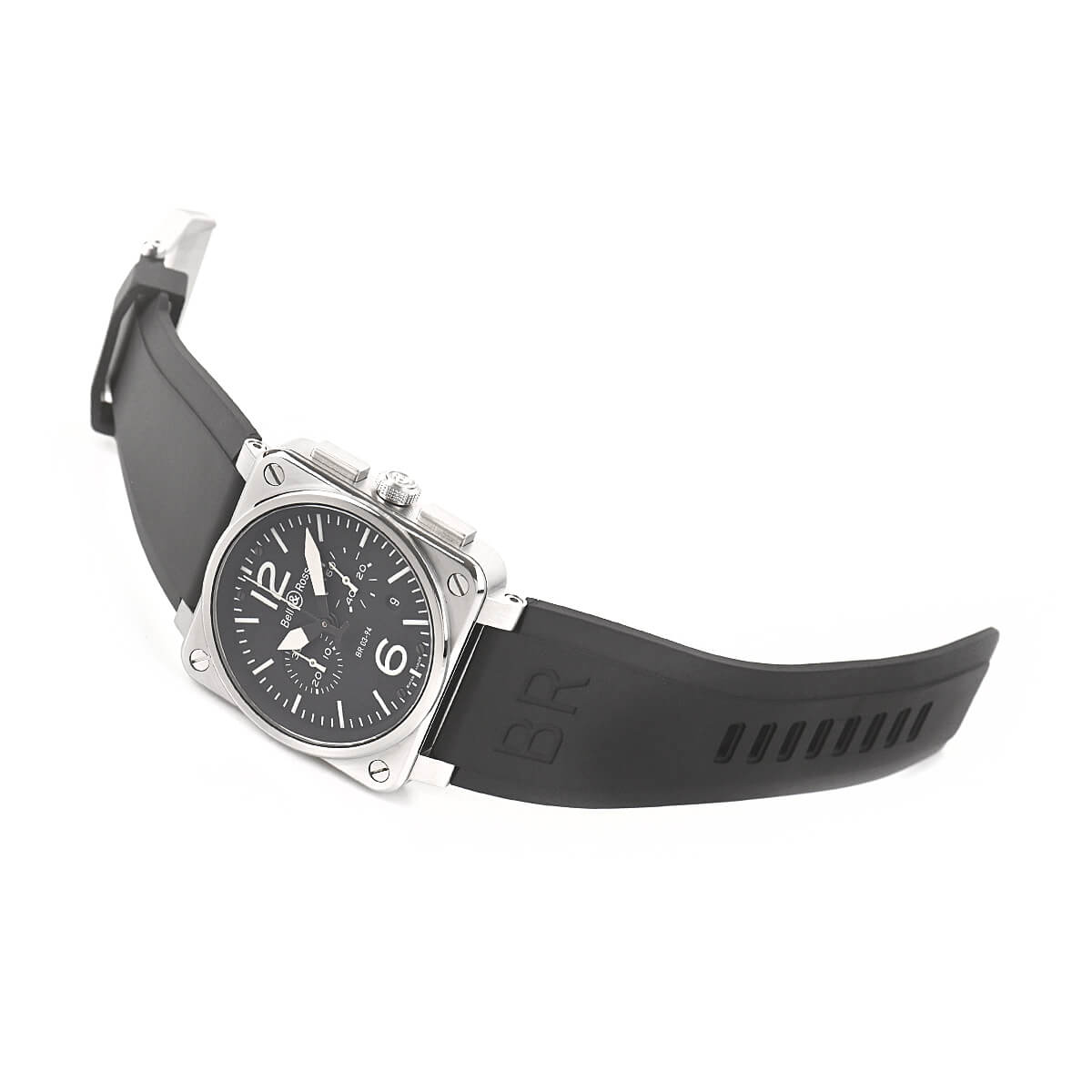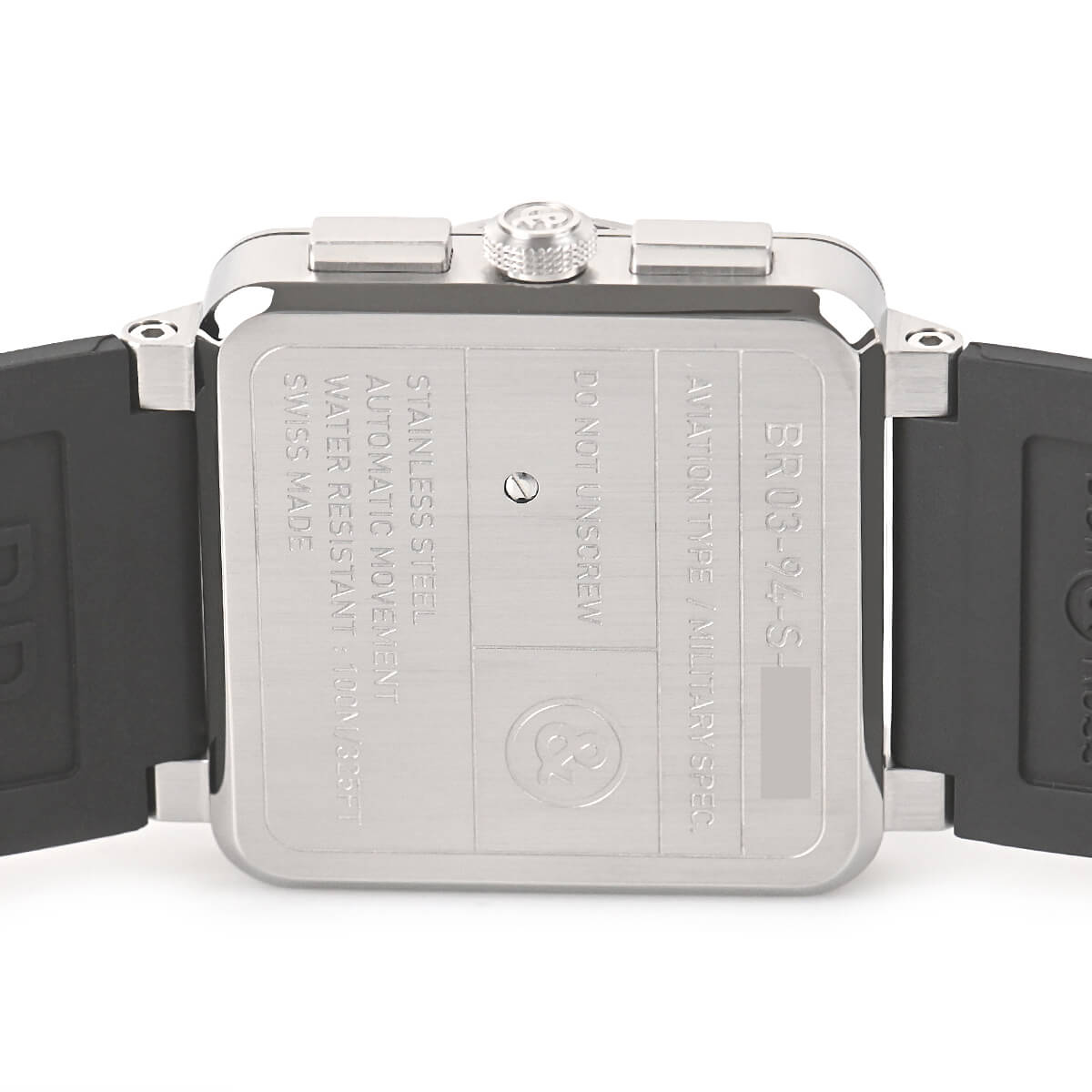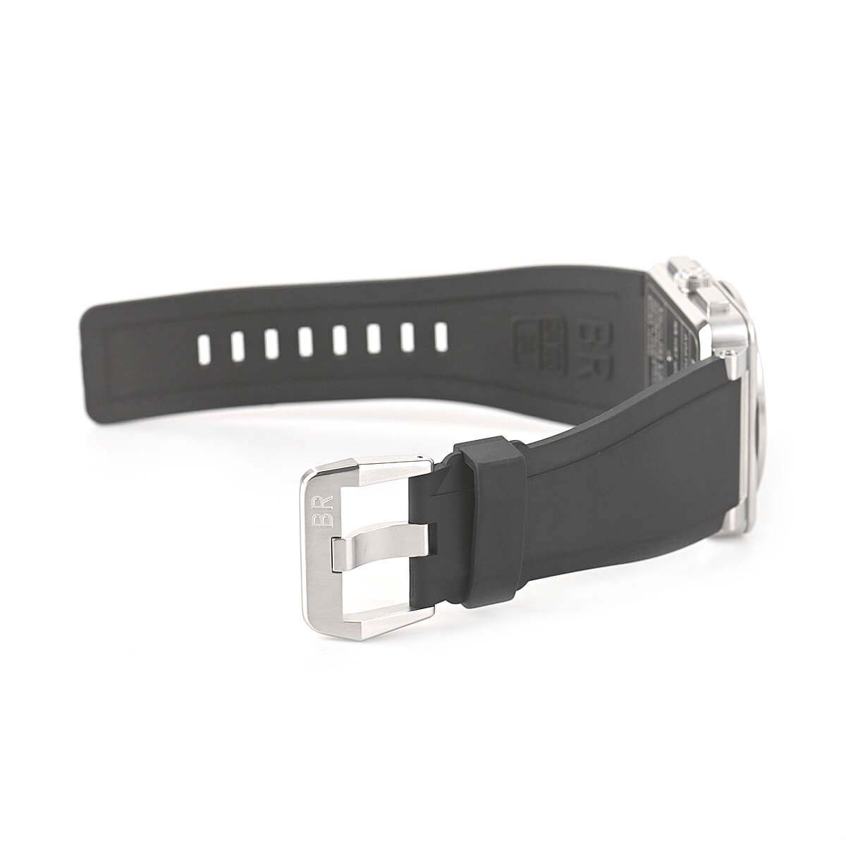 斬新な角形ケースが印象的なコレクション「BR03」。航空機のコックピット・クロックから発想を得たこの時計は、視認性を重視した機能的な道具という面が一段と強調されています。