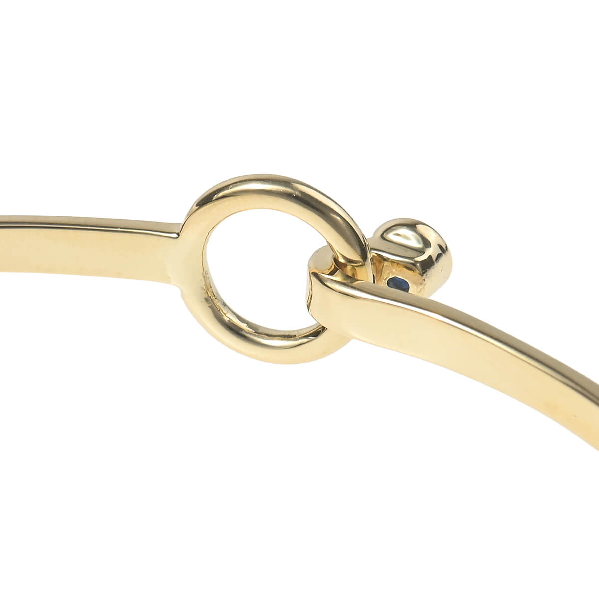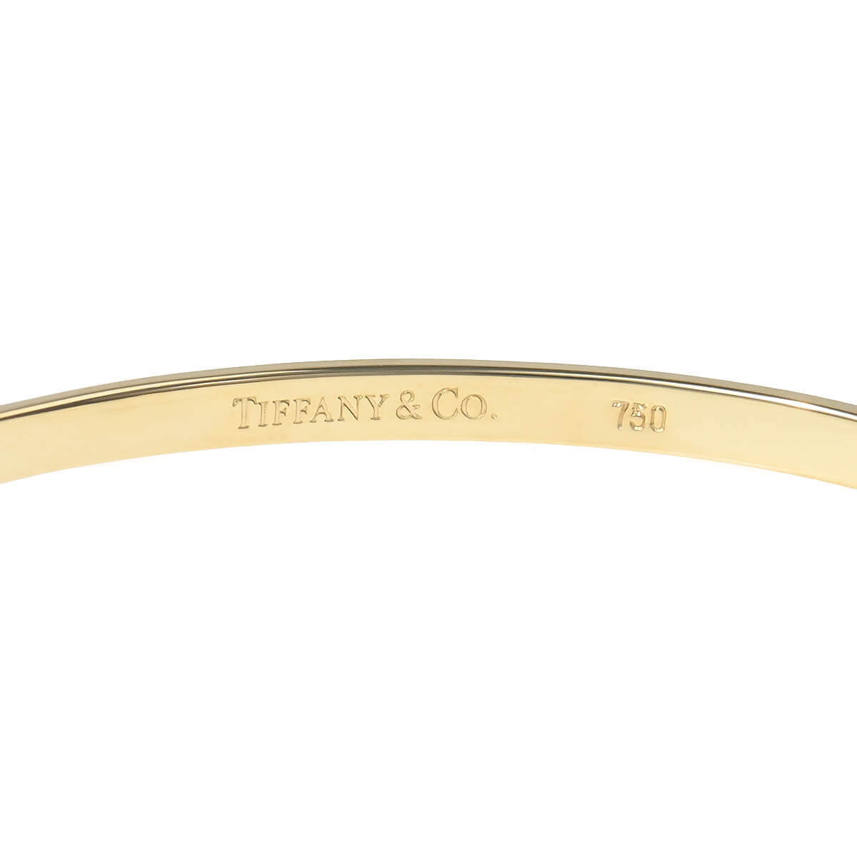 1837年にアメリカで創業以来、息を飲むほど美しい傑作の数々を創造してきた『TIFFANY&Co.(ティファニー)』は、時代をリードしながら常に上質なエレガンスを表現し、今やジュエリーのスタイルのスタンダードとなりました。シンプルでありながら『TIFFANY&Co.(ティファニー)』ならではのさりげなくも印象的なデザインが目を惹く、フックデザインのイエローゴールド製バングルです。先端にサファイアが煌めくフックのモチーフがそのままクラスプになったデザインは、これ以上ないほどシンプルなのに印象的。デザインや素材の異なるブレスレットやバングルとのスタッキングも楽しめる、ティファニーならではの独創的なデザインが目を惹くバングルはユニセックスに使えます。ワイヤー形状のバングルは外れにくいにも関わらず、着脱のしやすさも魅力です。