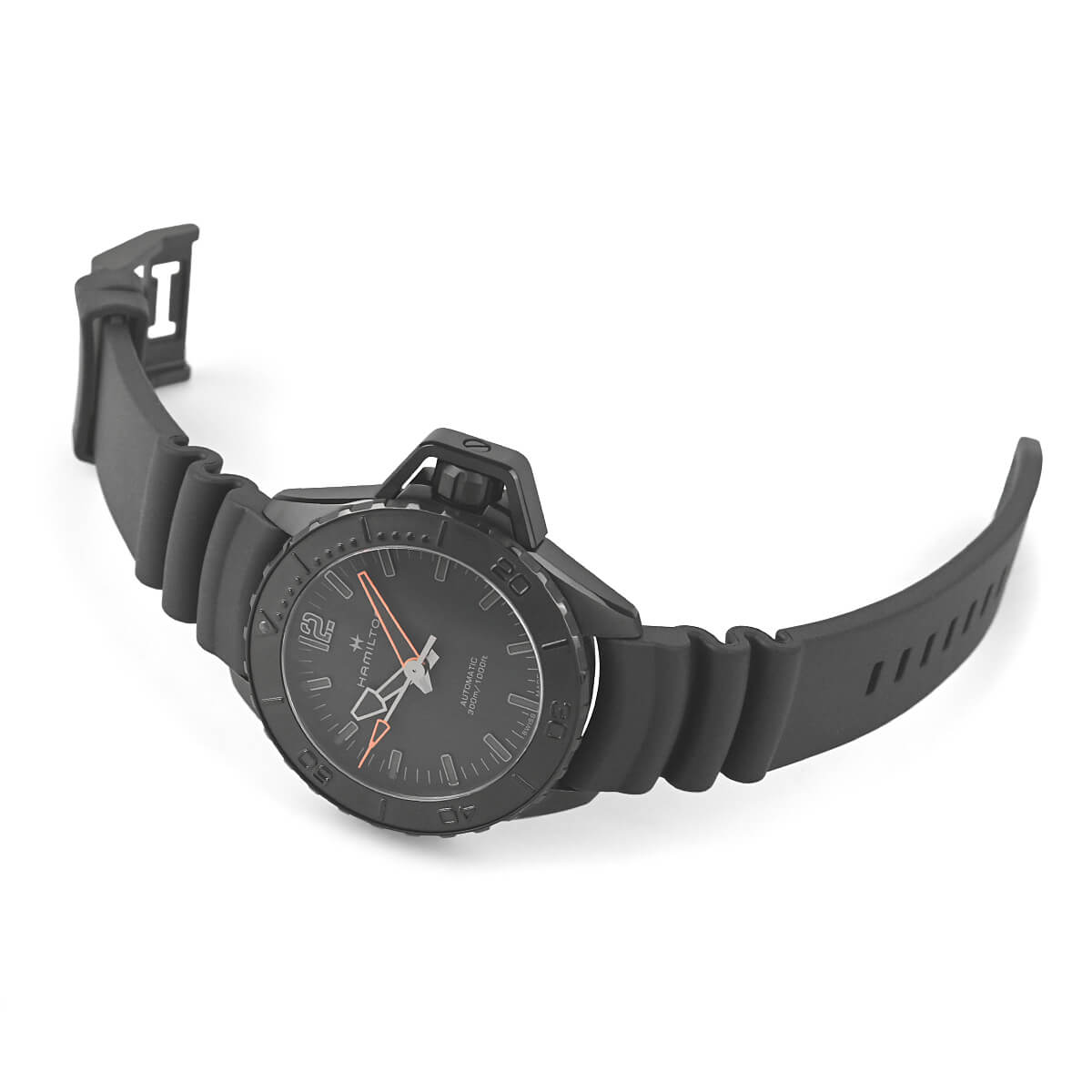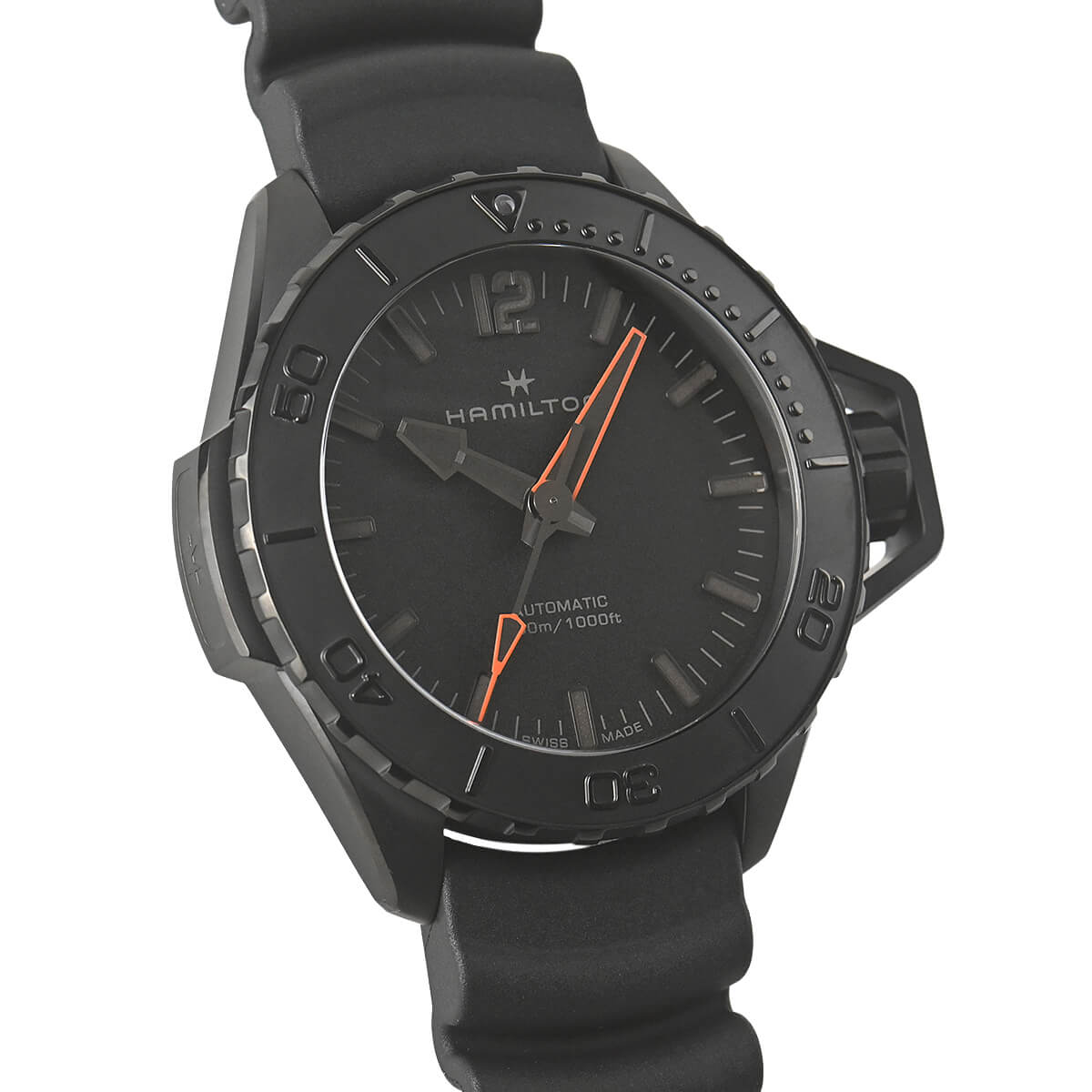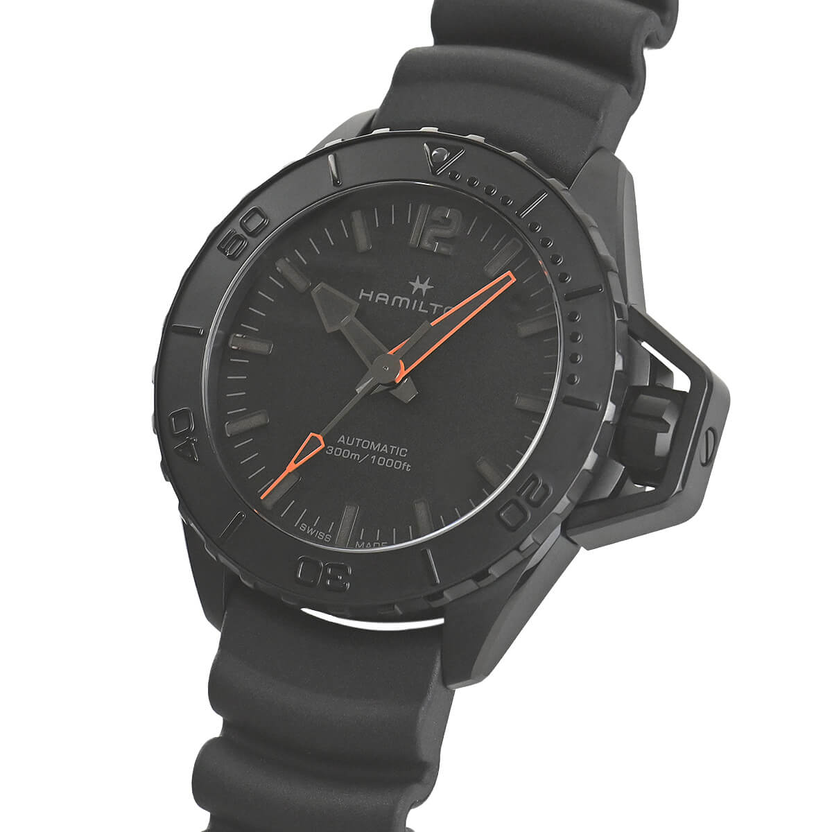 アメリカ海軍の水中工作員「フロッグマン」に供給される時計を元に作られた「カーキ ネイビー オープンウォーター オート」。精度、視認性、耐久性を追求したタフ・ウォッチです。