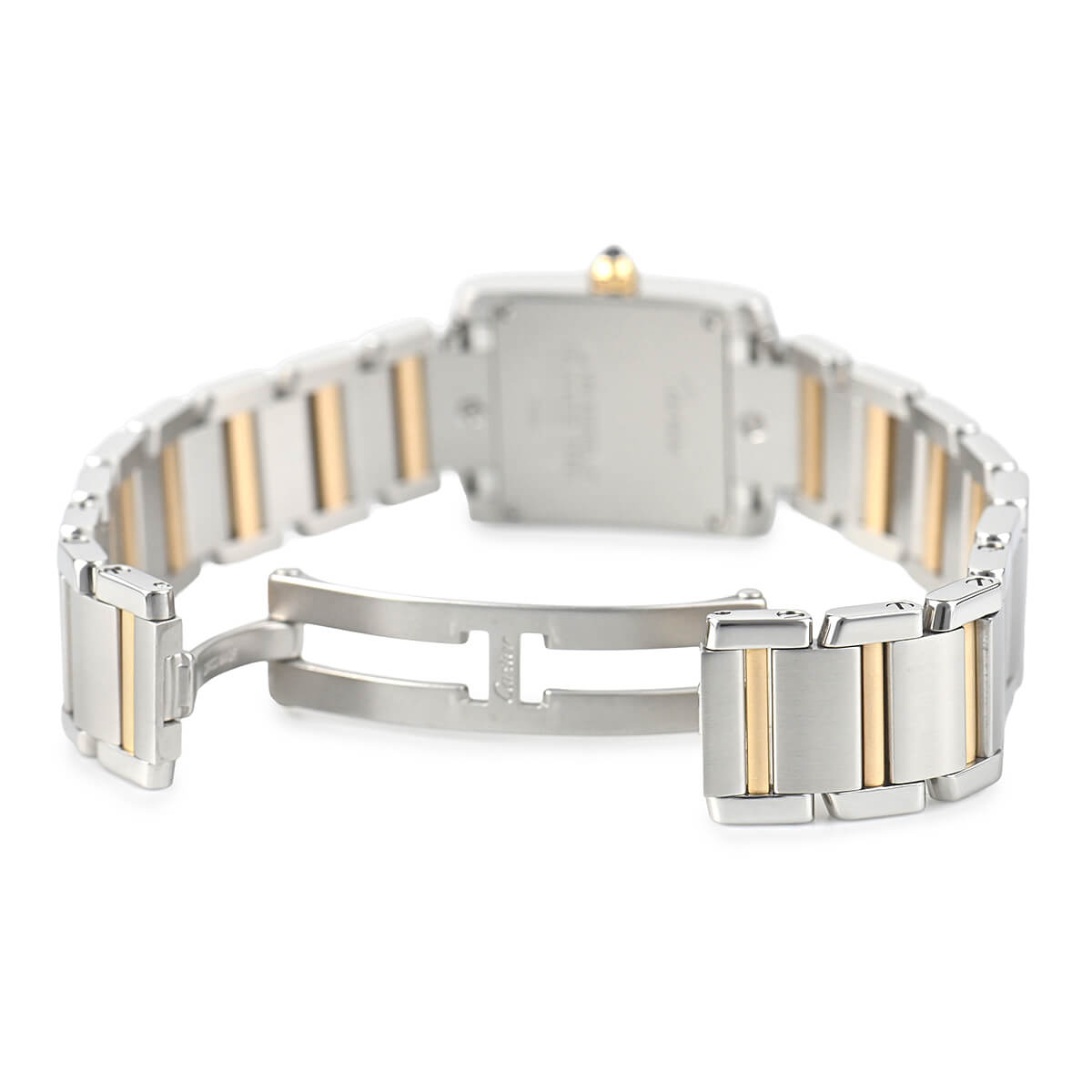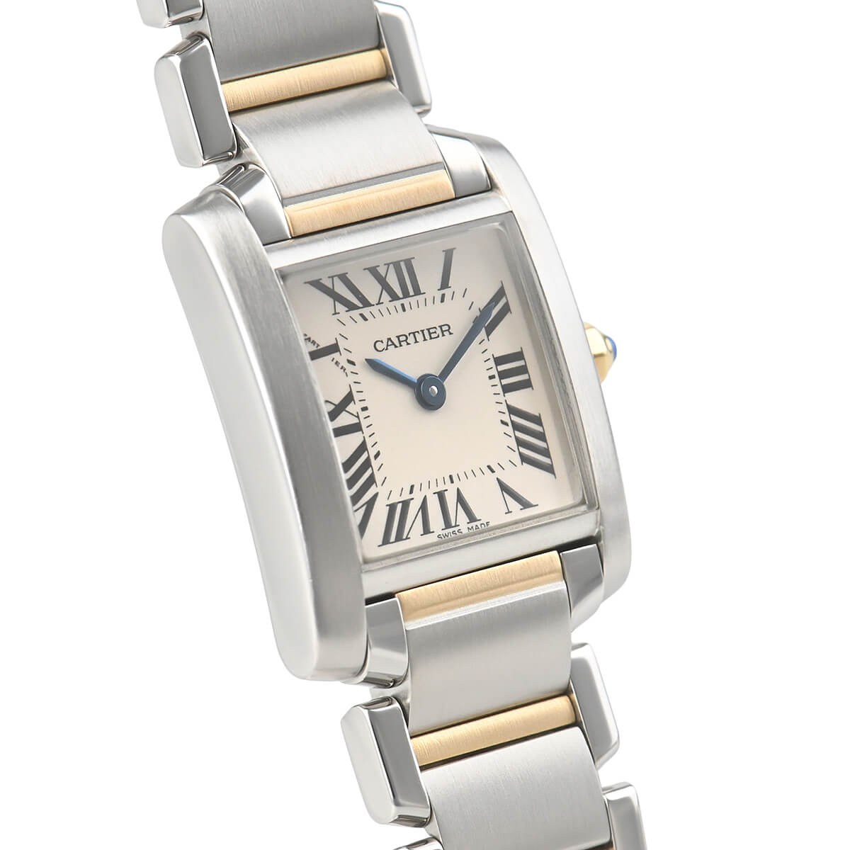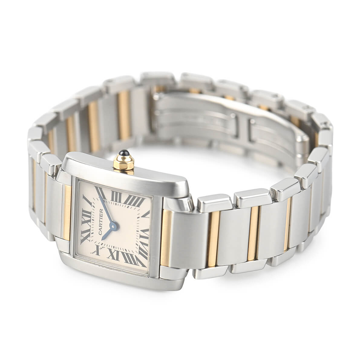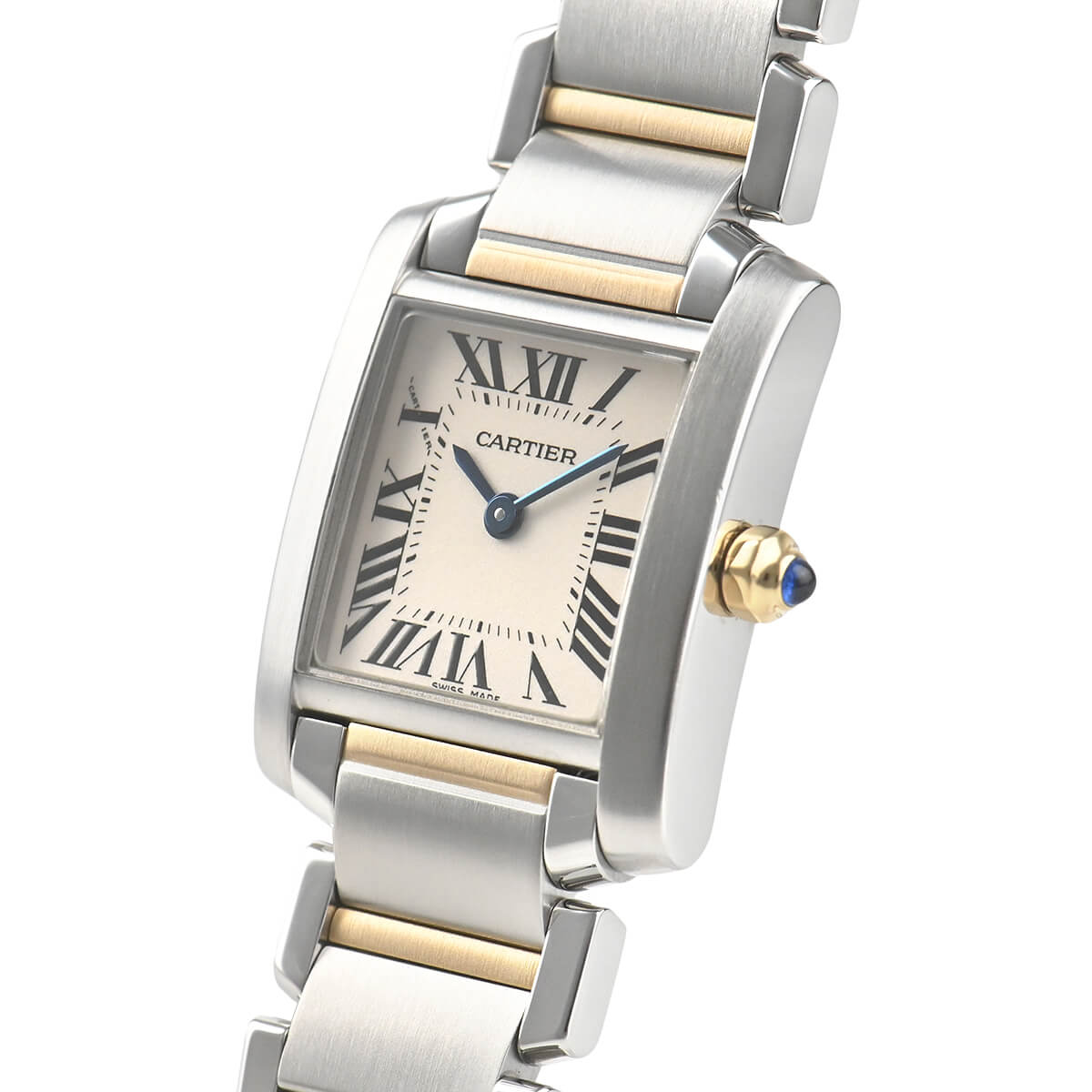 歴史の長いタンクファミリーの中では比較的新しいラインである「タンク フランセーズ」。すっかり定番になった感のあるモデルですが、今回は一番小さいSMサイズが入荷しました。コンビモデルですので、アクセサリーとも合わせやすいのではないでしょうか。
