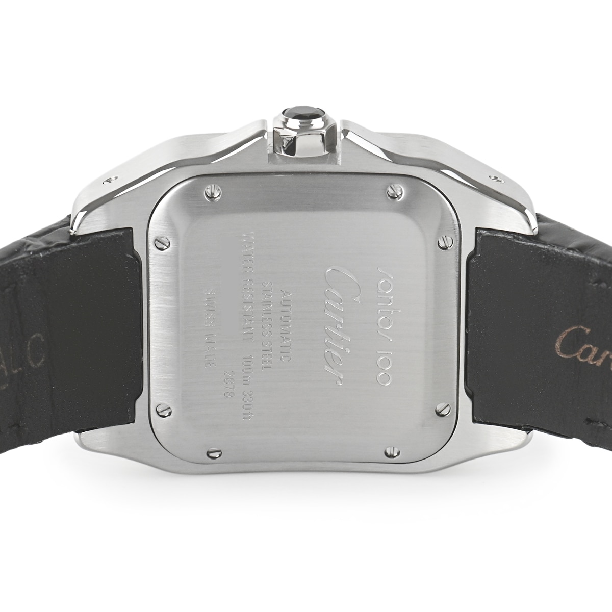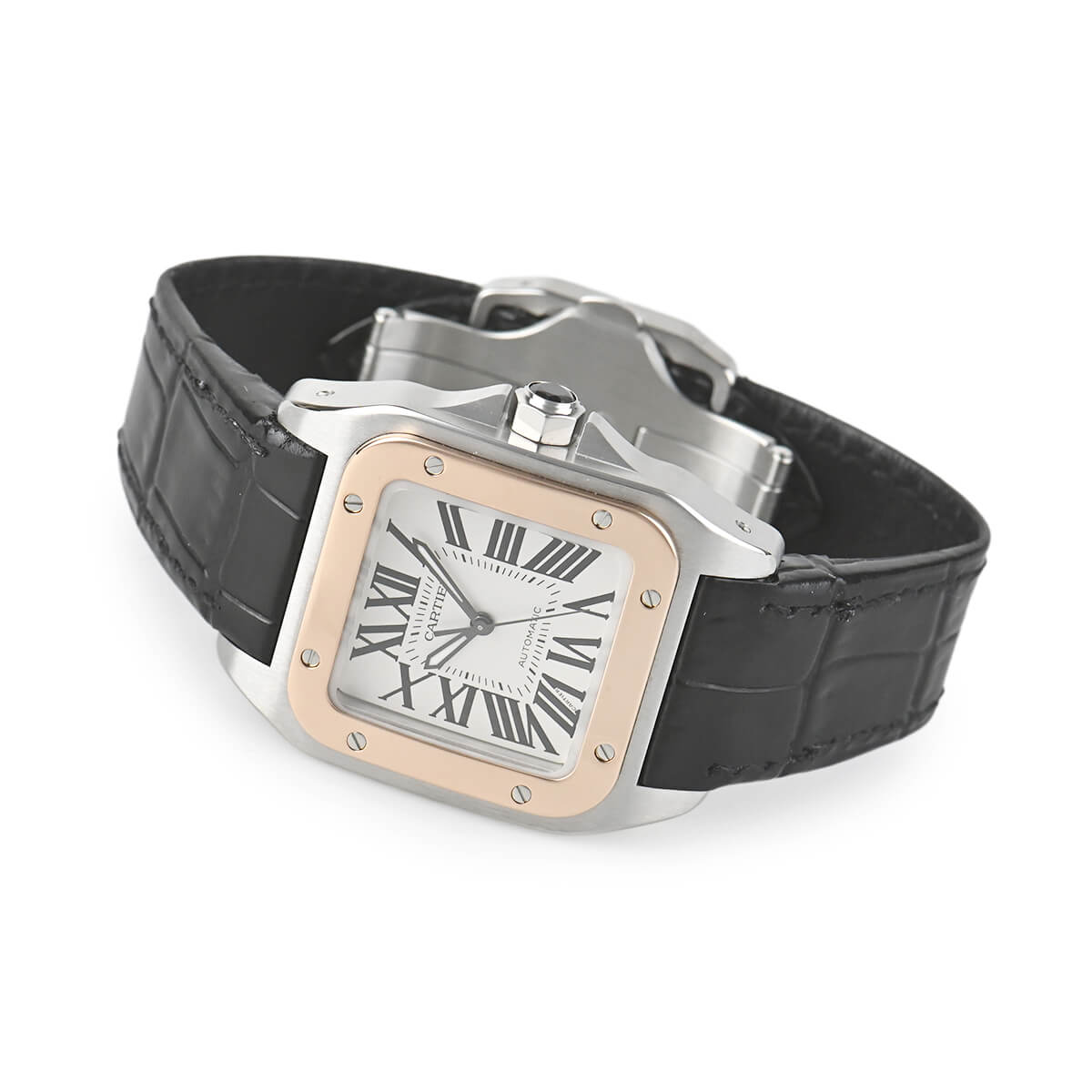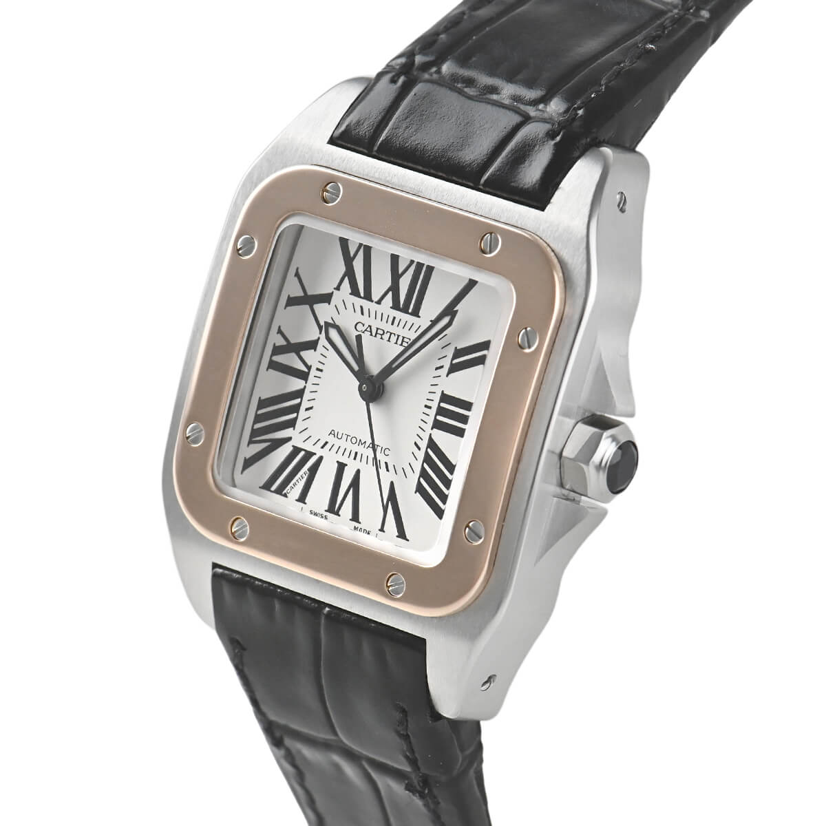 1904年、ルイ・カルティエが友人で飛行士のサントス・デュモンの『飛行中に時刻を確認したい』という願いを聞いて製作されたのが「サントスウォッチ」です。「サントス100」は、サントスの誕生から100周年を記念して2004年に発表されました。