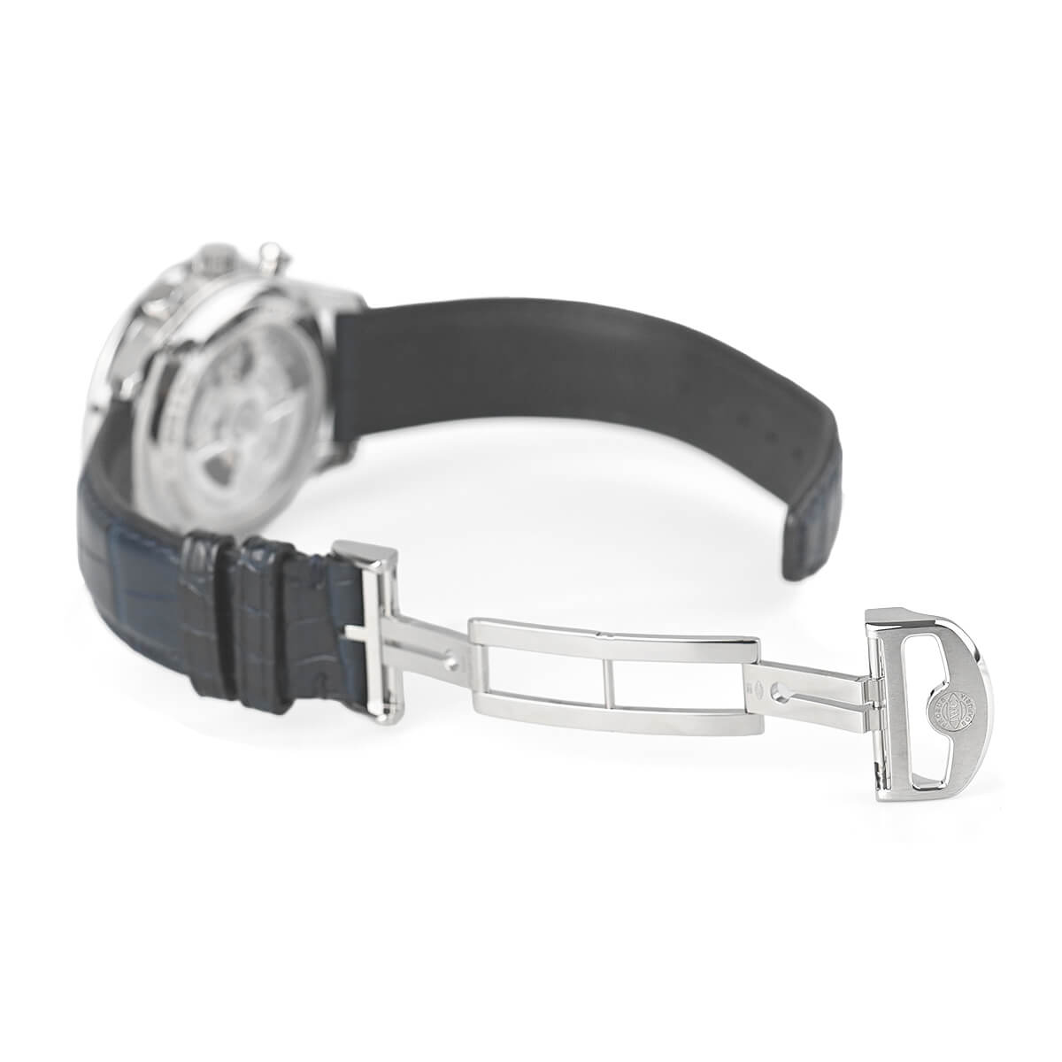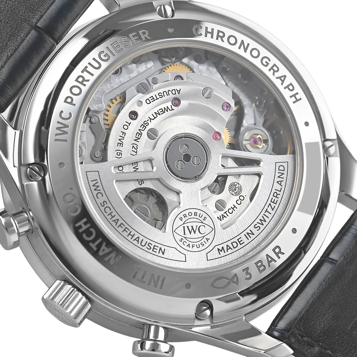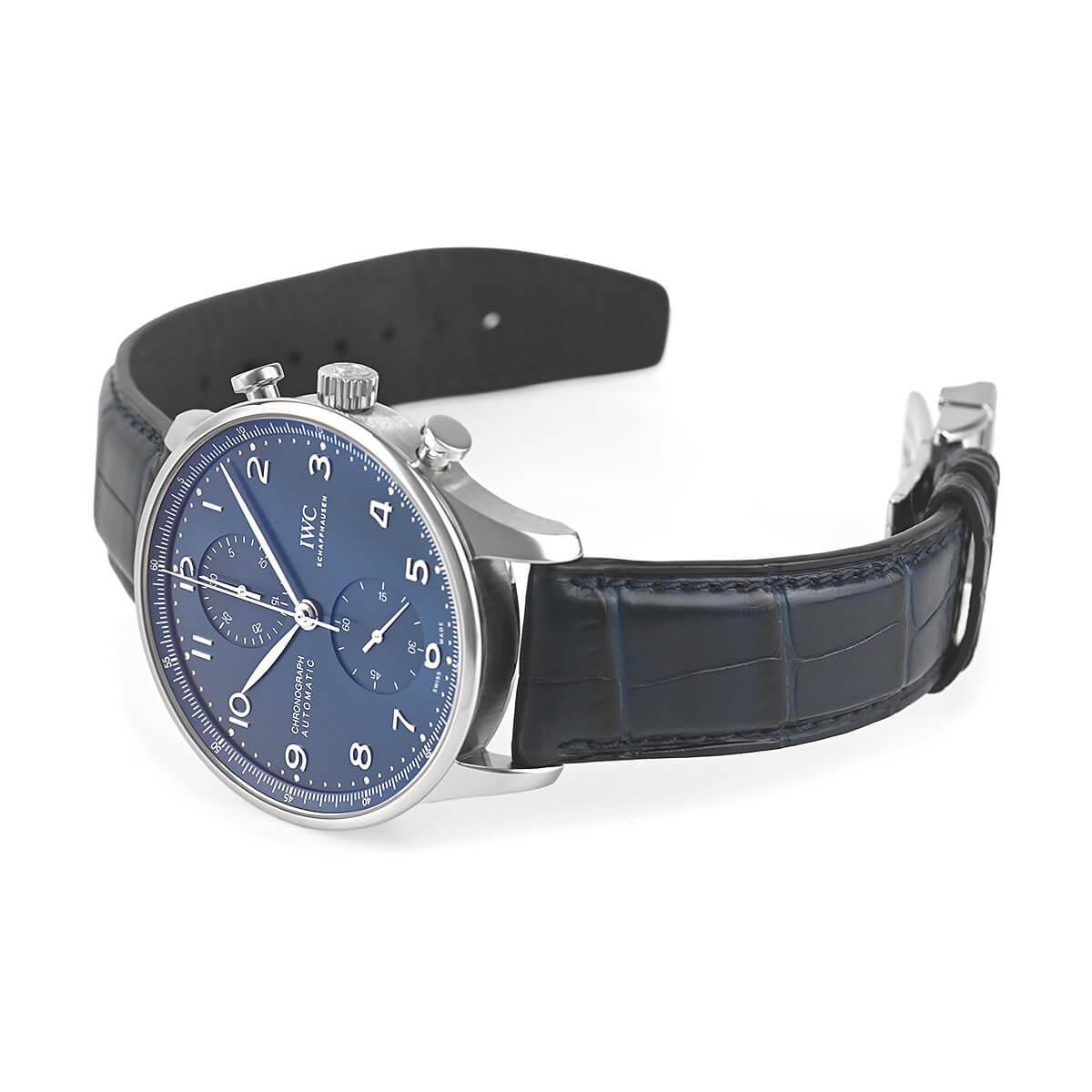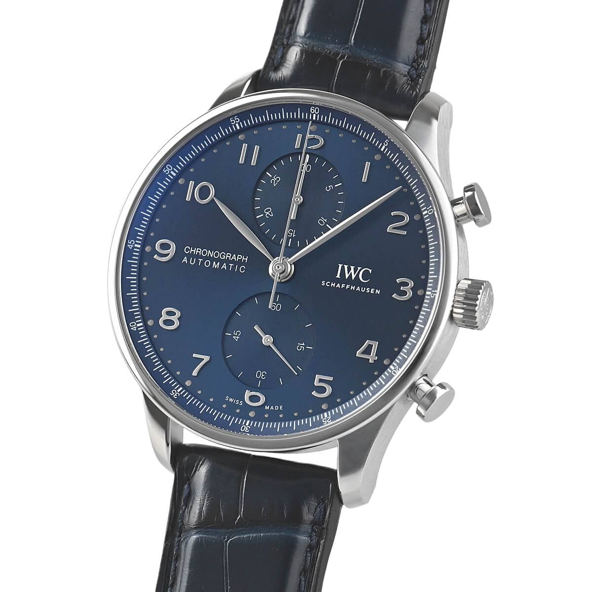 ポルトガル人時計商の依頼により1939年に誕生した「ポルトギーゼ」。「ポルトギーゼ クロノグラフ」は、クラシックな基本デザインはそのままに、細部は現代的にアップグレードされたいつの時代でも使いやすいモデルです。