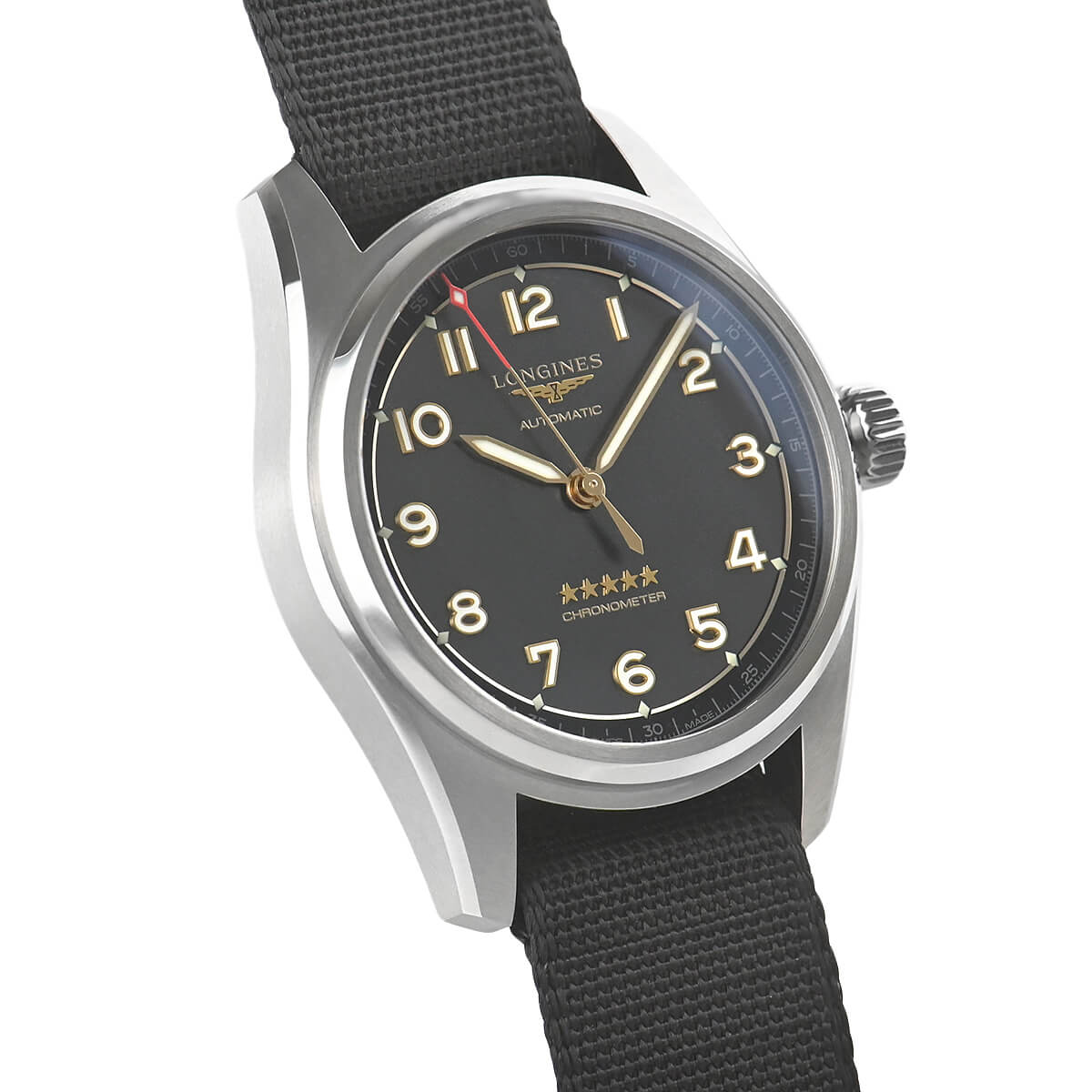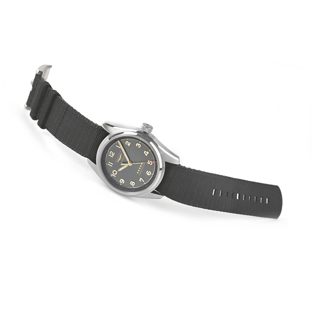 クラシックなパイロットウォッチのデザインを踏襲しながらも、アワーインデックスと針にはスーパールミノバを塗布し、更に秒針の先端には赤いペイントを施してコックピット内や暗所での視認性の向上を図っています。