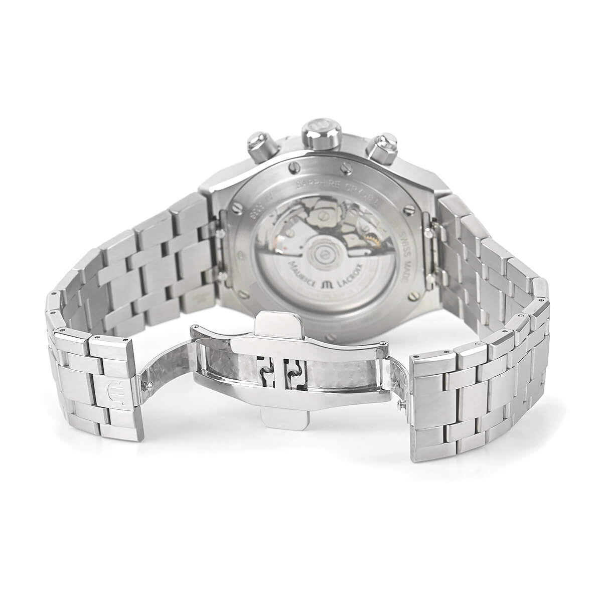 モーリス・ラクロアが2016年から展開する新しいライン「アイコン」シリーズ。こちらの【アイコン オートマティッククロノグラフ】は、1990年代に人気を博したベゼル上の6つの爪が特徴の「カリプソ」を現代風にアップデートして復刻されたモデル。