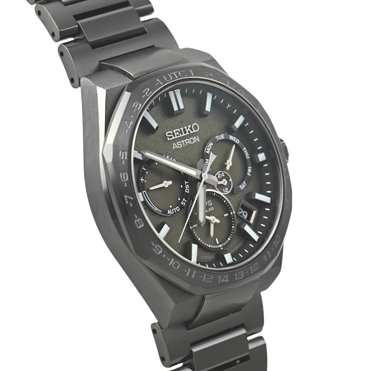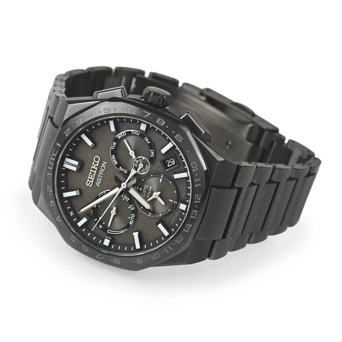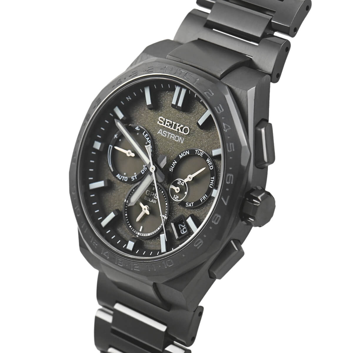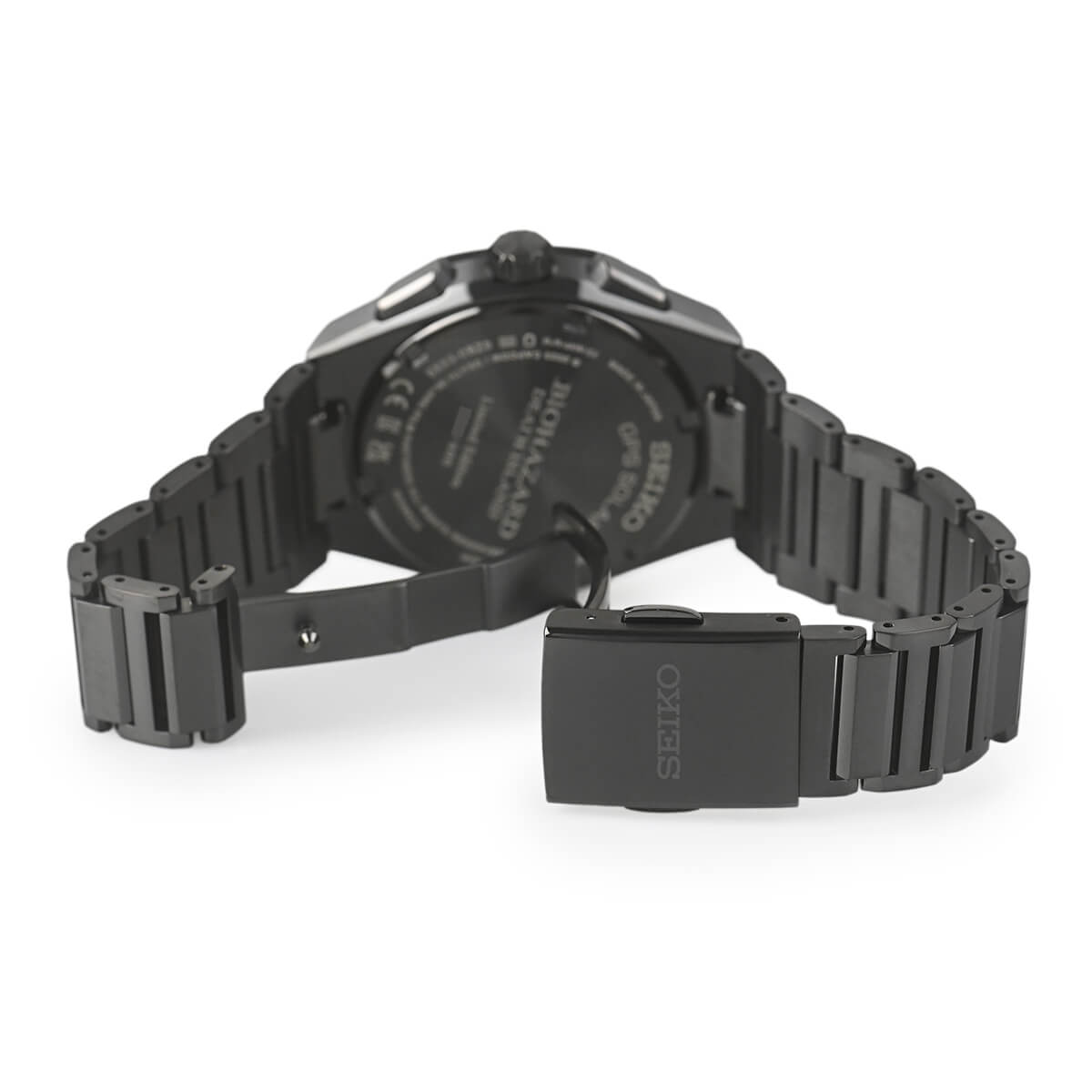 ケース・ブレスレットはスーパーブラックダイヤシールドを施したチタンを採用。