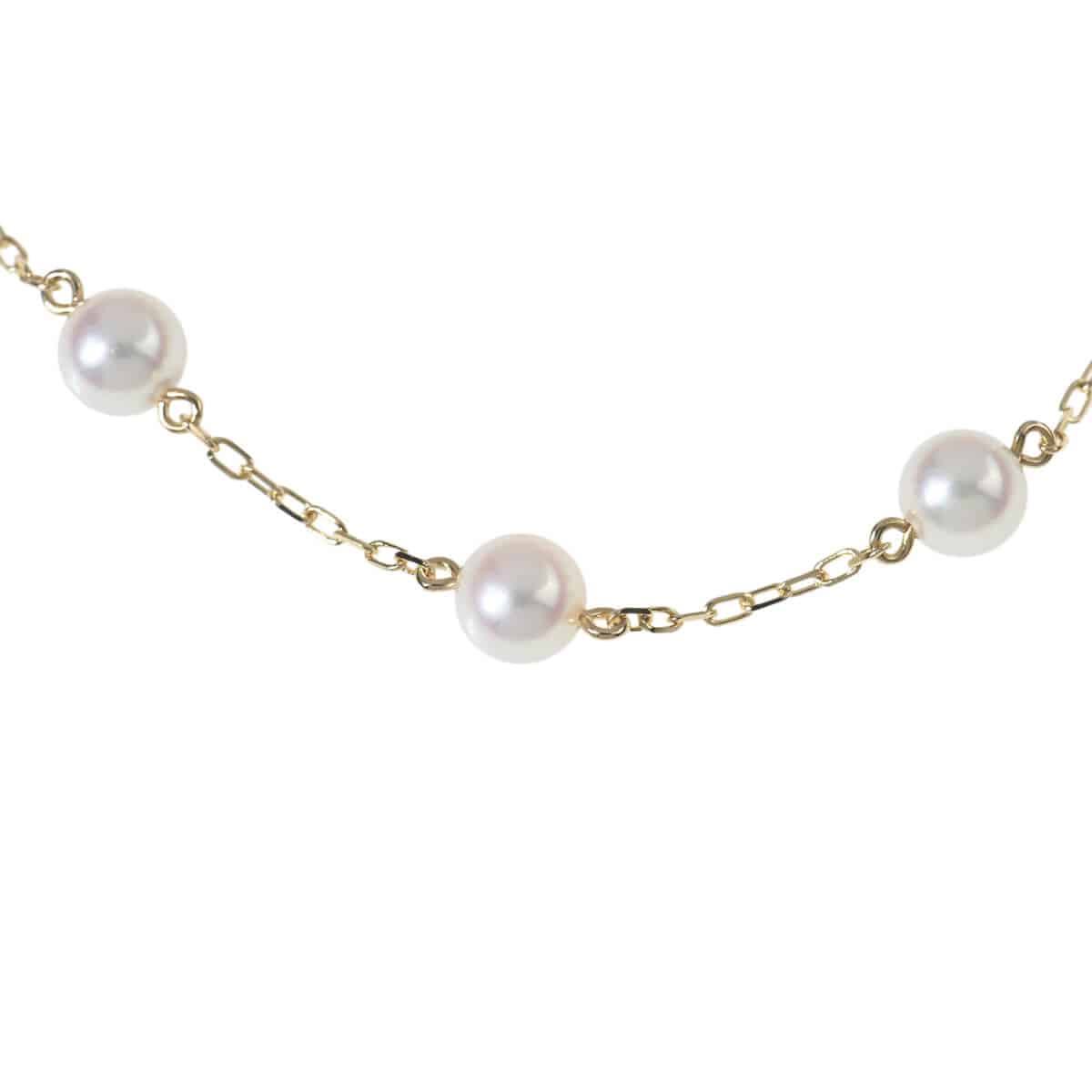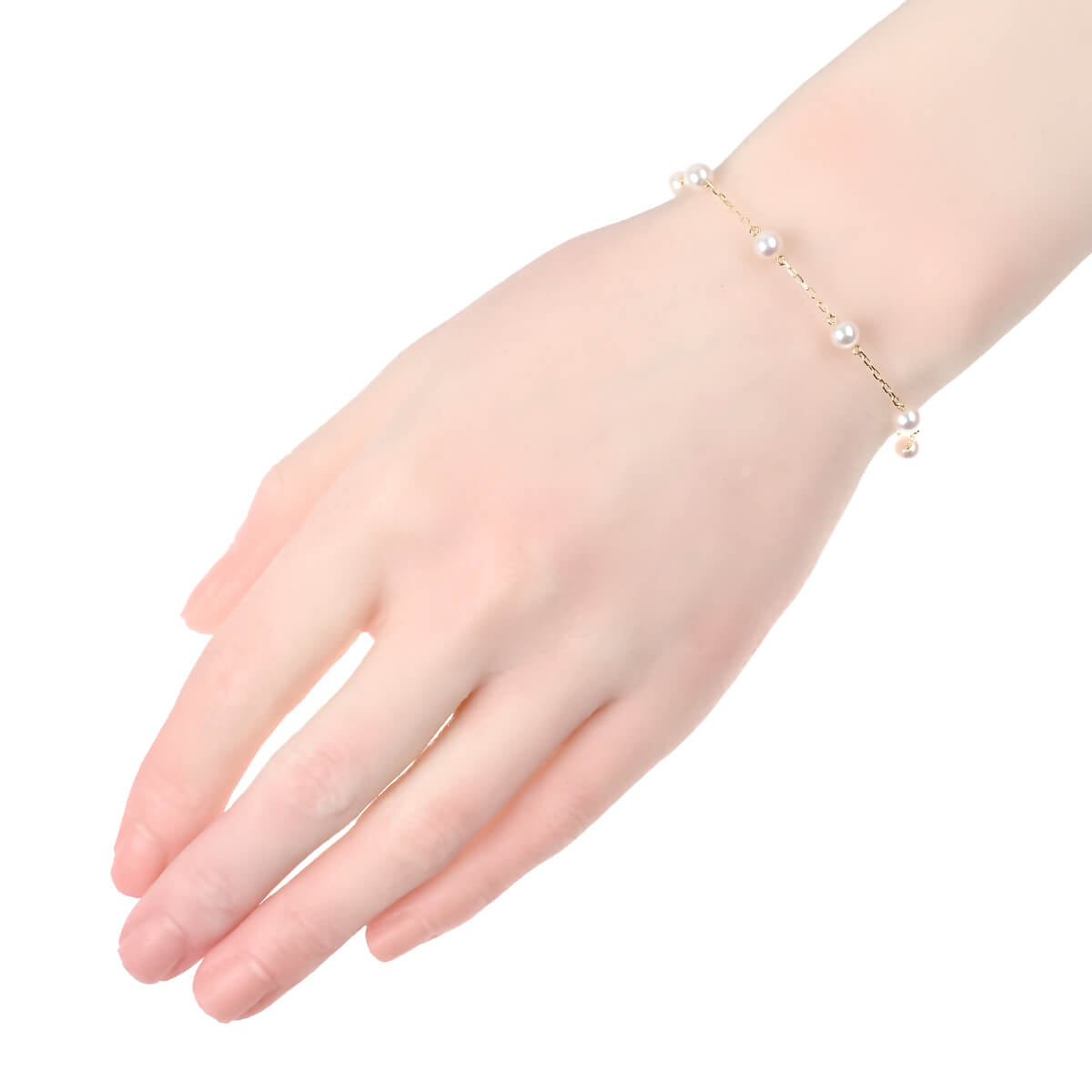 1893年に世界で初めて真珠の養殖に成功し、真珠に生涯を捧げ、「Pearl King(真珠王)」とまで呼ばれ歴史にその名を刻んだ「御木本幸吉」が、“世界中の女性を真珠で飾りたい”と夢を抱いて創業した『MIKIMOTO(ミキモト)』。以来、養殖真珠のオリジネーターとして120年以上も真珠の魅力と向き合い、“真珠と言えばMIKIMOTO”と言われるほどに誰もが知る、日本を代表する世界のジュエラーとなりました。小さいながらも優しく柔らかな光を放つ8粒の愛らしいパールが繊細なチェーンにステーションセッティングされた、イエローゴールド製ブレスレットです。動くたびリズミカルにパールが揺れるブレスレットは、手元を可憐に、華やかに印象づけます。