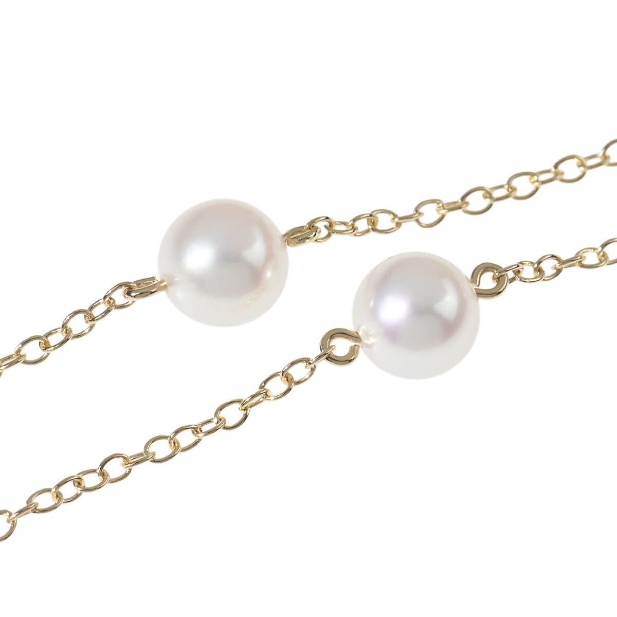1893年に世界で初めて真珠の養殖に成功し、真珠に生涯を捧げ、「Pearl King(真珠王)」とまで呼ばれ歴史にその名を刻んだ「御木本幸吉」氏が、“世界中の女性を真珠で飾りたい”と夢を抱いて創業した『MIKIMOTO(ミキモト)』。以来、養殖真珠のオリジネーターとして120年以上も真珠の魅力と向き合い、“真珠と言えばMIKIMOTO”と言われるほどに誰もが知る、日本を代表する世界のジュエラーとなりました。優しく柔らかな光を放つ11粒の愛らしいパールが繊細なチェーンにステーションセッティングされた、イエローゴールド製ネックレスです。動くたびリズミカルにパールが揺れるネックレスは、スタイリングを可憐に、華やかに印象づけます。