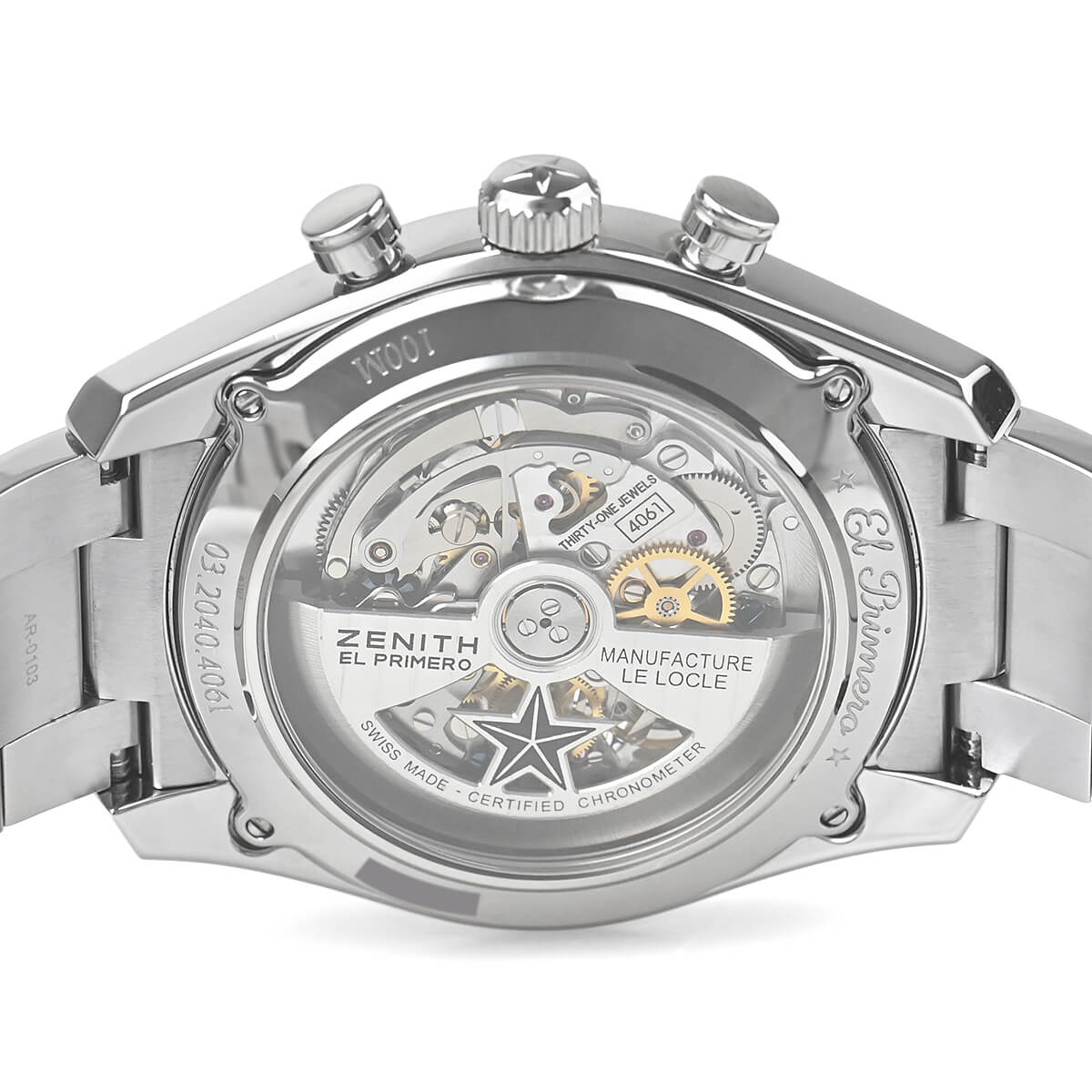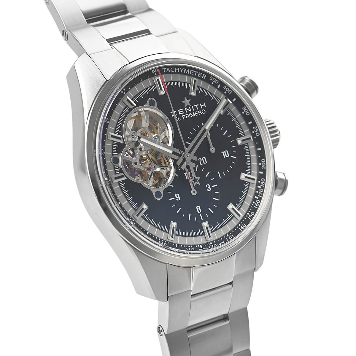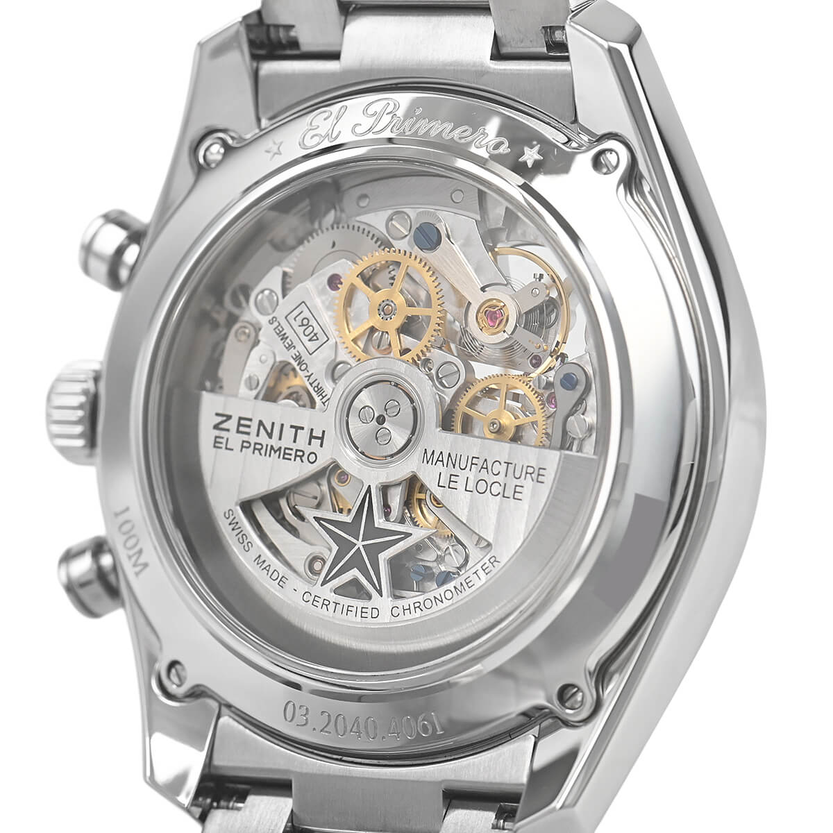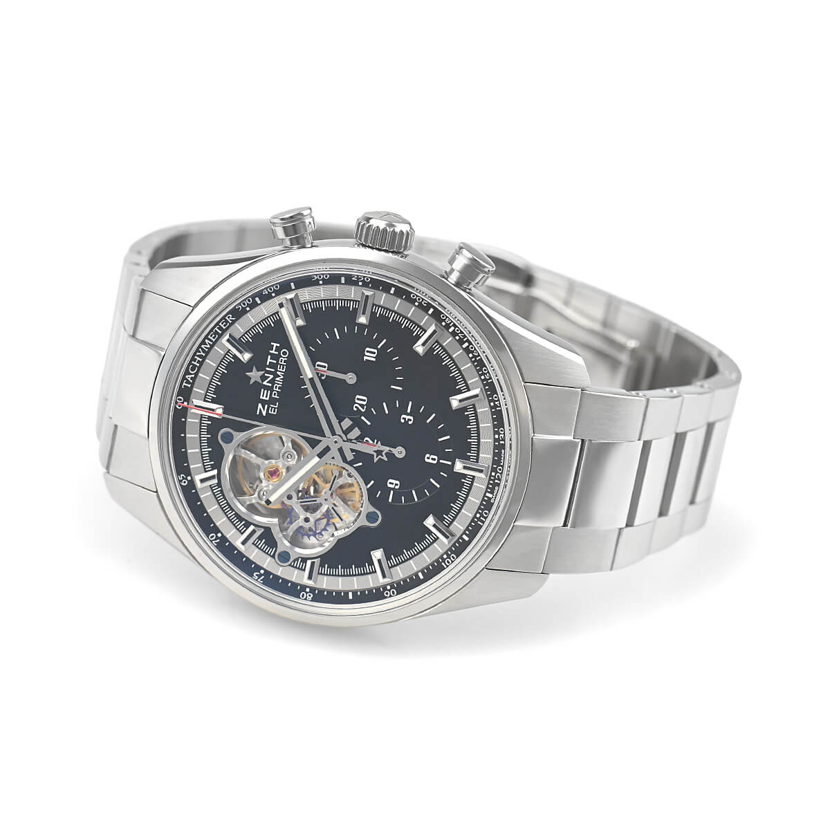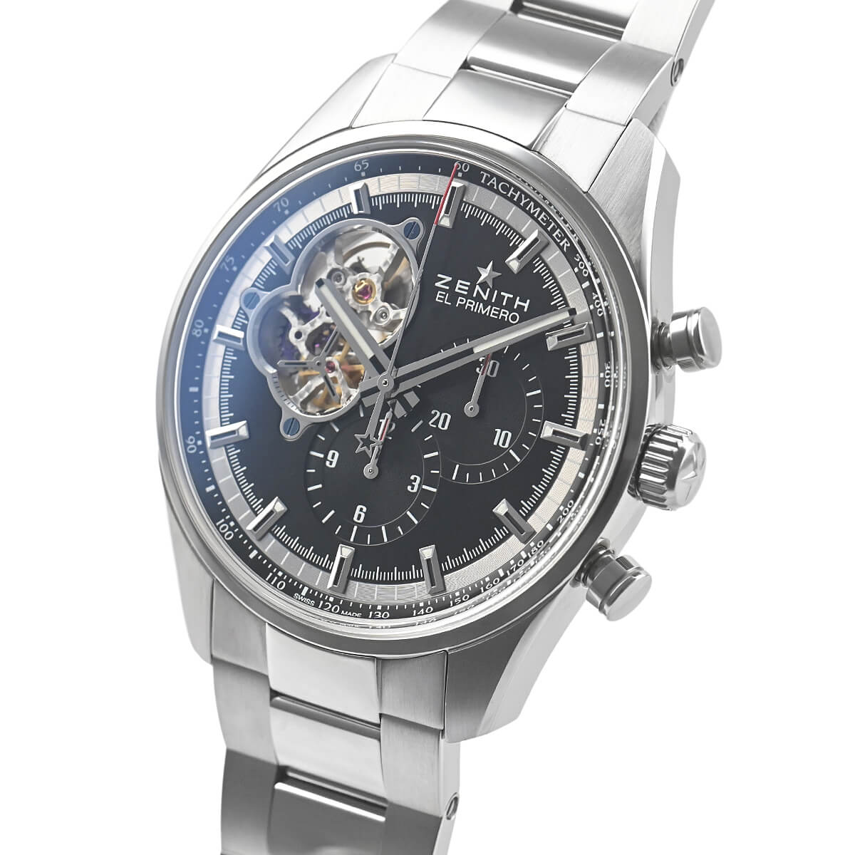 1969年発表の初代エル・プリメロをイメージした色使いに、現代のゼニスのシンボルであるダイヤルをくりぬいた「窓」を融合させた「クロノマスター エルプリメロ オープン」。現在まで続く自動巻きクロノグラフの名機「エル・プリメロ」の歴史を表した一本といえます。
