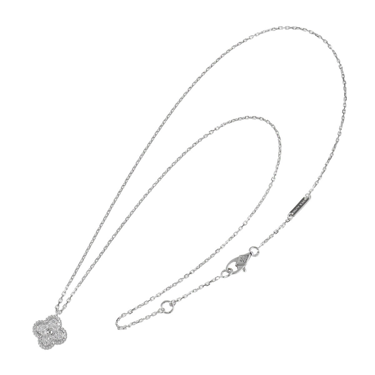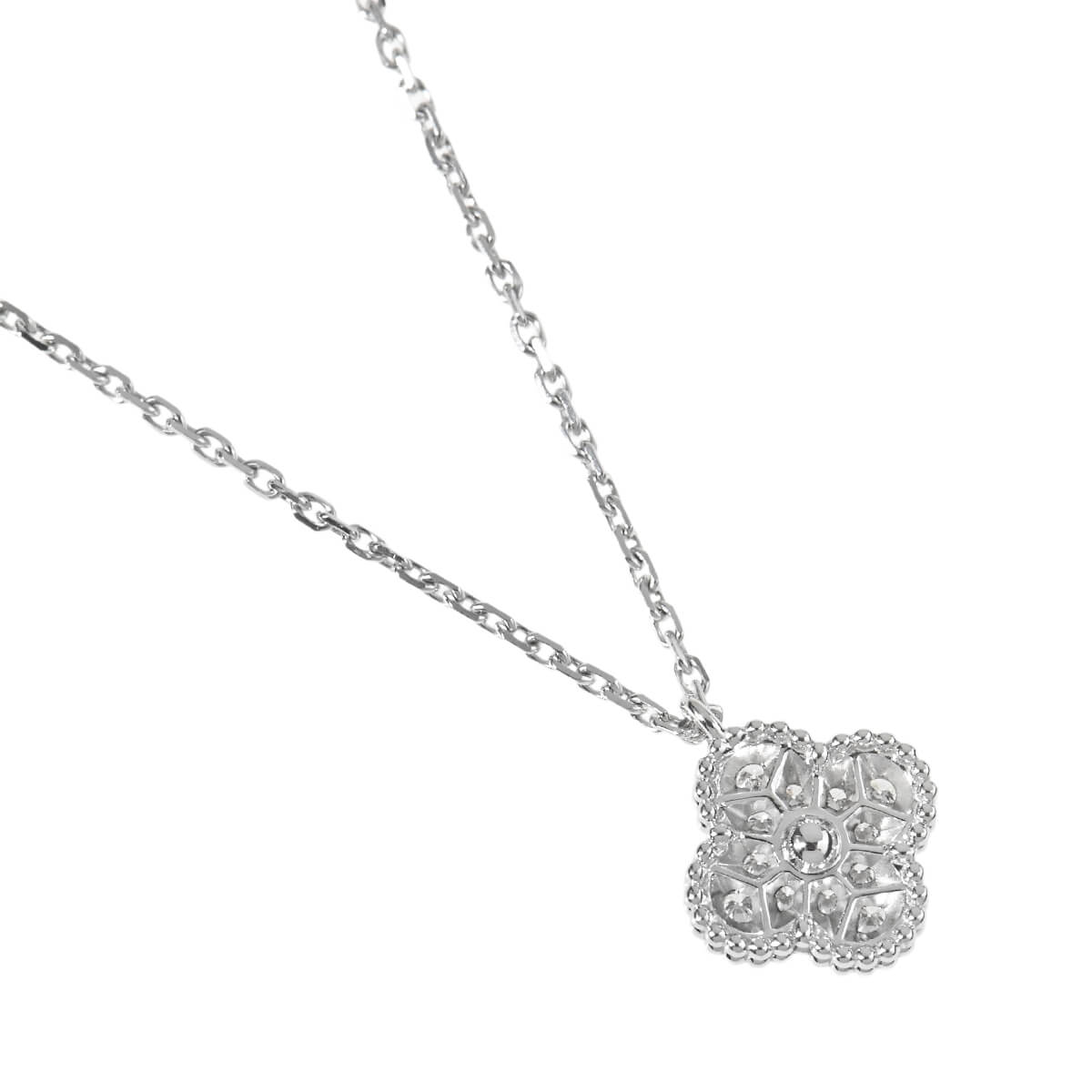 1968年に初めて誕生した幸運のシンボル「アルハンブラ」の特徴を受け継ぎ、『VanCleef&Arpels(ヴァンクリーフ&アーペル)』ならではの独創性と時を超えるエレガンスを湛える「ヴィンテージアルハンブラ」コレクション。喜びに満ちた幸運のモチーフをミニチュアサイズで表現した、「スウィート アルハンブラ」コレクションのホワイトゴールド製ペンダントネックレスです。極上のダイヤモンドがパヴェセッティングされたモチーフのどこから見ても瞬時に目を惹く輝きは、身に着けるだけで特別な気分に。可憐なホワイトゴールドビーズに縁どられた四つ葉のクローバーに着想を得た幸運のシンボルは、ミニチュアサイズながら圧倒的な存在感を放ちます。