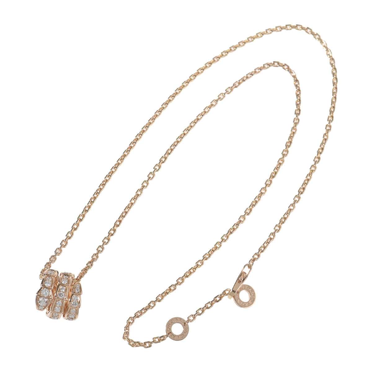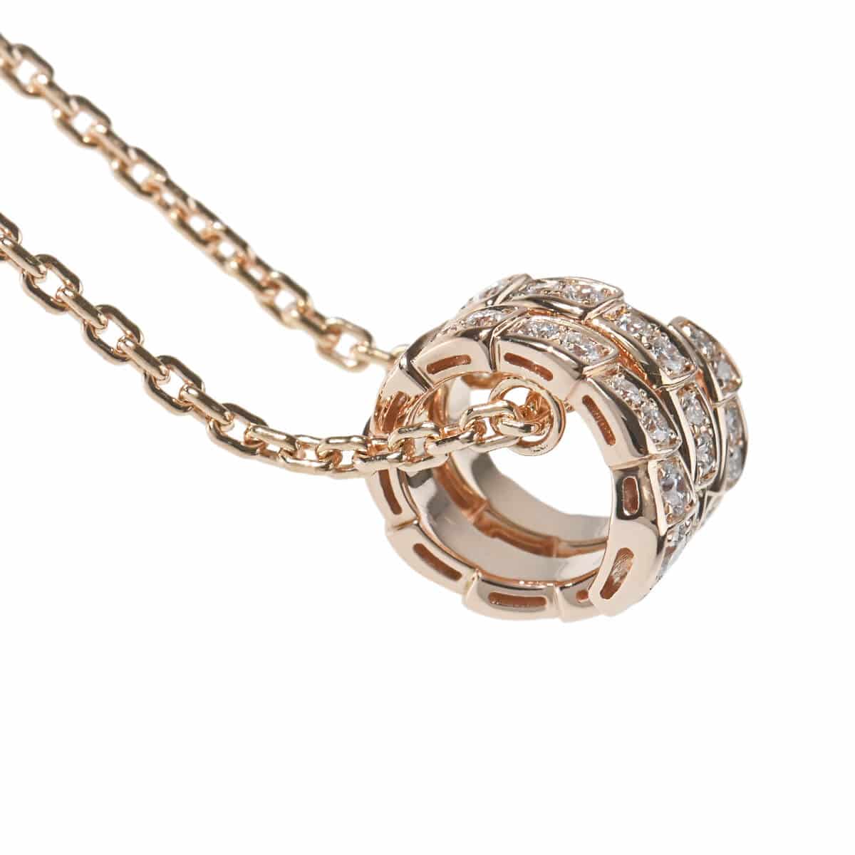 ヘビの魅惑的な力にインスピレーションを得た『BVLGARI(ブルガリ)』「SERPENTI(セルペンティ)」は、イタリアが誇る至高のクラフツマンシップと禁じられたものに手を伸ばすメゾンの大胆な姿勢が融合した、大胆でありながら洗練されて上品、官能的で魅惑的なコレクション。美しさと洗練さを兼ね備え、精巧な技術とイタリアらしいデザインが融合された、ピンクゴールド製「SERPENTI(セルペンティ)」ヴァイパーペンダントネックレスです。パヴェダイヤモンドがあしらわれた、攻撃を仕掛ける前のヘビの渦を巻くような動きを思わせるリングモチーフが、センシュアルにチェーンに巻き付いて包み込むような曲線で魅了します。うろこの危険な美しさとしなやかなヘビのくねりが溶け合った、光と影、知恵と欲望、誘惑と欲望が魅惑的に交差する、官能と誘惑を仕掛ける妖艶で心を奪うようなデザインがヘビの抗しがたい二面の本質を露わにしている、ひときわ目を引くデザインのペンダントです。