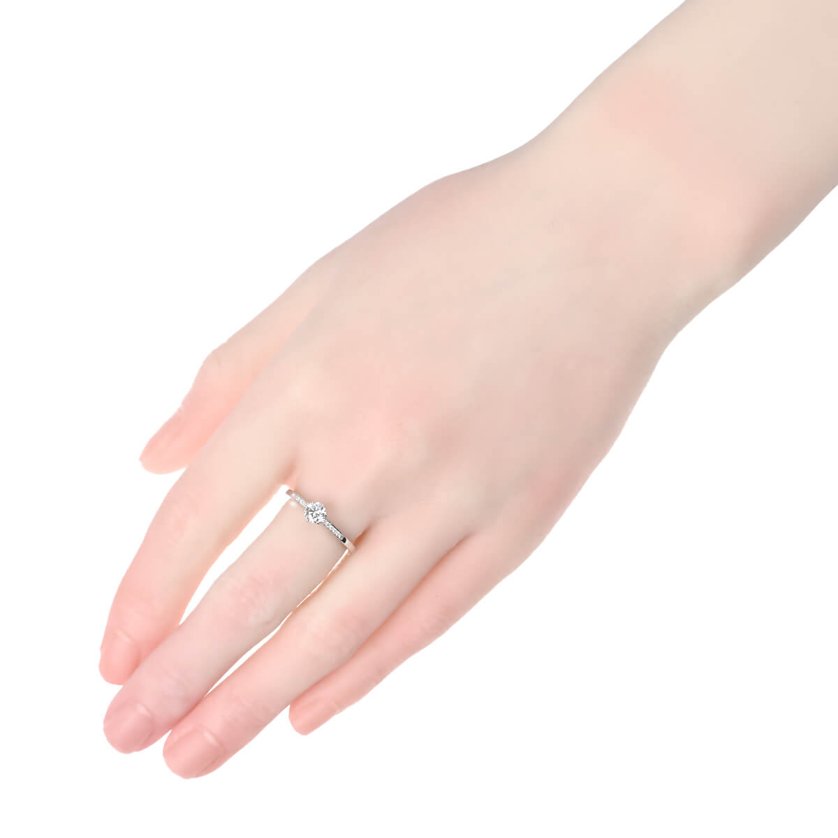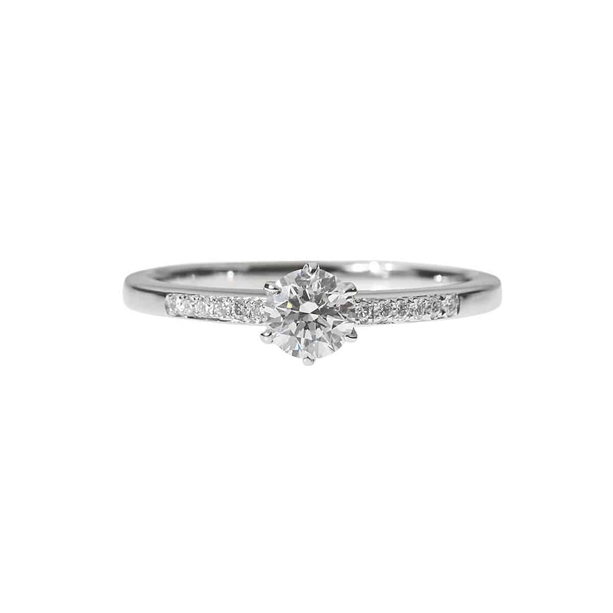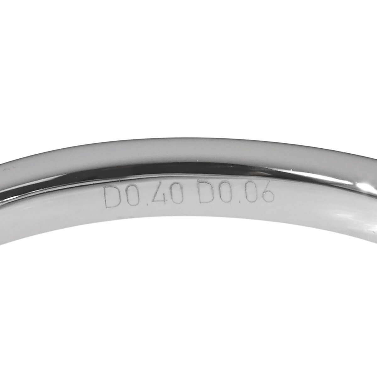 0.40ct、無色透明の「D」カラー、カットグレードは「Excellent」と、ハイグレードなラウンドブリリアントダイヤモンドをセンターにセッティングしたプラチナ製リングです。センターストーンのサイドを飾るメレダイヤモンドの繊細で可憐な煌めきが、リングに一層の美しさを添えています。洗練された贅沢な存在感を放ち、これ以上ないほどシンプルなのに印象的な、清潔な輝きも魅力のダイヤモンドソリティアリングです。