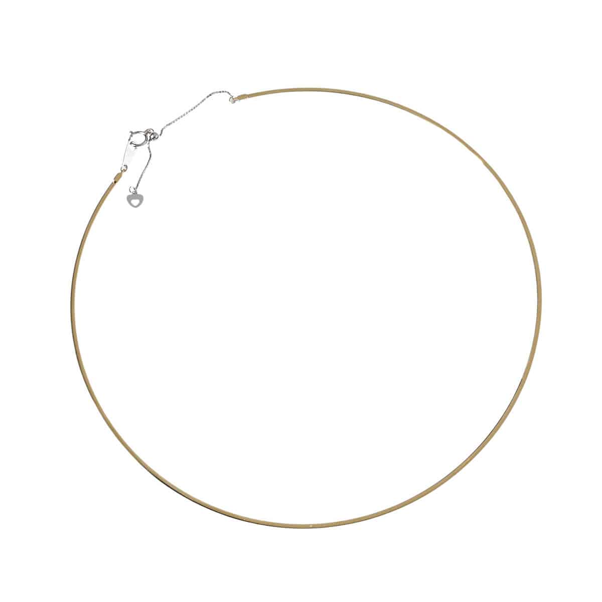 モダンにデコルテに寄り添ってラインを描く、シンプルながらさりげない個性と存在感でスタイリングにアクセントを添えてくれそうなゴールド製オメガチョーカー。イエローゴールドとホワイトゴールド、両面使えるリバーシブルデザインのチョーカーはデイリーのコーディネートの幅を広げてくれそう。1本ですっきりとつけたり、素材やデザインの異なるチェーンとレイヤードしたり、ペンダントヘッドやチャームとコーディネートしたりと、自分らしいスタイリングを楽しんでください。