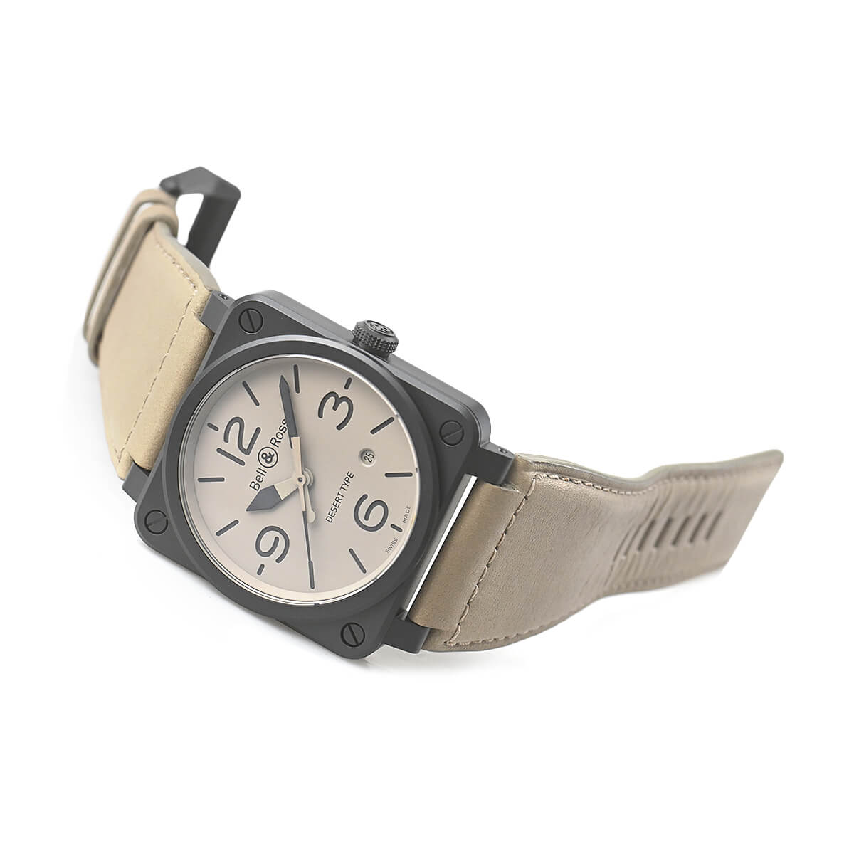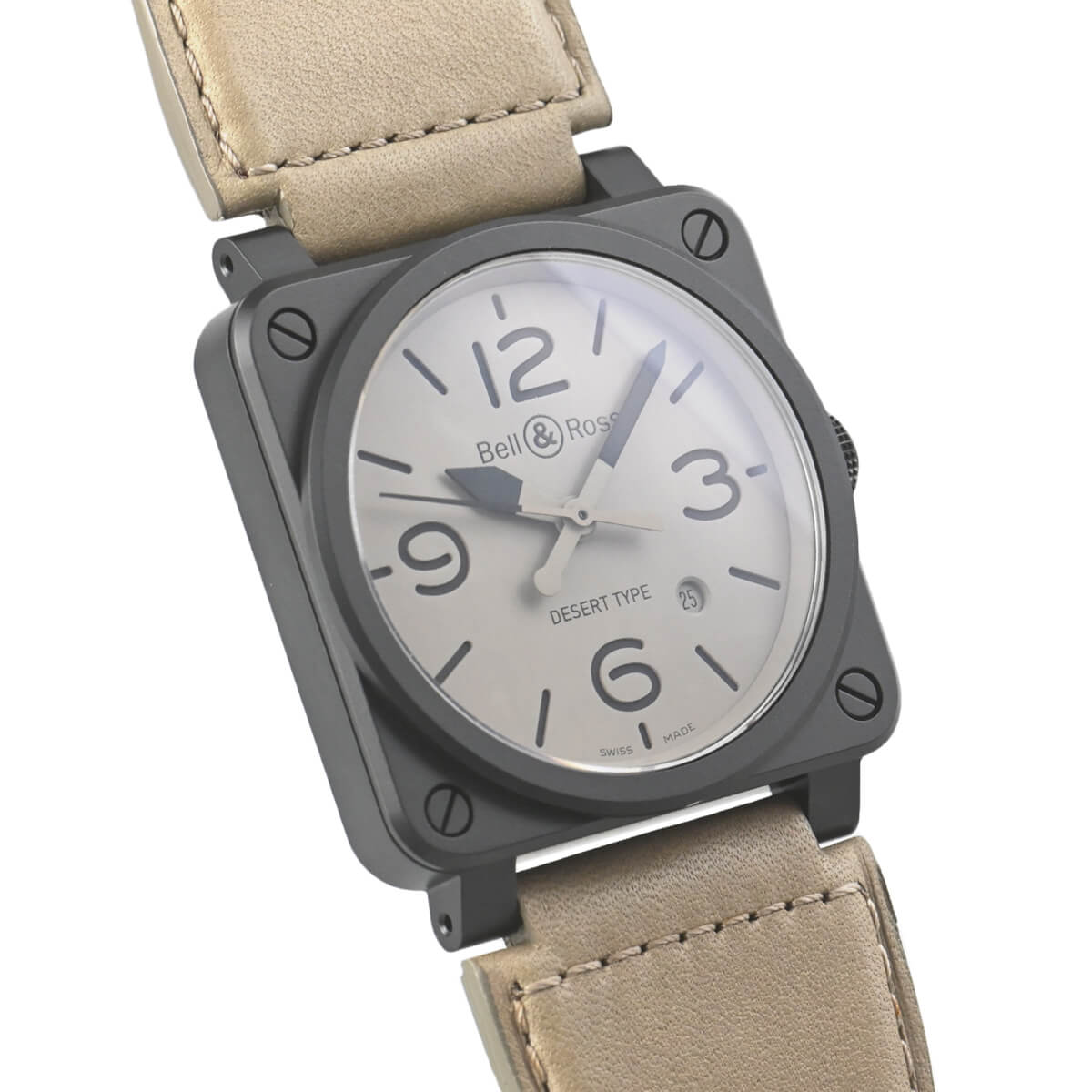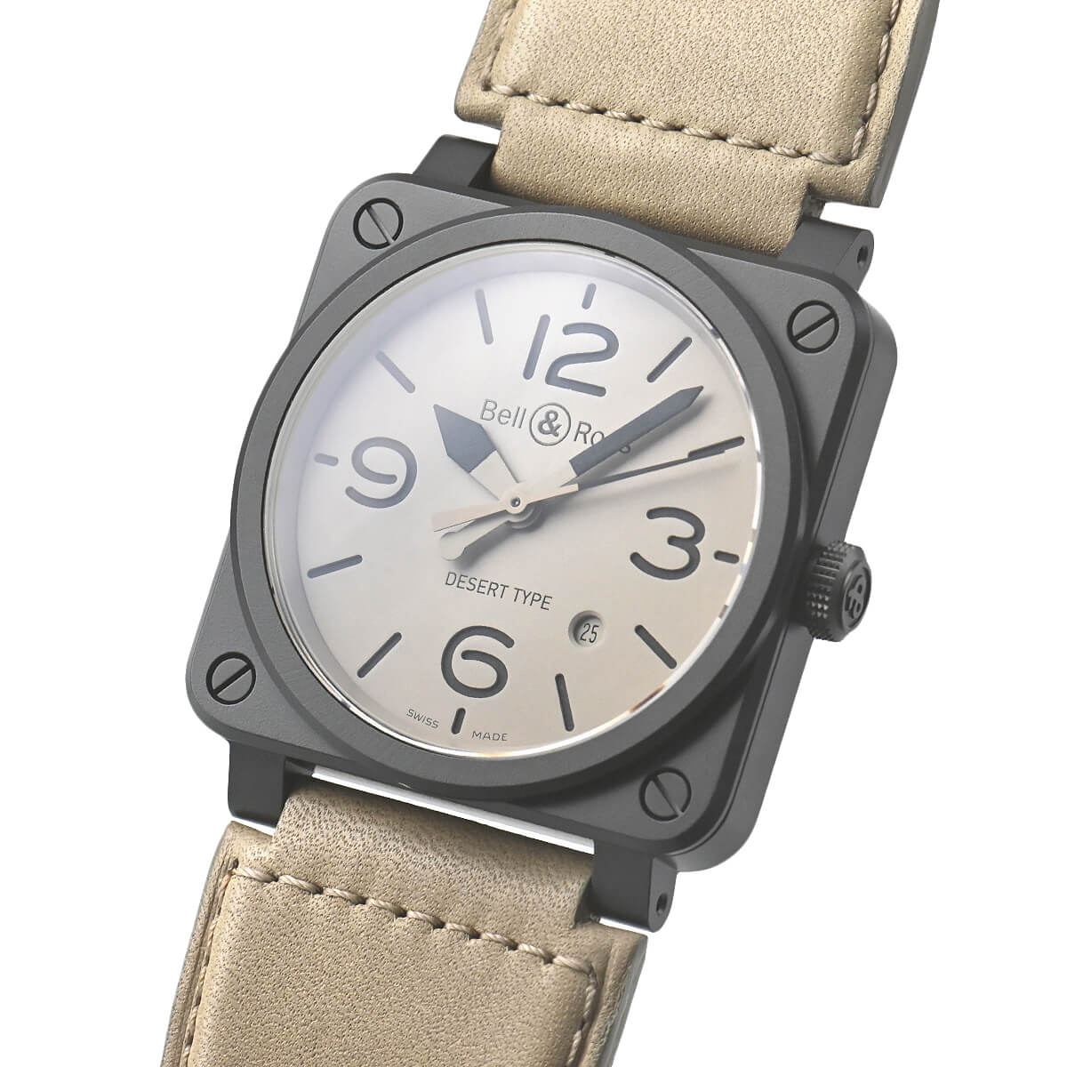 斬新な角形ケースが印象的なコレクション「BR03」。航空機のコックピット・クロックから発想を得たこの時計は、視認性を重視した機能的な道具という面が一段と強調されています。