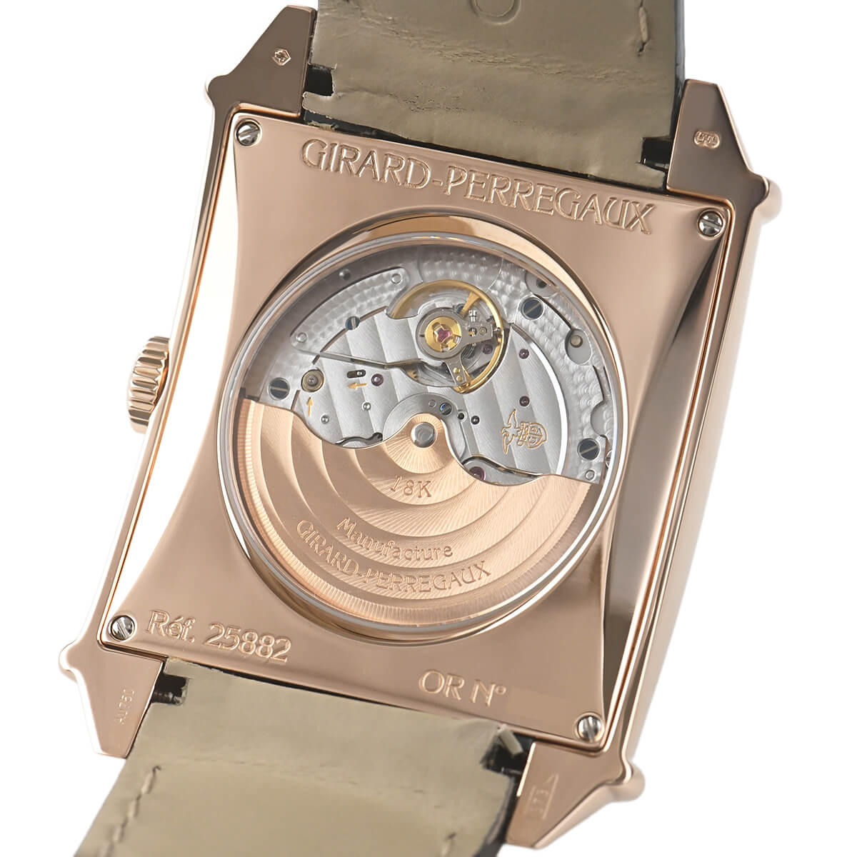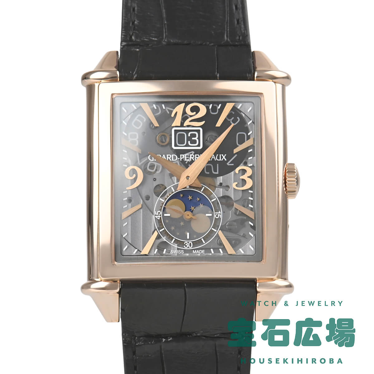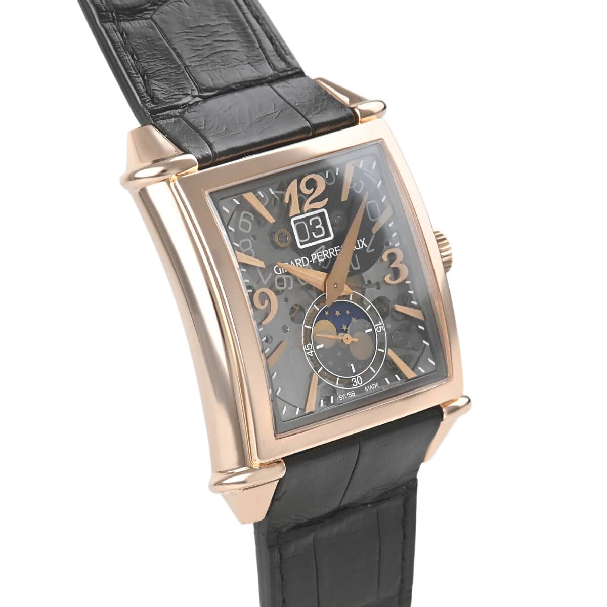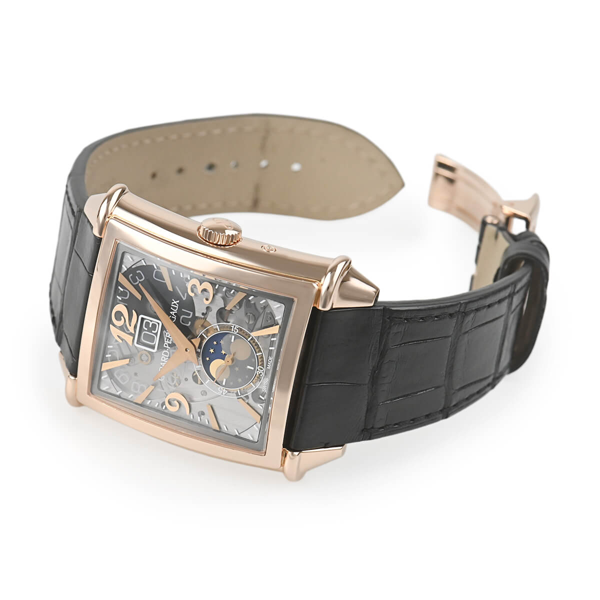 時計製造工芸の復活期である1945年、ジラール・ペルゴはアールデコからインスパイアされた丸みをおびたレクタンギュラー(長方形)ケースのモデルを創作しました。【ヴィンテージ1945】シリーズは、1995年にその復刻版としてデザインされたシリーズです。