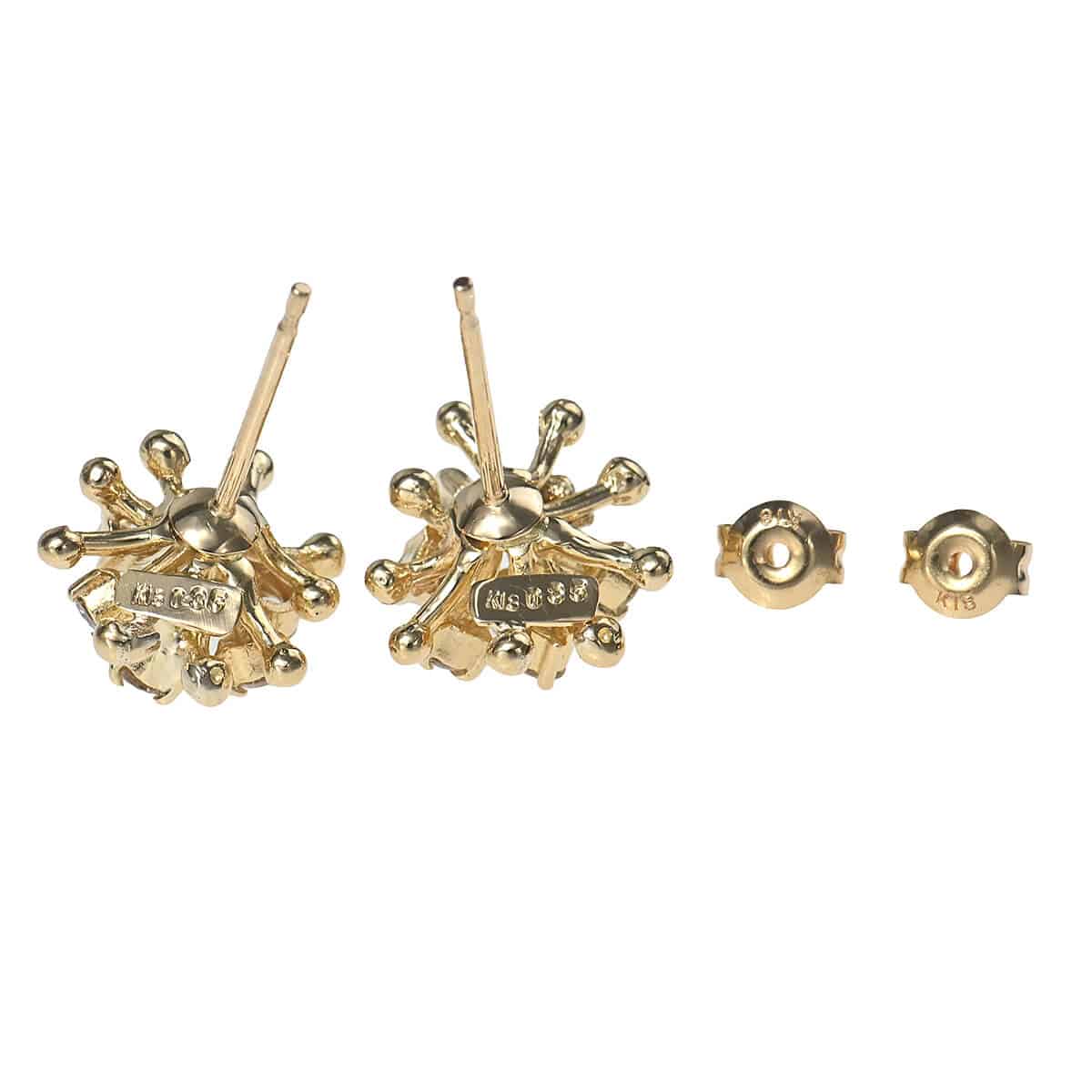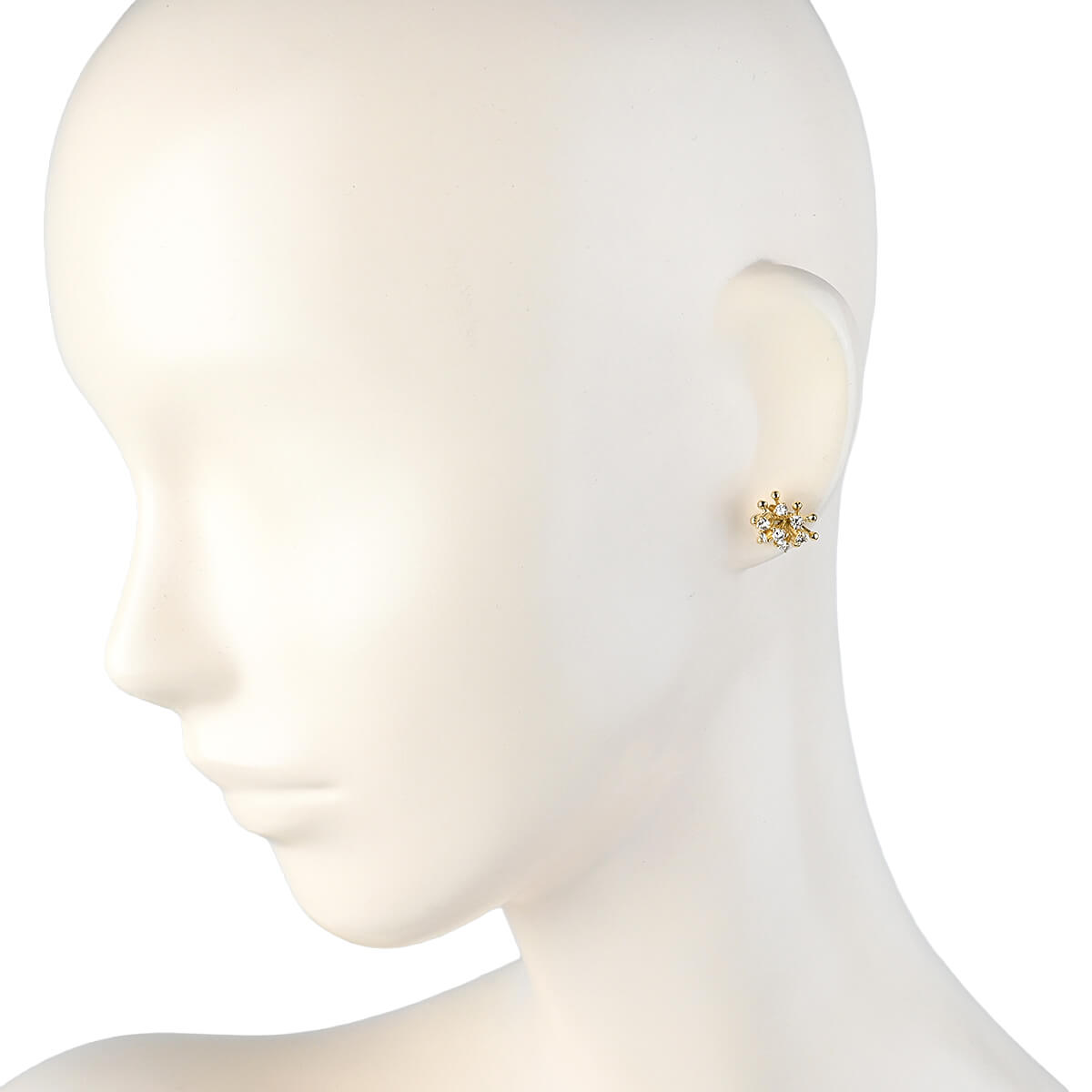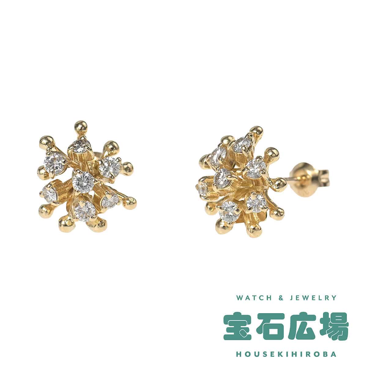 立体フォルムが目を惹く、お花のような、結晶のようなデザインに、トータル0.70ctのダイヤモンドが配されたイエローゴールド製ピアス。ちりばめられたダイヤモンドの煌めきが、個性的なフォルムのモチーフに繊細な美しさを添えています。小ぶりなサイズながら大胆なデザインのピアスは、さりげない個性でフェイスラインを飾ってくれそう。耳元で印象的な存在感を放つ、繊細で美しいつくりも魅力の、ファインジュエリーです。