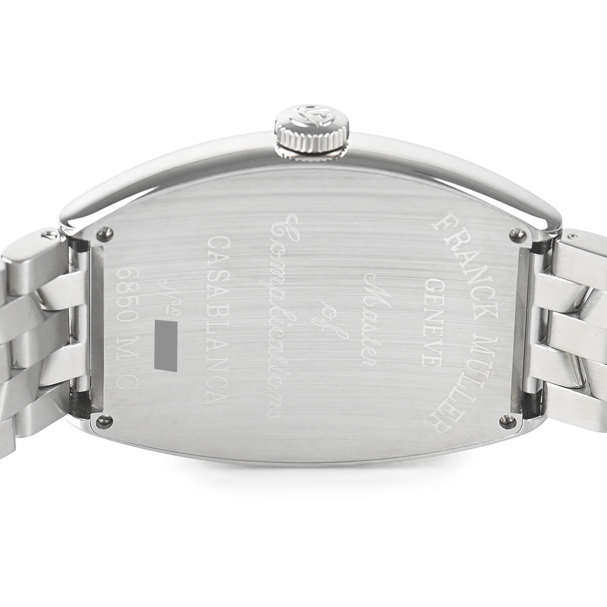 フランク・ミュラーといえば「カサブランカ」を思い浮かべる方も多いかと思います。特にこちらの6850ケースは、存在感と着け心地のバランスが良い人気のサイズです。ギャランティーに販売日が未記入の並行輸入品。