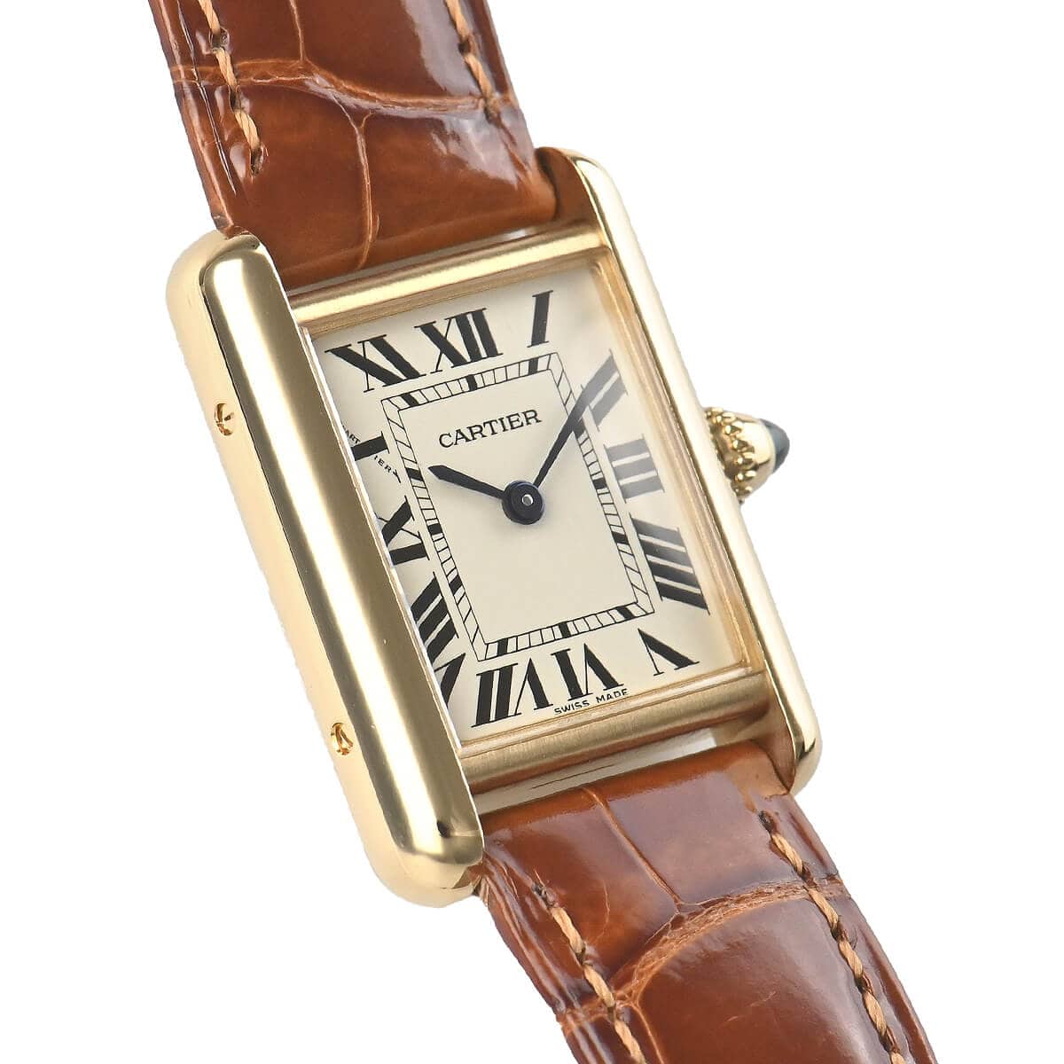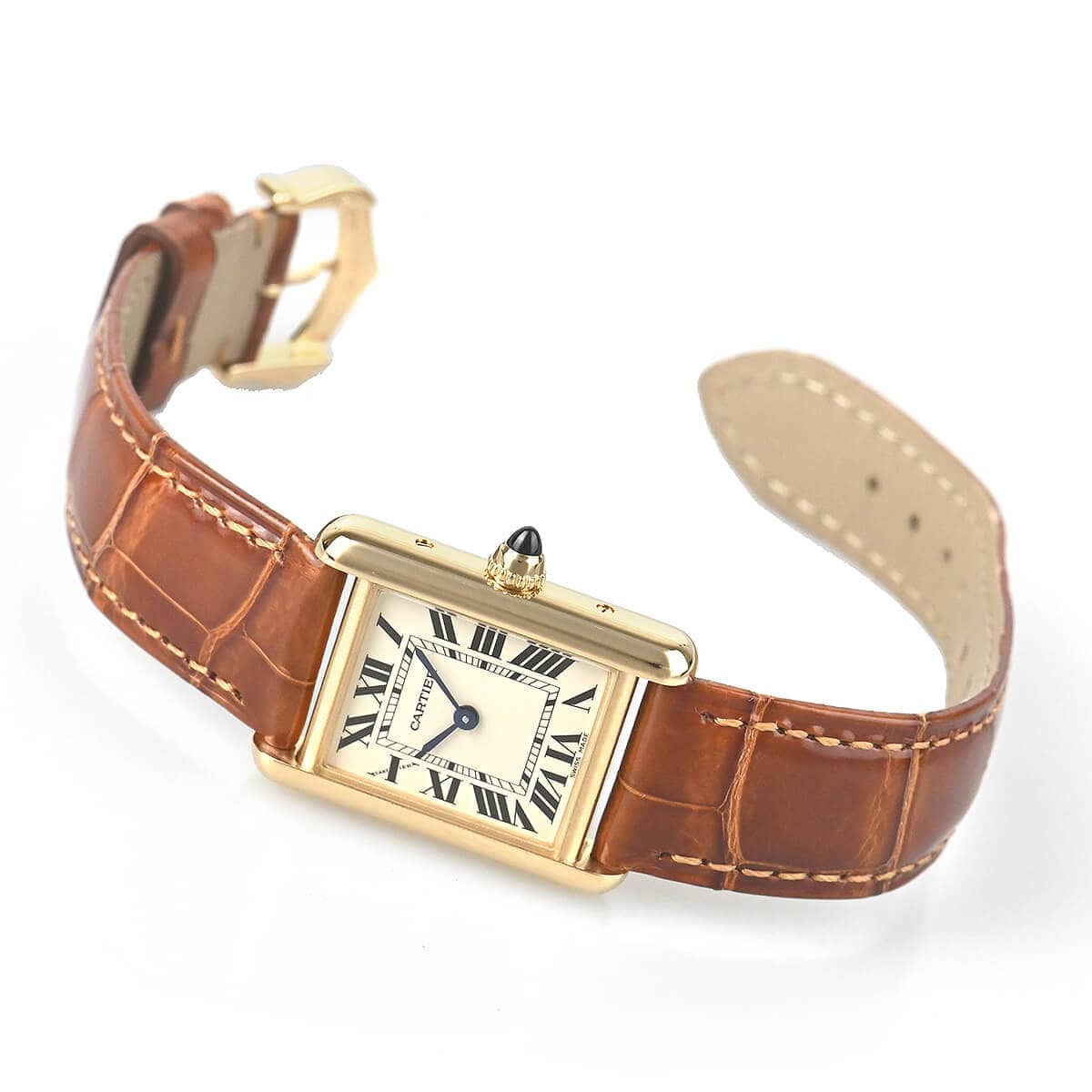 1920年代から続くタンクシリーズの中でも、オリジナルの雰囲気を色濃く残す「タンク ルイ カルティエ」。カルティエらしいローマ数字のダイヤルに、イエローゴールドケースのレディースモデルです。