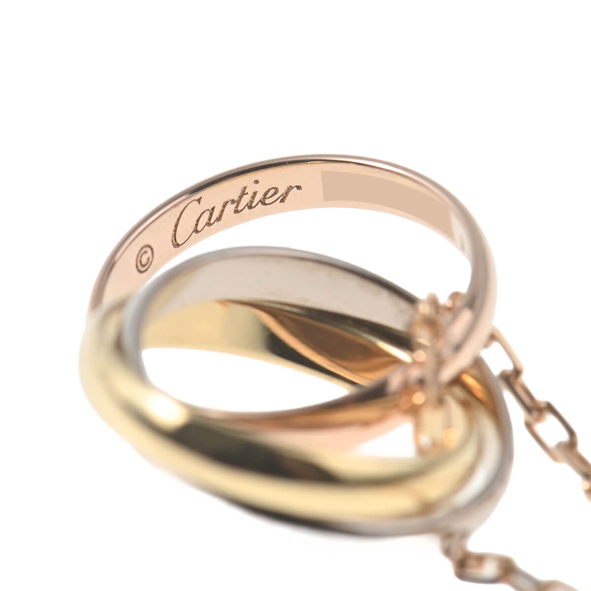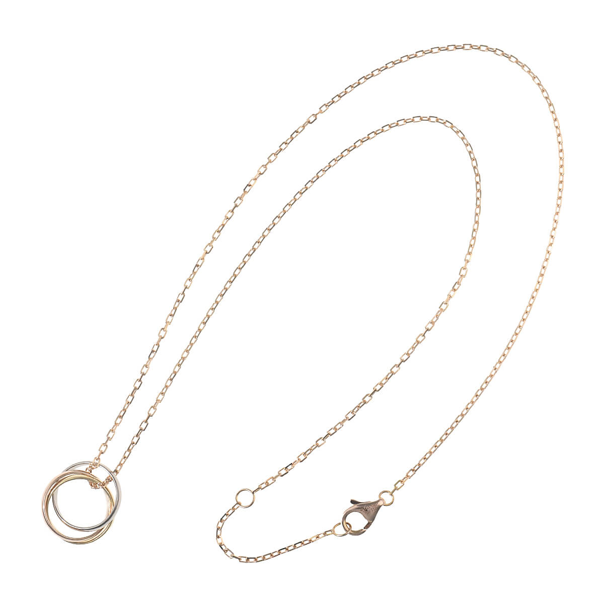 『Cartier(カルティエ)』を象徴するジュエリーのひとつ、3つのリングが躍動し、絡み合う、シンプルを極めた洗練とは何か、を深く感じさせる「TRINITY(トリニティ)」は、ルイ・カルティエの豊かな想像力によって1924年に生まれ、愛され続けているコレクション。絶妙に絡み合う柔らかなフォルムのリングがひとつ、繊細なピンクゴールドチェーンにあしらわれたスリーカラーゴールド製ペンダントです。シンプルでシンボリックな繋がり合う3つの環(リング)は、伝統的に愛情、友情、忠誠による結びつきを象徴していますが、現在その意味は身に着ける人の解釈に委ねられているそう。一世紀以上にわたりジャン・コクトーやマドンナ、キャサリン妃をはじめとする著名人に愛されてきた「トリニティ」の端正なエレガンスは、メゾンのタイムレスな魅力の証です。