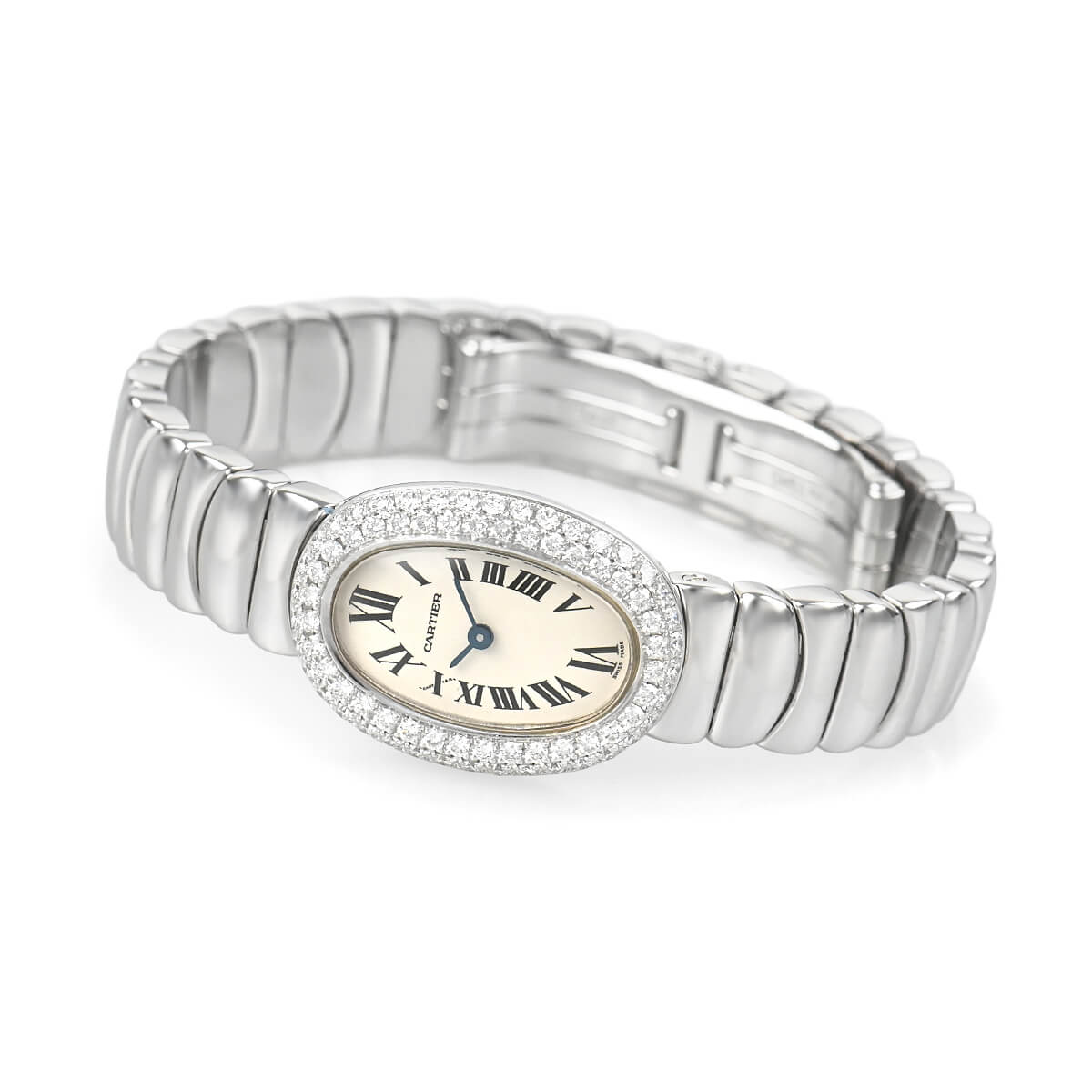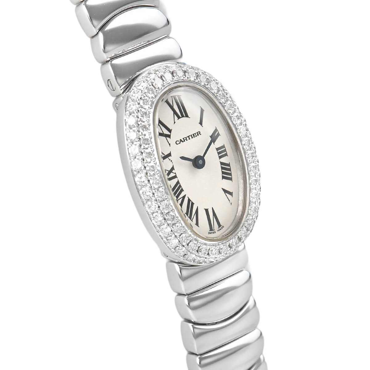 楕円の滑らかな曲線が女性らしさを演出する「ミニベニュワール」。現在では新たにモデルチェンジをしましたが、リューズの無いデザインはこの時代のモデルならではです。