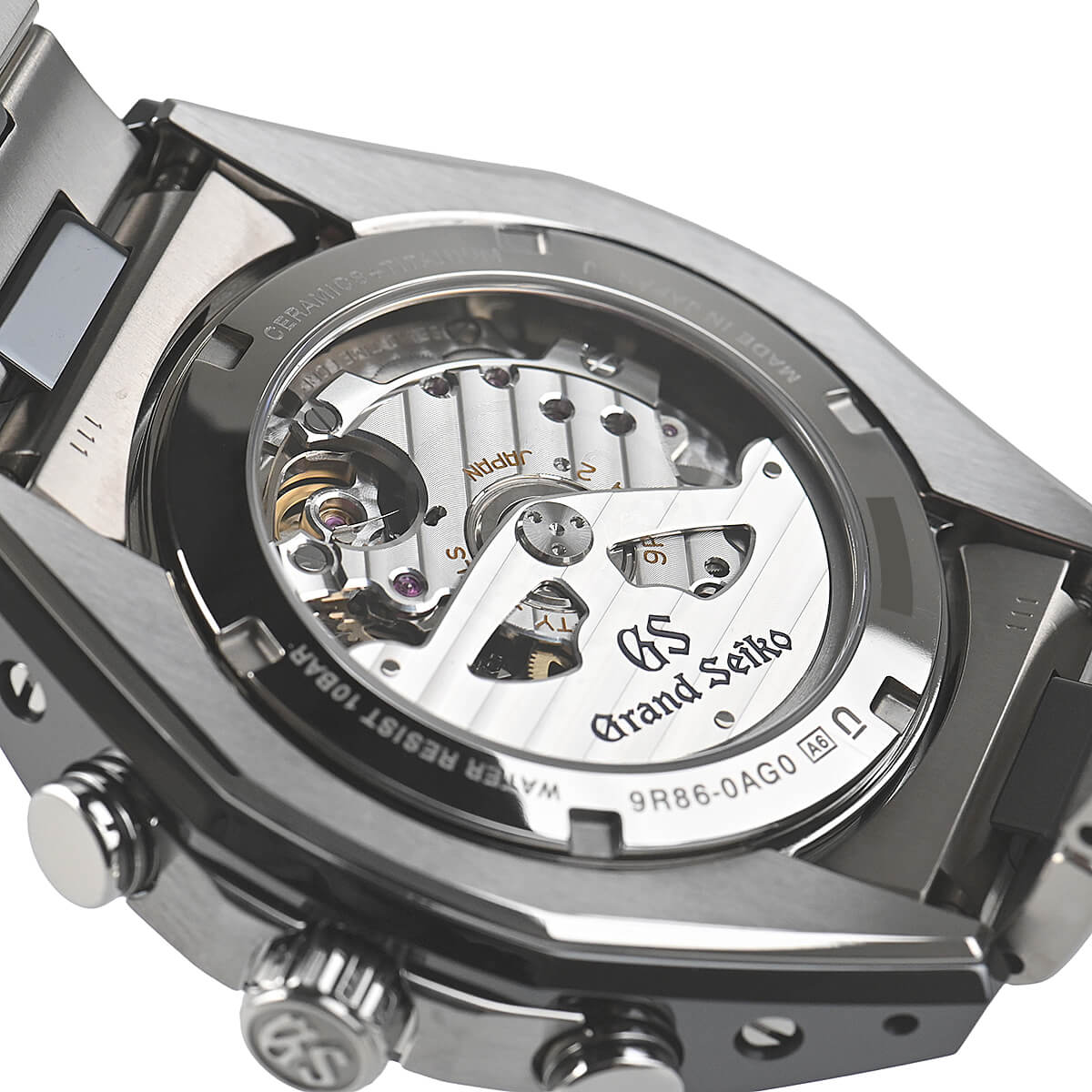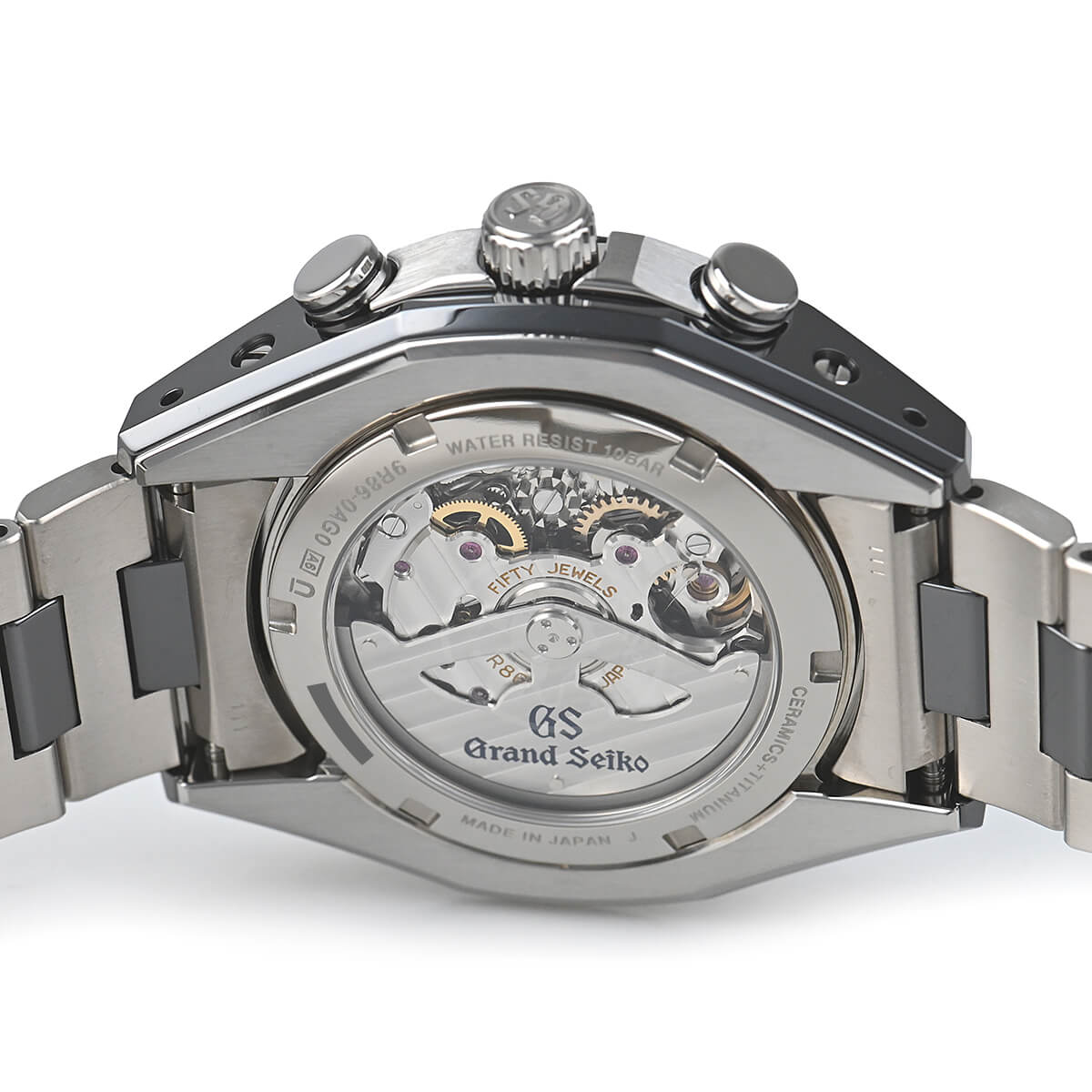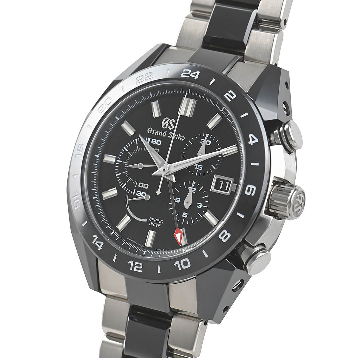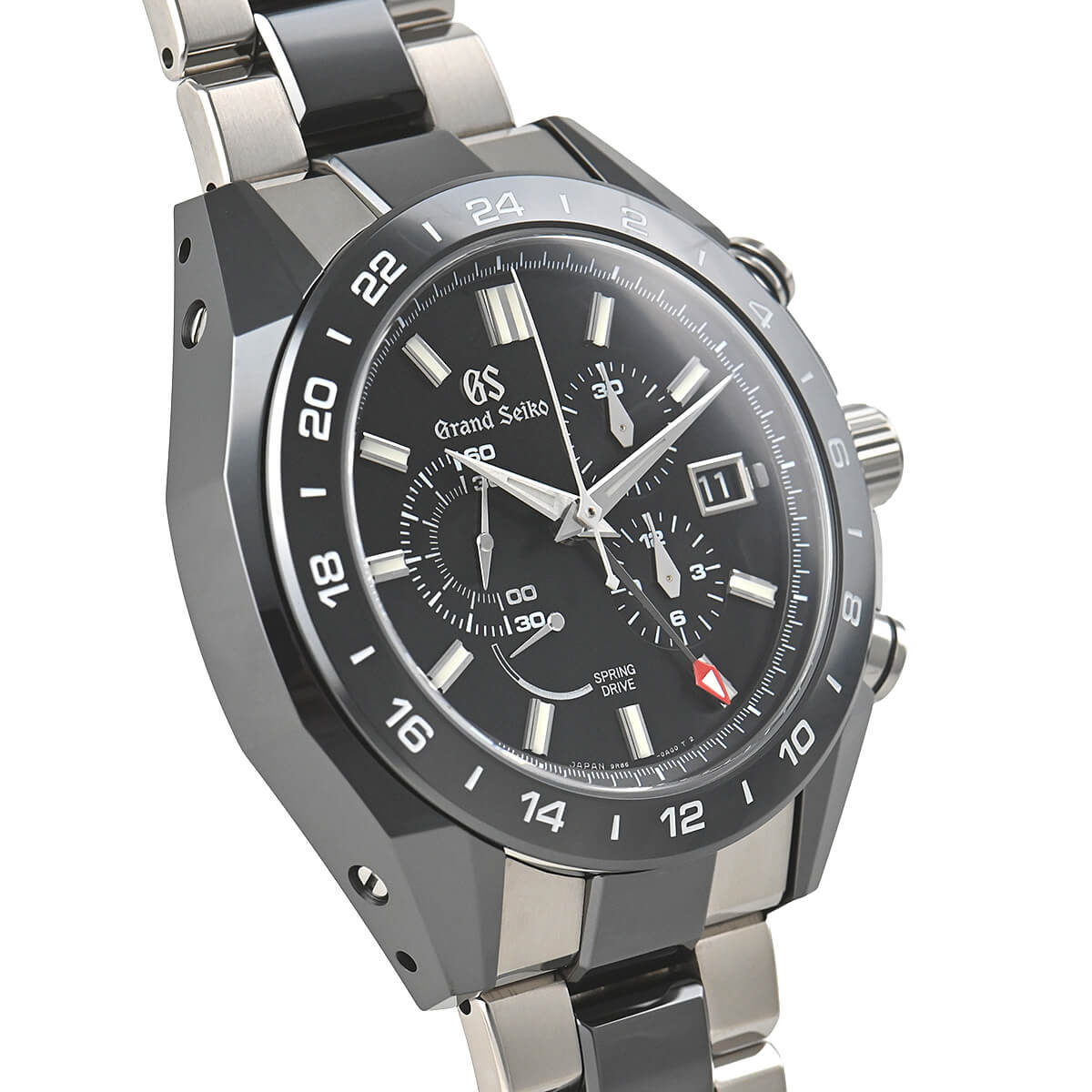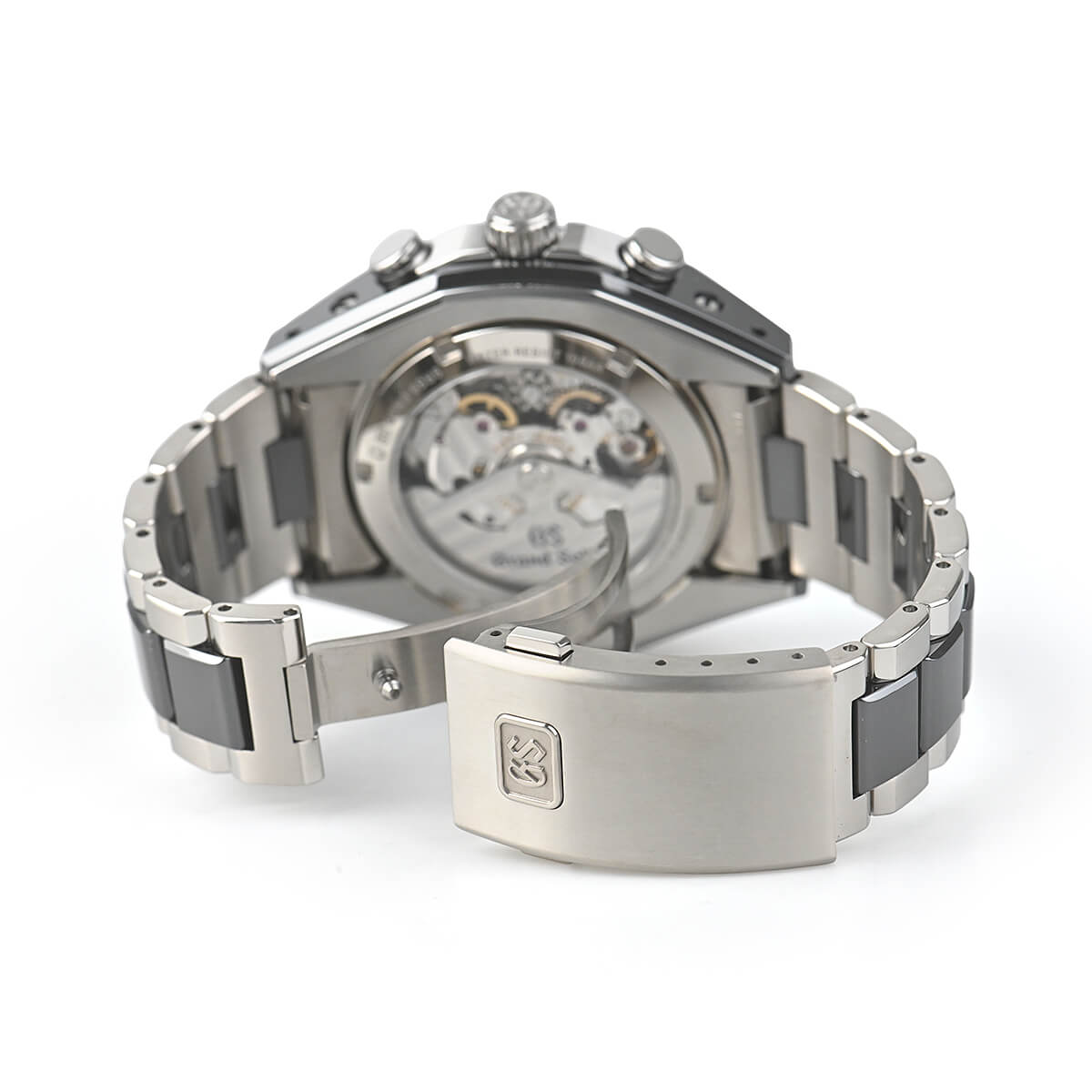 ケースとブレスレットにセラミックスとブライトチタンを採用したハイブリッド仕様の「SBGC223」。大振りのケースですが、ブライトチタンを採用することで軽量化に成功。