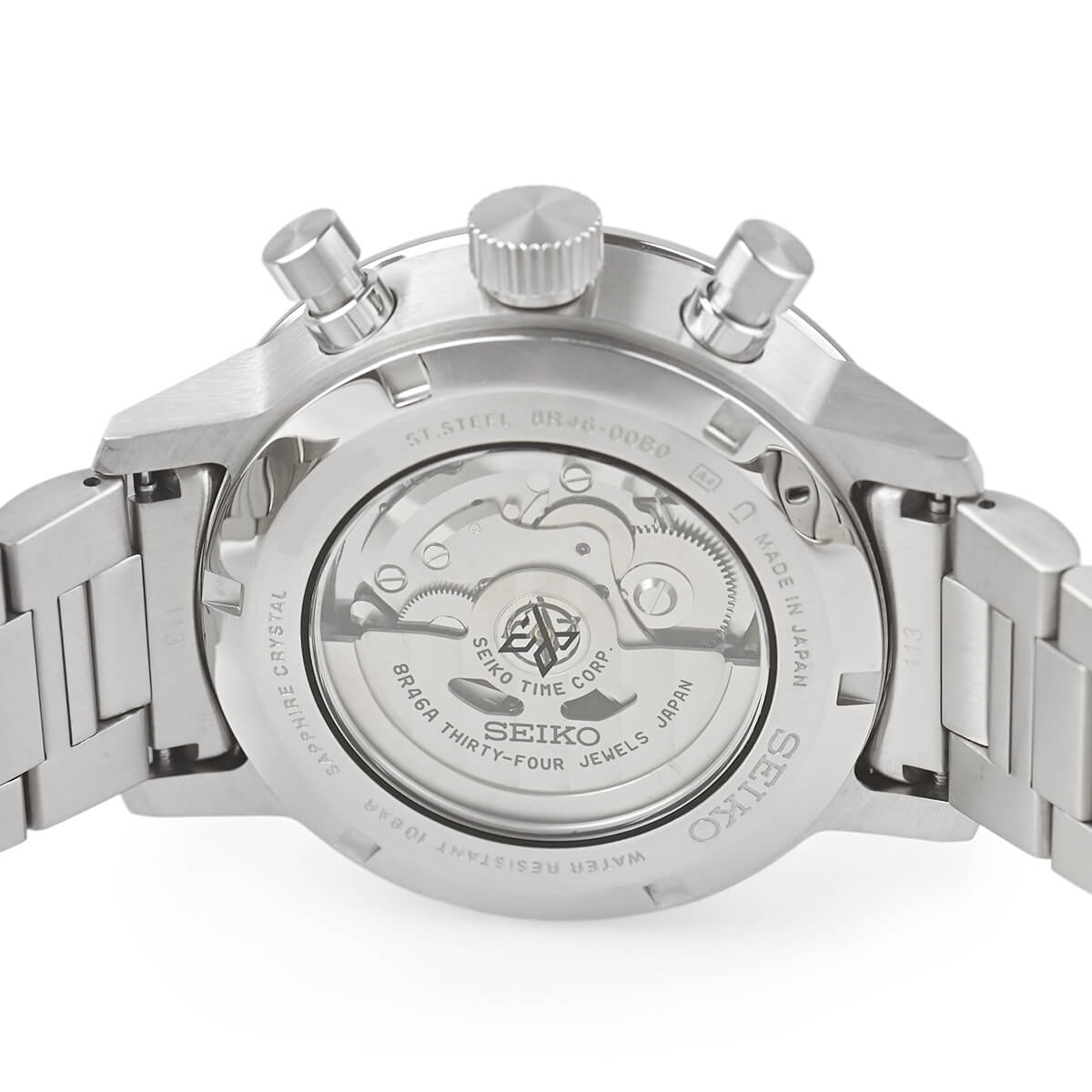 クロノグラフムーブメントには「8R46」が搭載され、スタート・ストップ時の針飛びを抑え、更に耐衝撃性にも優れた垂直クラッチ方式を採用します。