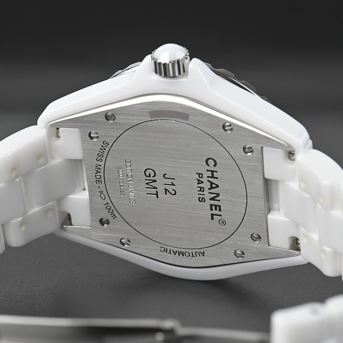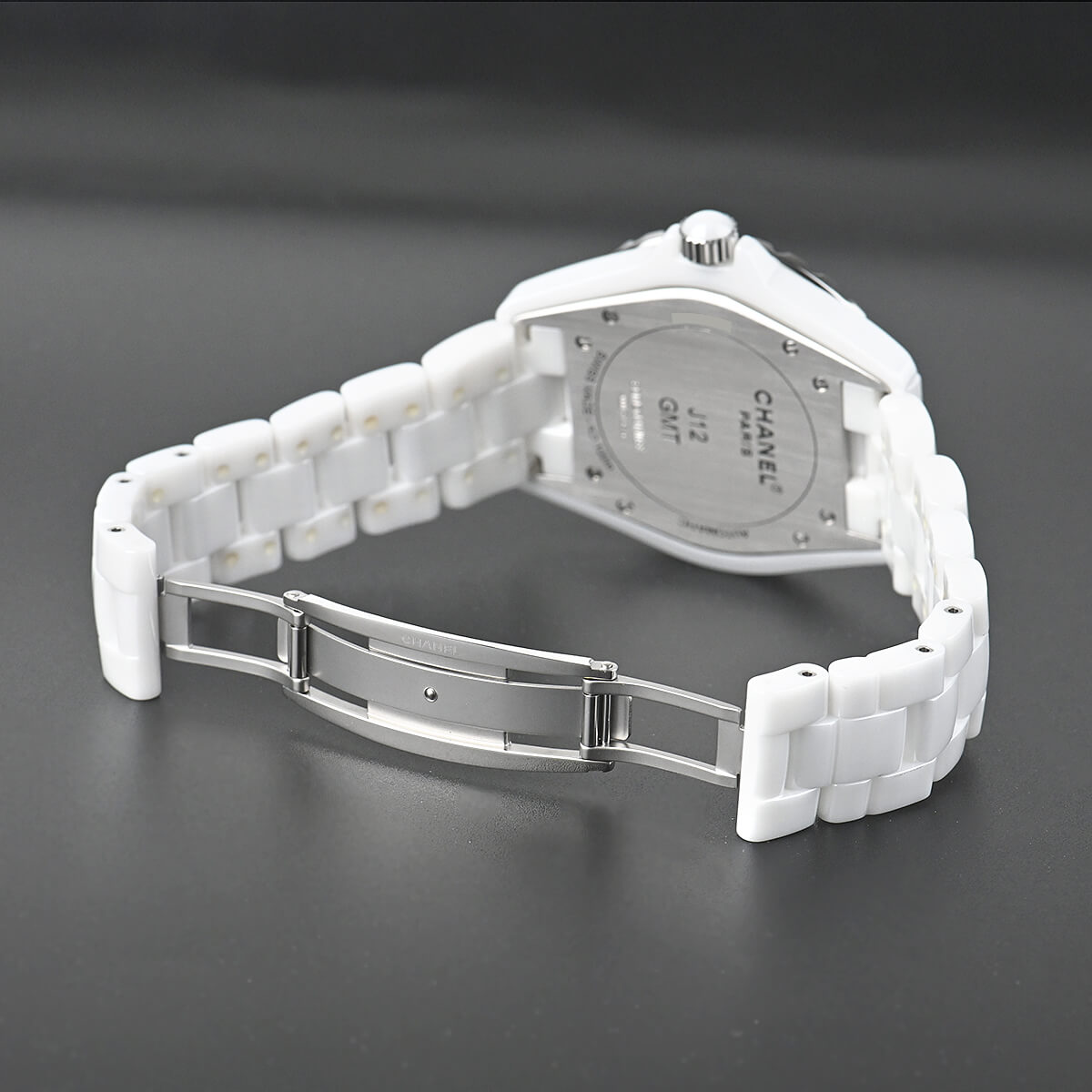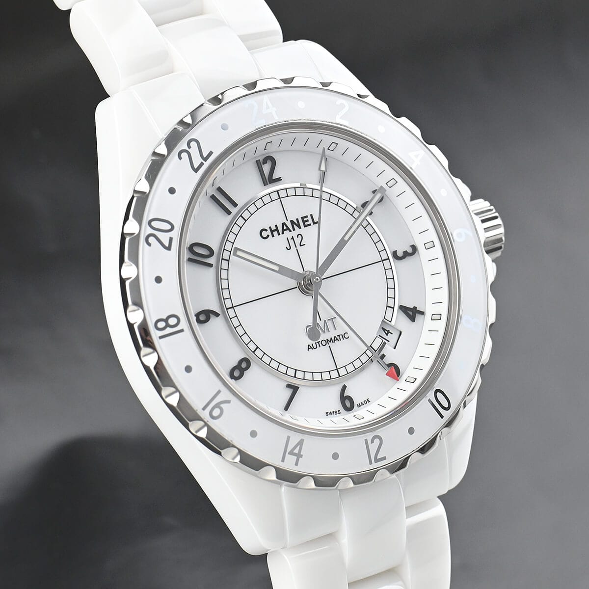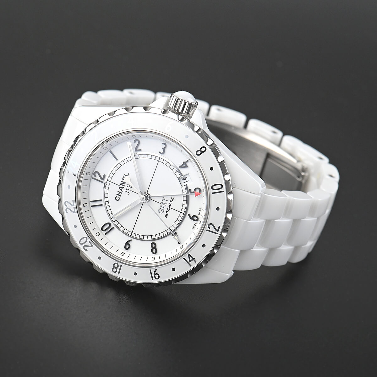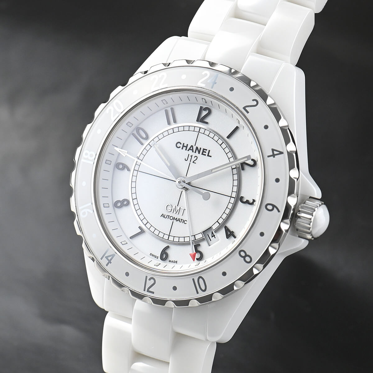 セラミックを採用し、個性的な質感のシャネル定番モデル「J12」。こちらはGMT機能を搭載した、42mmサイズのメンズモデルです。