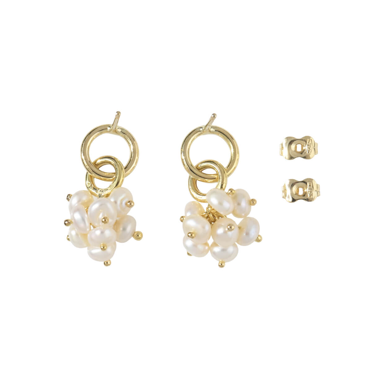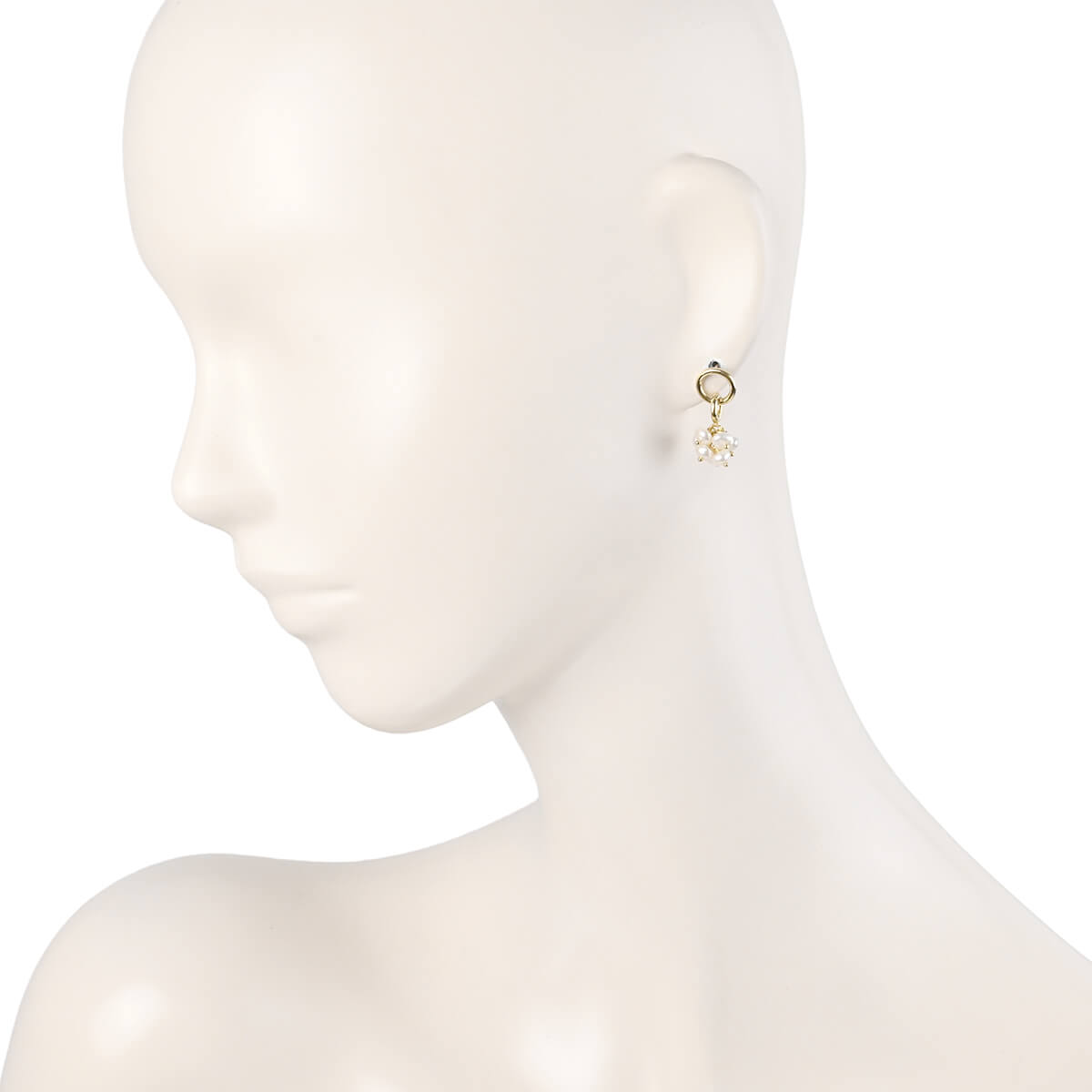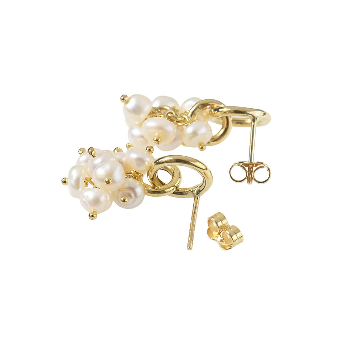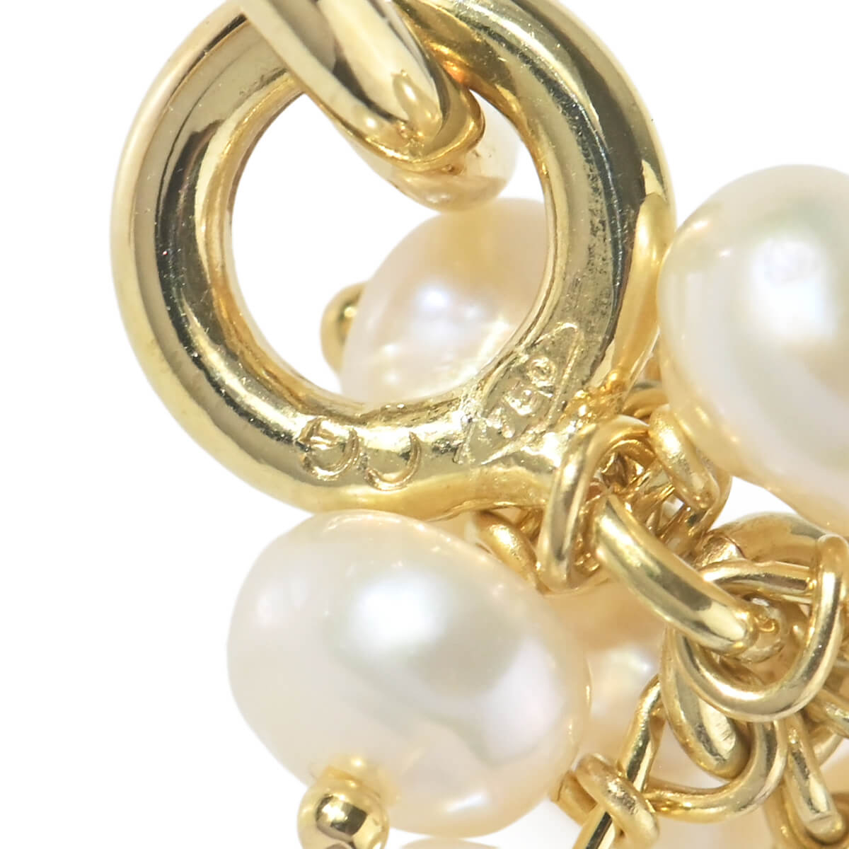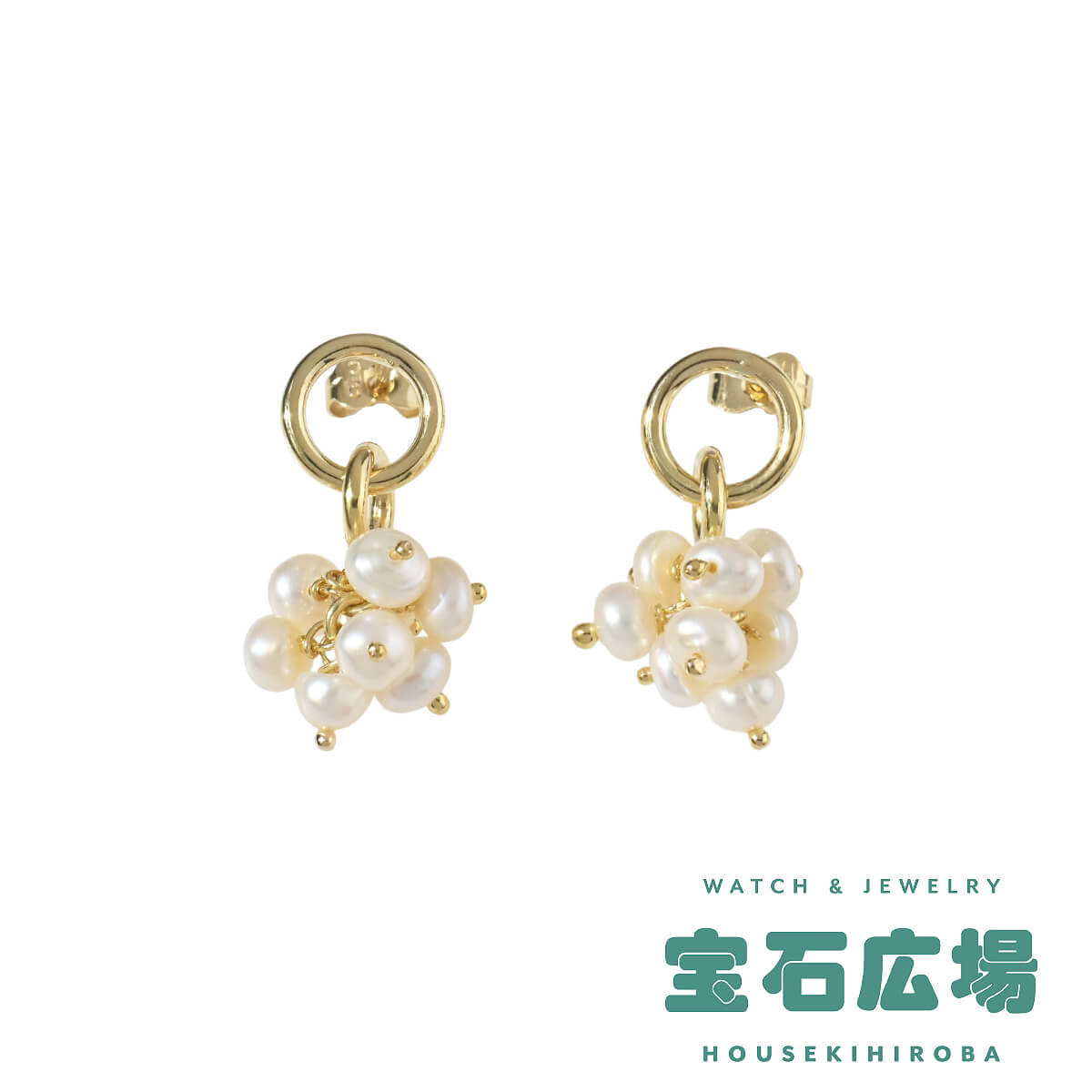 花束のようにも見える、小さく愛らしい淡水パールのモチーフが揺れるイエローゴールド製ドロップピアスです。ちょっとしたお出かけスタイルにはもちろん、Tシャツやデニムでカジュアルにコーディネートして、パールジュエリーならではの品と余裕を楽しむのも。パールならではのまろやかで優しい光がフェイスラインを清楚に、可憐に印象づけます。