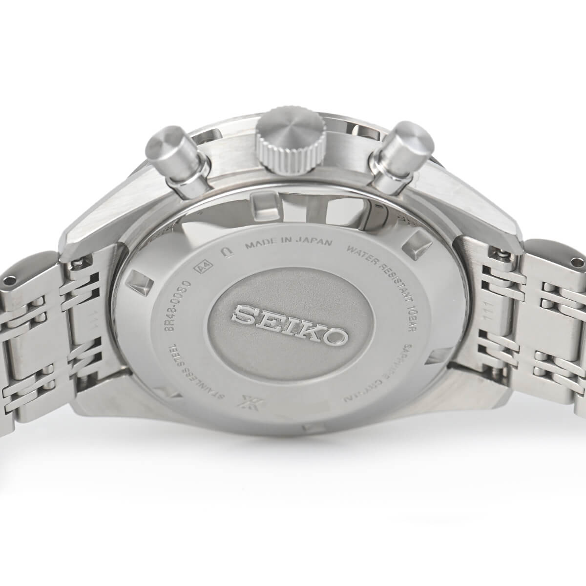 クロノグラフムーブメントには「8R48」が搭載され、スタート・ストップ時の針飛びを抑え、更に耐衝撃性にも優れた垂直クラッチ方式を採用します。