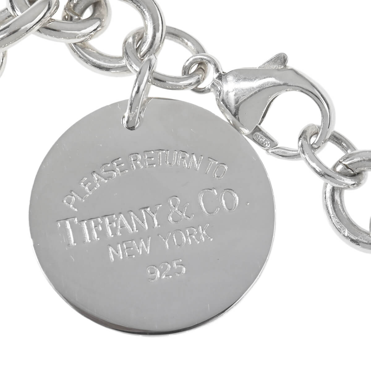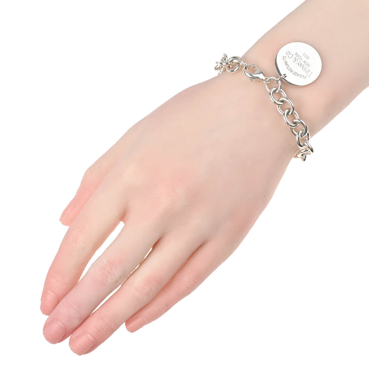 1969年に発表されたキーリングから着想を得てデザインされ誕生した「リターン トゥ ティファニー」コレクション。“return to tiffany”の刻印には”拾った方は『TIFFANY&Co.(ティファニー)』までご返却ください”という、かつての心のこもったサービスとユーモアが込められています。ティファニーの伝統を受け継ぐ力強いシンボルとなっているデザインのひとつでもある“ラウンドタグ”が1枚、大胆なデザインリンクにセットされたスターリングシルバー製ブレスレットです。日常のお洒落に、他のブレスレットとの重ねづけに、クラシックなスタイルに新たな息吹が吹き込まれたこのひときわ目を引くシルエットを取り入れてみてください。