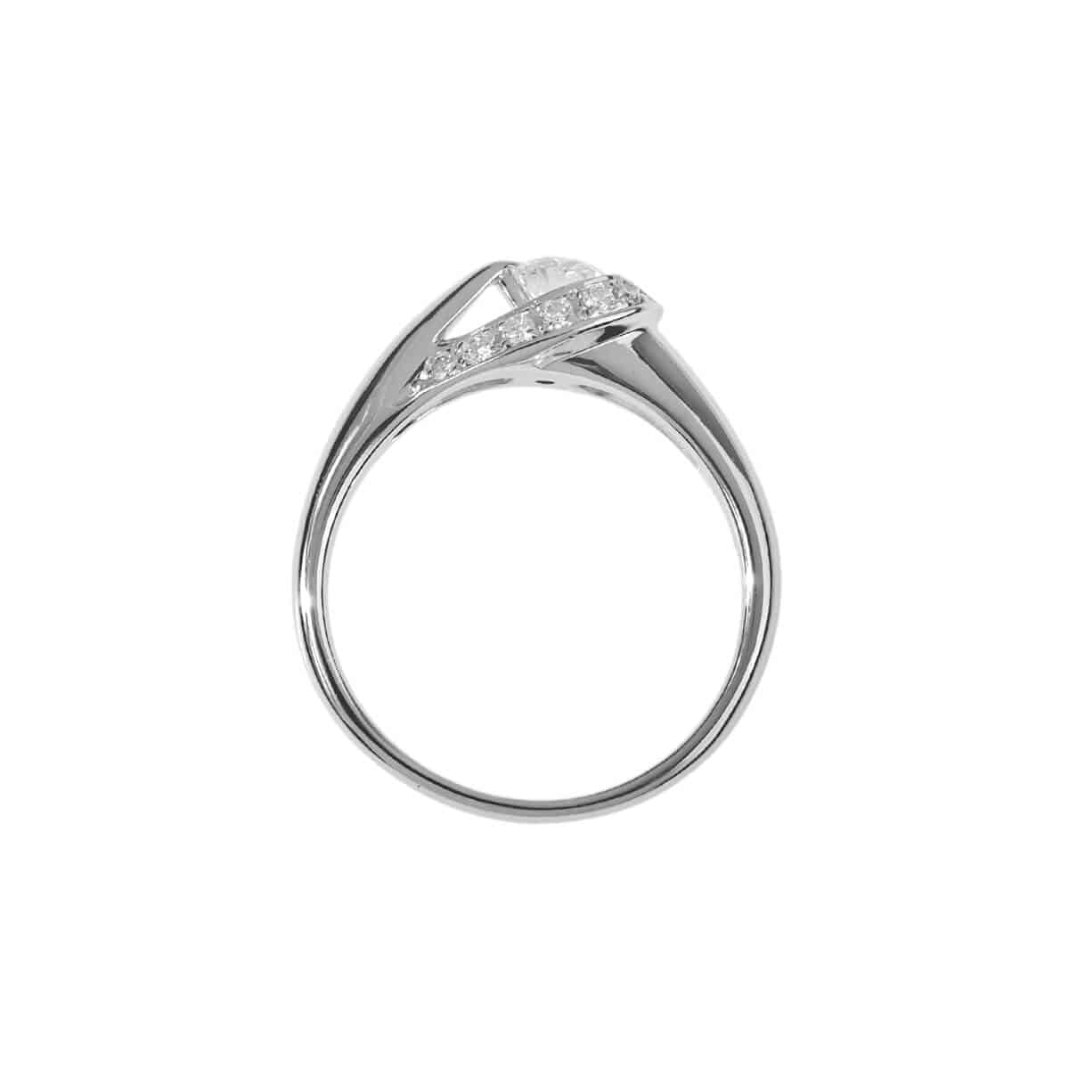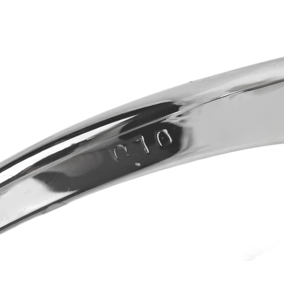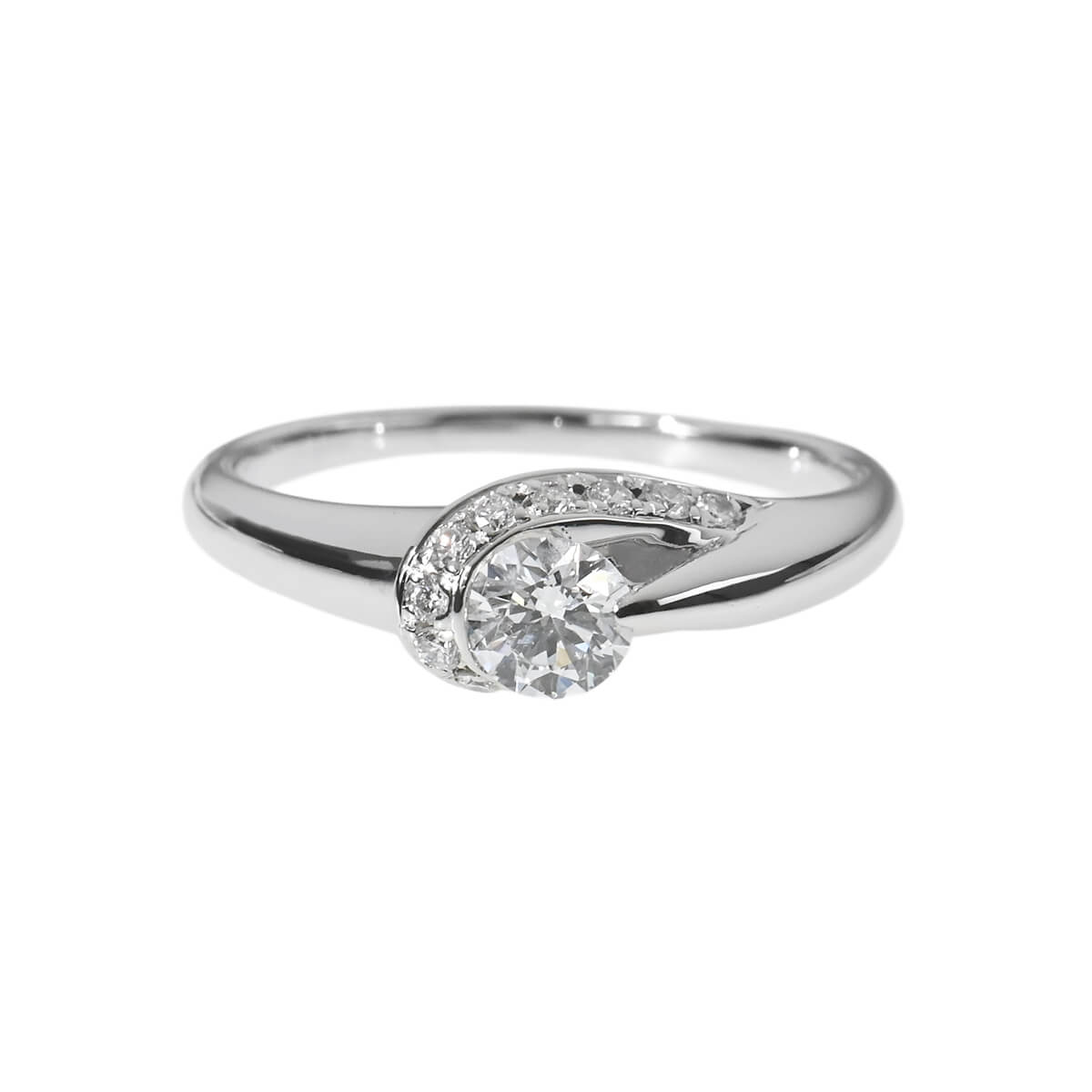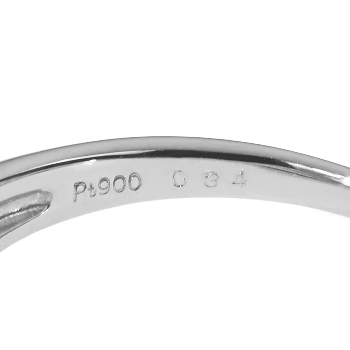 無色透明の「D」カラー、クラリティグレード「VVS1」、そしてカットグレード「VeryGood」と、ハイグレードな0.34ctのラウンドブリリアントダイヤモンドをセンターにセッティングしたプラチナ製リングです。包み込むようにデザインされたメレダイヤモンドのラインが、センターストーンの美しさを一層惹きたてながら、リングにさらなるきらめきを添えています。可憐で繊細でありながら贅沢な存在感を放ち、シンプルなのに印象的な、清潔な輝きも魅力のダイヤモンドソリティアリングです。