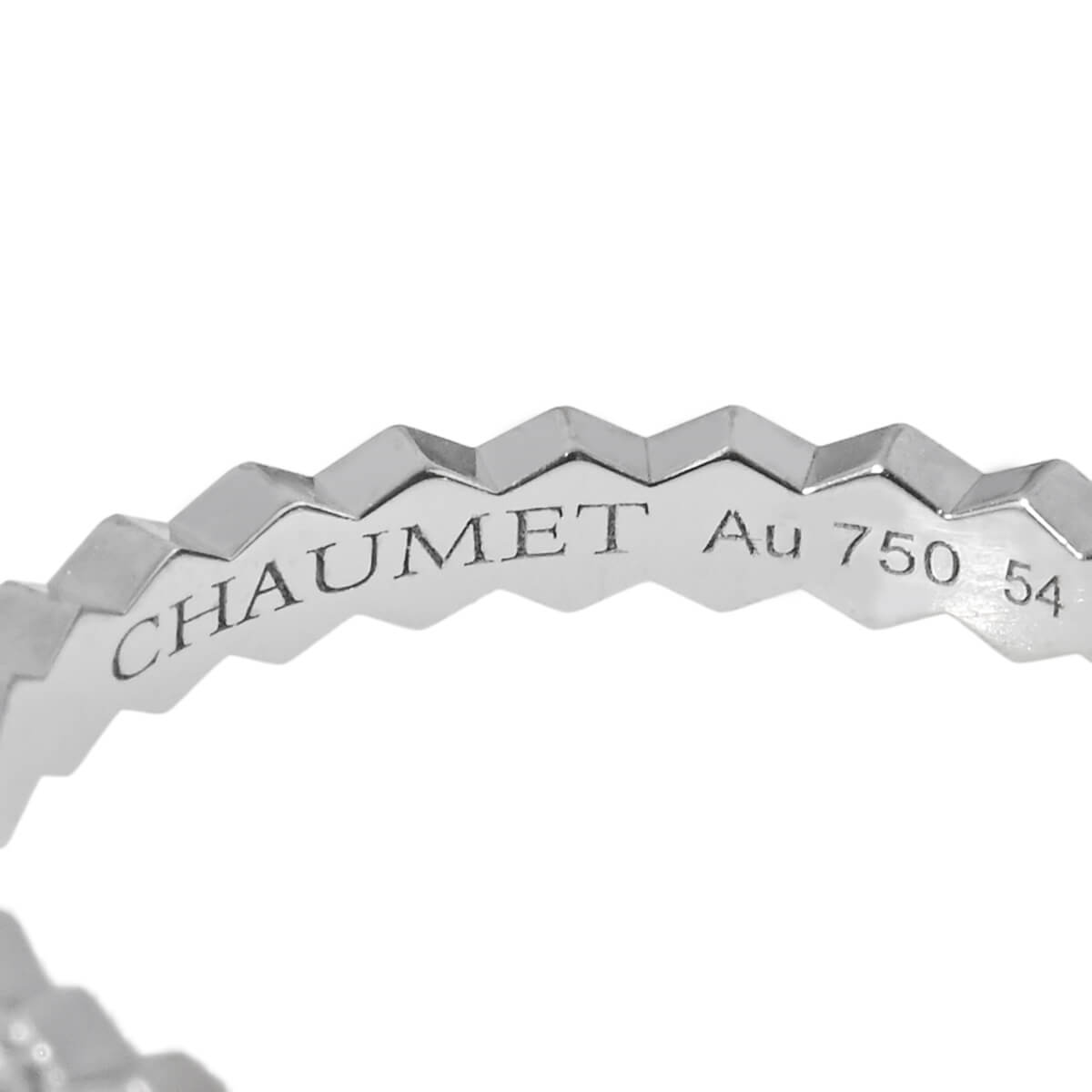 1780年、フランスのサントノレ通りにMarie-Etienne Nitot(マリ・エティエンヌ・ニト)が立ち上げた小さな宝石店からその長い歴史をスタートさせた、「グランサンク(5大宝飾店)」のひとつでもあるパリの名門老舗ジュエラー『CHAUMET(ショーメ)』。皇室の象徴であるミツバチを現代的に再解釈し、ミツバチの巣からインスピレーションを得た象徴的なハニカムデザインが印象的な「Bee de Chaumet(ビー ドゥ ショーメ)」コレクションは、グラフィックでタイムレスなジュエリーコレクションです。連なるハニカムモチーフにブリリアントカットのラウンドダイヤモンドを1周パヴェセッティングした、Bee de Chaumet(ビー ドゥ ショーメ)」のホワイトゴールド製リング。輝きと洗練を兼ね備えたリングが完璧な幾何学模様が指先を彩って、装いをフェミニンに、スタイリッシュに格上げします。