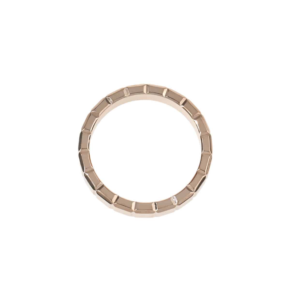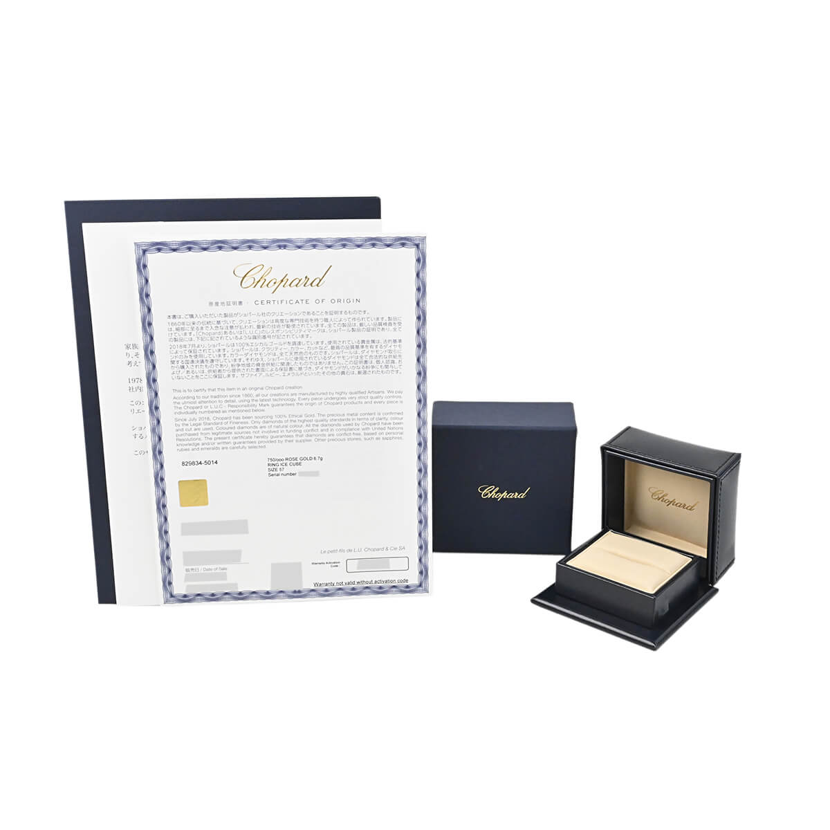 希少性と断面の審美性、そして無数のファセットに反映される無限の煌めきを大胆に披露する『Chopard(ショパール)』「アイスキューブ」コレクション。幾何学的なコンセプトをベーステーマにもち、完璧なフォルムのキューブが美しい輝きを放つシックでモダンなコレクションです。氷のキューブにインスパイアされた、エッジィでシャープなフォルムが際立つ、ローズゴールド製「アイスキューブ」リング。キューブが連なるリングが動くたび光をとらえ、指先で艶やかな輝きを放ちます。シンプルでありながらブランドの個性も楽しめる、洗練されたコレクションジュエリーです。