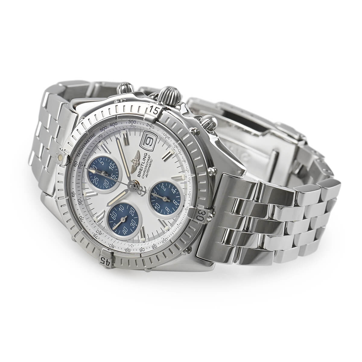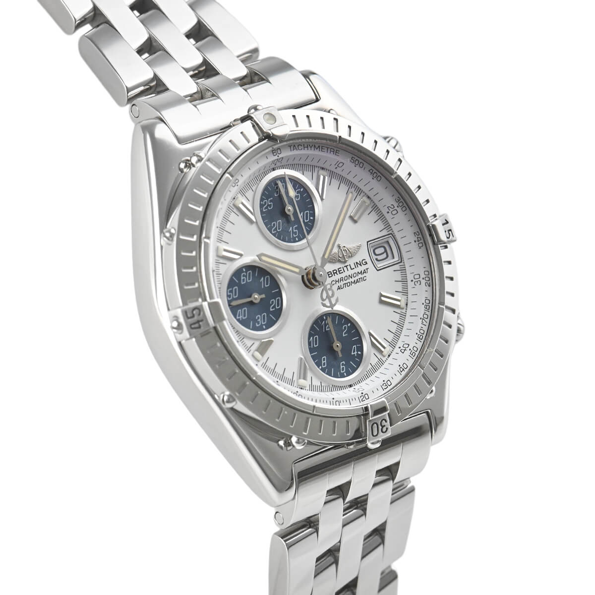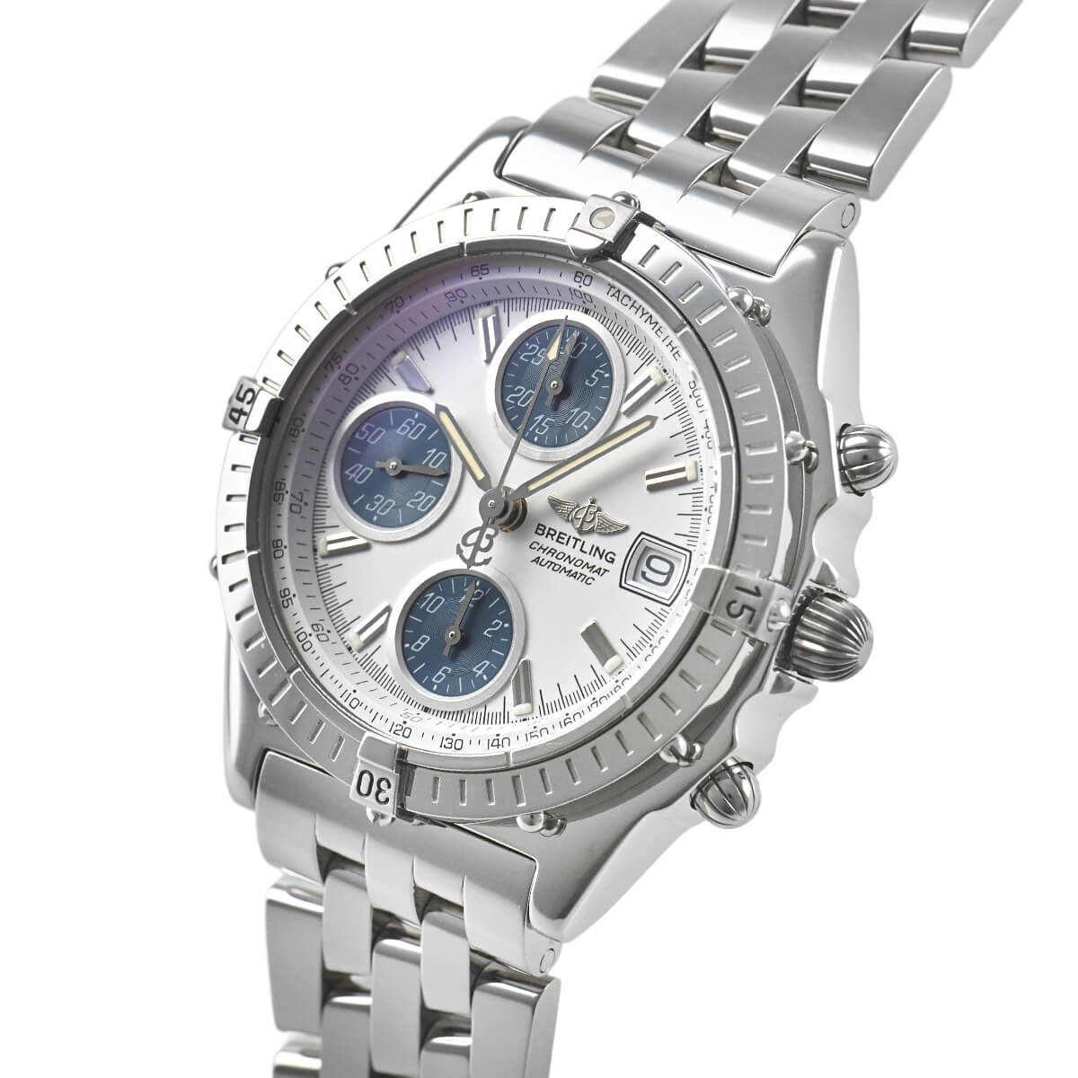 ブライトリングを代表する人気モデルである「クロノマット」が入荷しました。現行品に比べると少し小振りな旧型モデルで、日本人の細身の腕にも程よく馴染むのではないでしょうか。