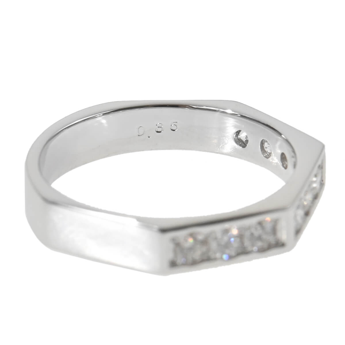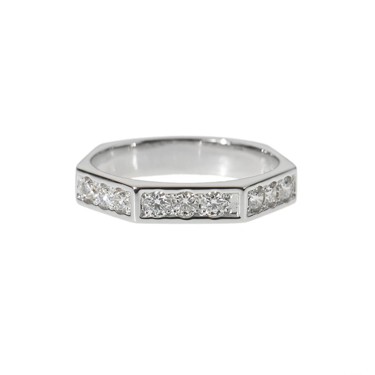 プラチナ製アームにトータル0.35ctのダイヤモンドをあしらった、ファセットデザインが輝くリングです。エッジの効いたデザインながら、見た目に反する着けやすさも魅力のひとつ。ユニセックスに使えるモードな雰囲気と洗練されたシンプルな美しさでをあわせもった、上質なダイヤモンドリングです。