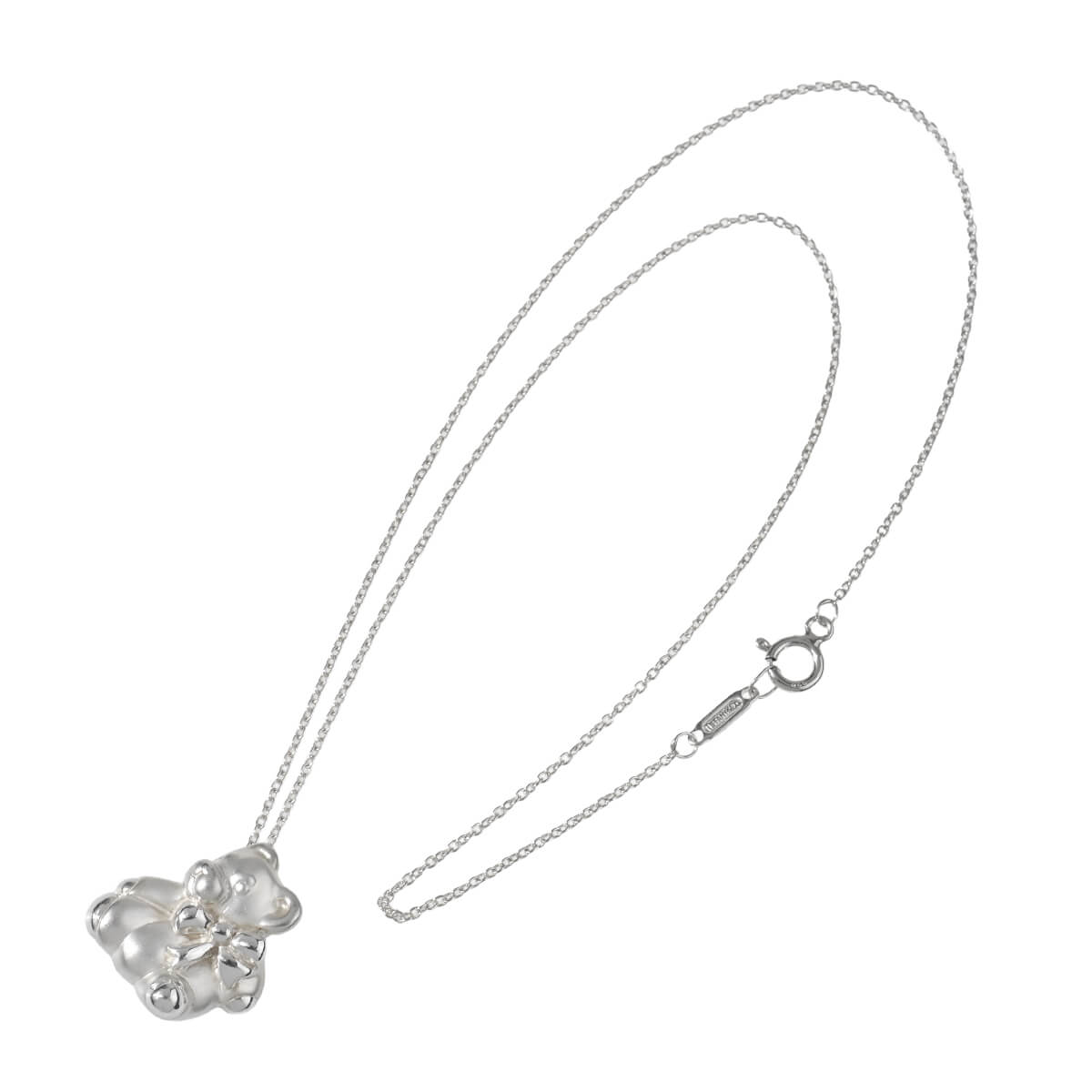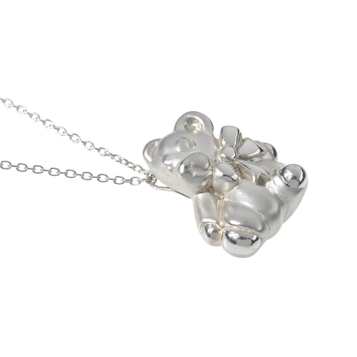 ダイヤモンドのエンゲージメントリングを永遠の愛のシンボルとして確立させた「チャールズ・ルイス・ティファニー」が1837年にアメリカで創業以来、息を飲むほど美しい傑作の数々を創造してきた『TIFFANY&Co.(ティファニー)』は、時代をリードしながら常に上質なエレガンスを表現し、今やジュエリーのスタイルのスタンダードとなりました。愛らしいフォルムの「テディベア」モチーフがひとつ、繊細なチェーンにあしらわれた、スターリングシルバー製ペンダントネックレス。サテン仕上げのテディベアに、艶やかなリボンが際立つモチーフは、ティファニーらしい遊び心とエレガントな可愛らしさをもっています。シルバーならではの軽い着け心地と、いくつあっても欲しくなってしまう可愛い価格も魅力のティファニーのシルバージュエリーです。