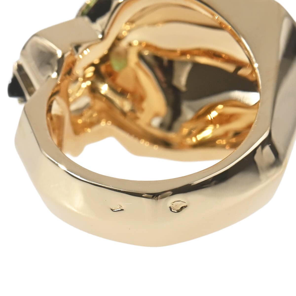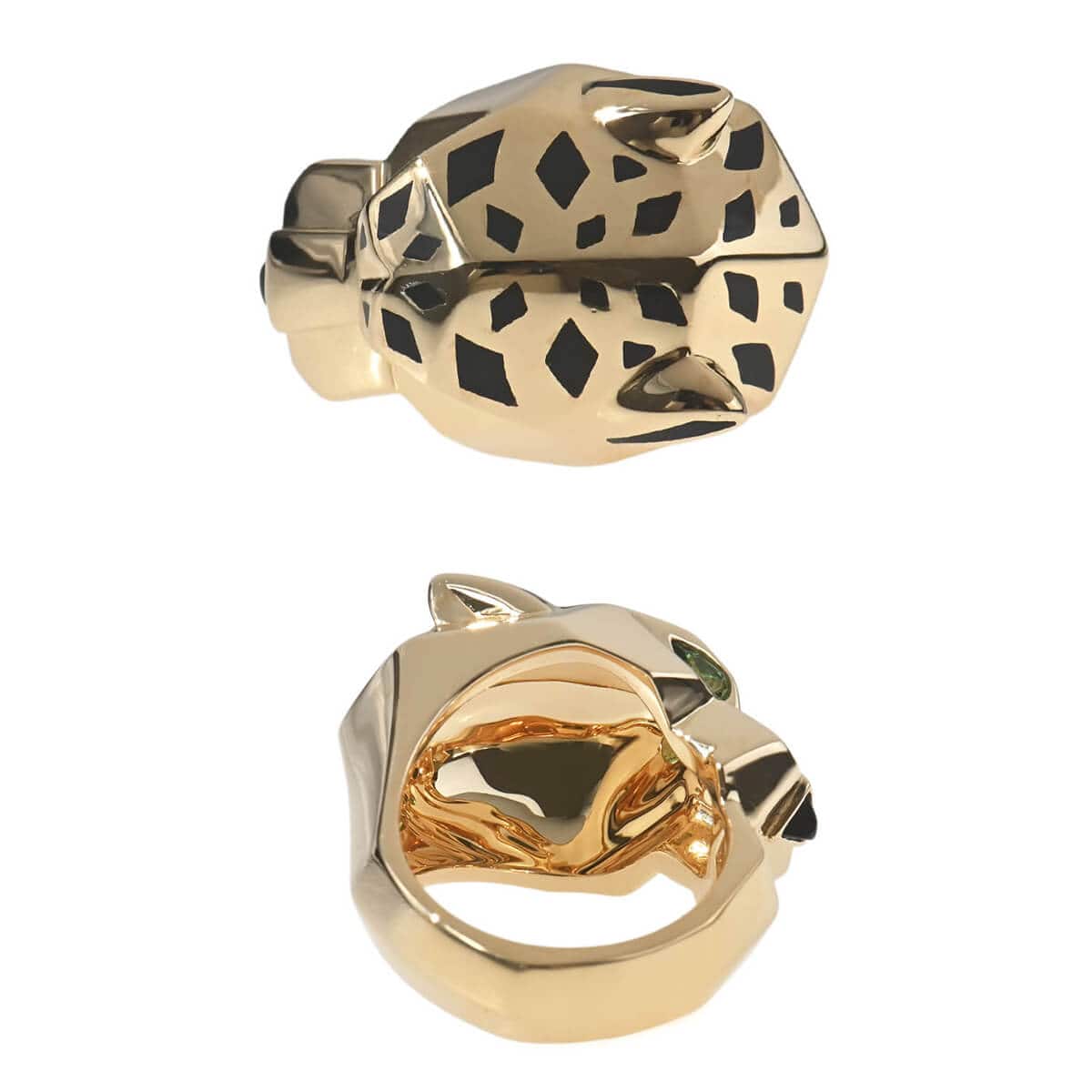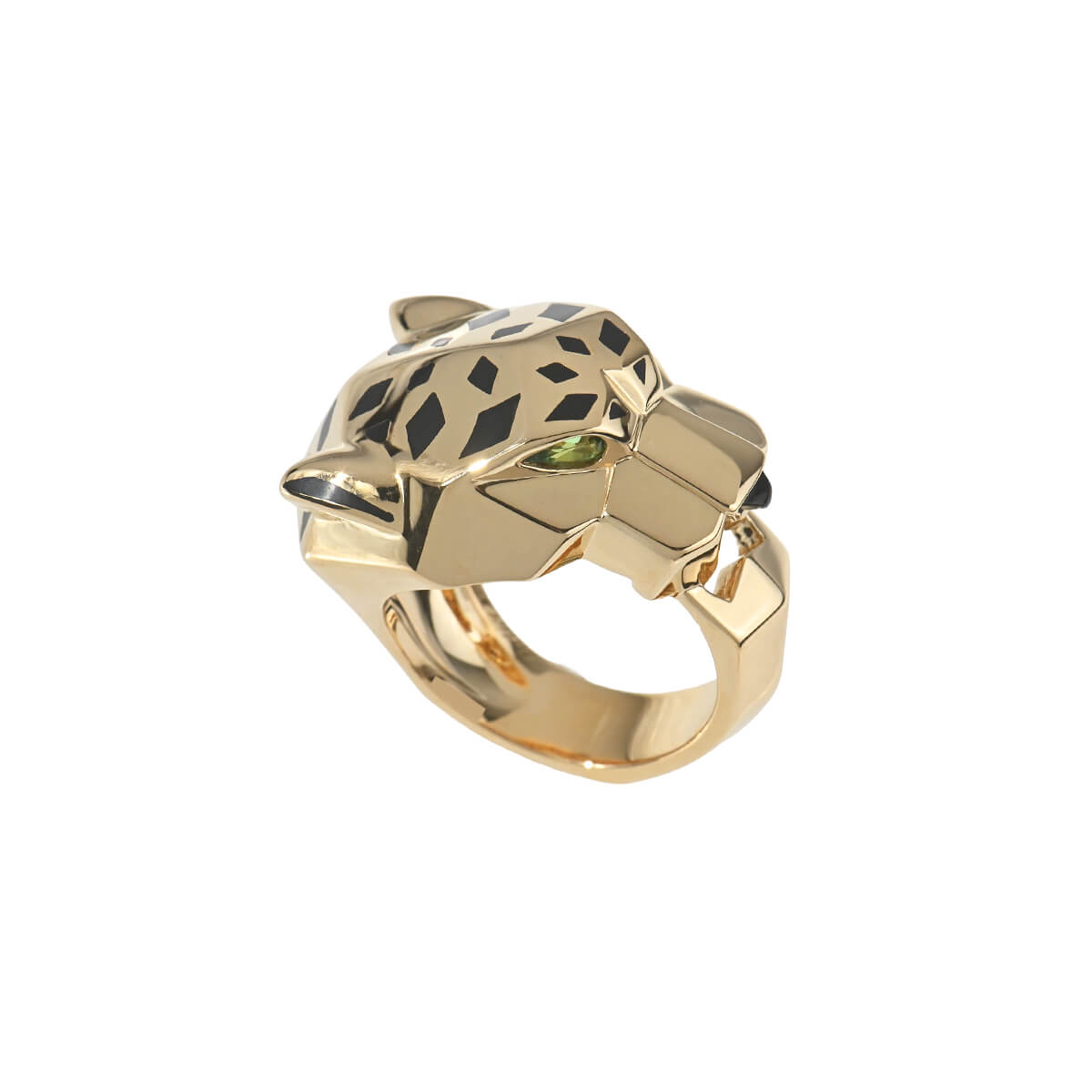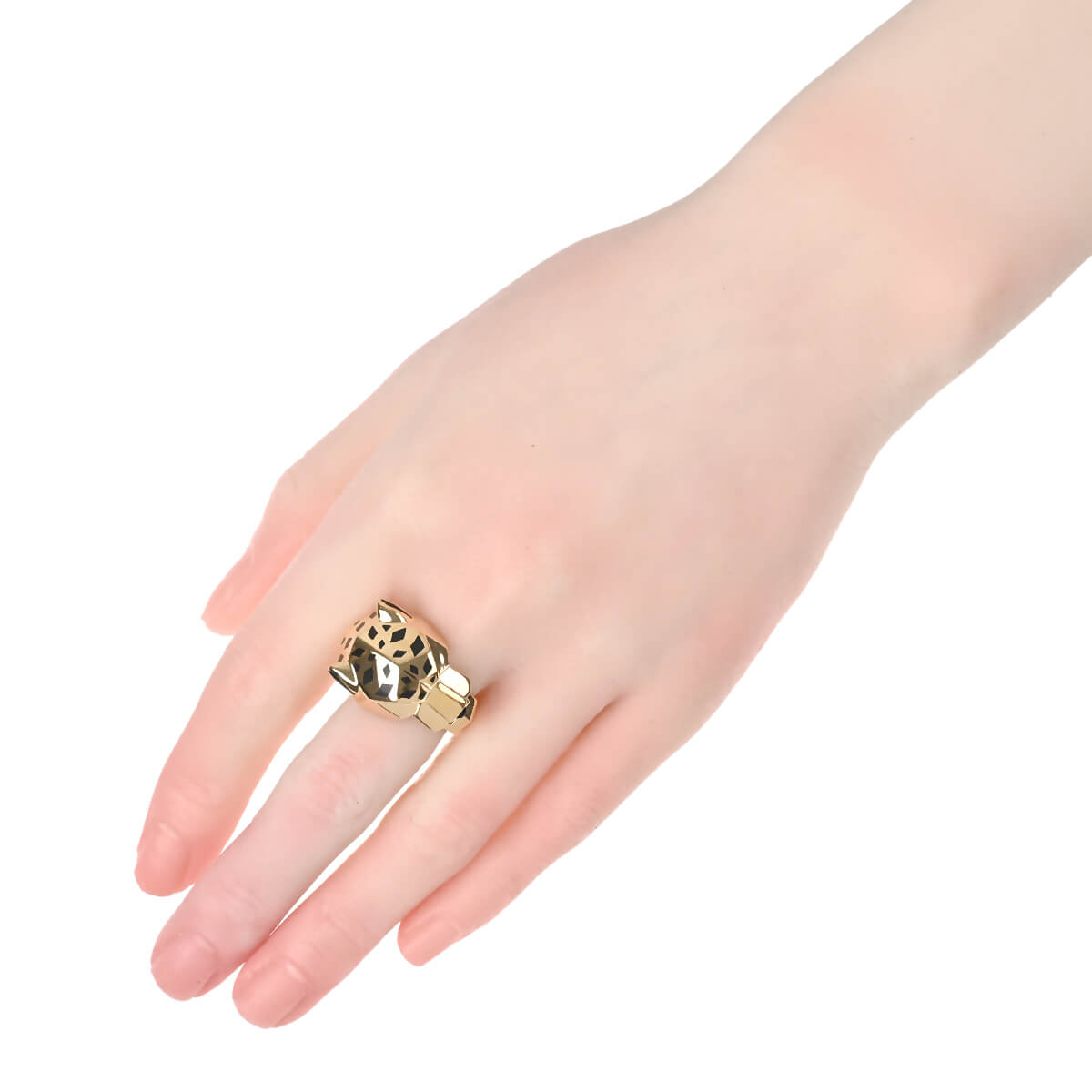 『Cartier(カルティエ)』のアイコン「パンテール」は、1914年にルイ・カルティエがこのネコ科の動物をカルティエ流にアレンジしたのが始まり。それをオート・ジョワイユ(特注宝石製作)界に君臨し、その世界に大きな影響を与えたジャンヌ・トゥーサンが引き継ぎ、この伝説の動物を壮麗なモチーフに仕上げ、メゾンの美学を体現していきました。以来ずっとパンテールは、獲物を捕らえたり、茶目っ気を見せたり、物憂げな様子だったりと、コレクションの変遷に合わせてその野性味あふれる多様な個性をあらわにしています。鼻にはオニキス、目にはグリーンが際立つツァボライトをあしらった“パンサー(豹)”がデザインされた、イエローゴールド製リング。ブラックラッカーで表現された斑点が際立つ、ゴールドで形づくられた美しく凛々しいフォルムのパンサーが、指にぴったりと寄り添います。まさにカルティエの芸術性を具現化している、ひとめ見てカルティエとわかる美しいハイジュエリーです。