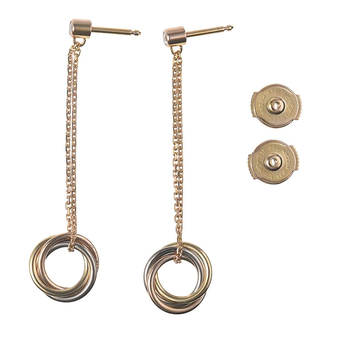 『Cartier(カルティエ)』を象徴するジュエリーのひとつ、3つのリングが躍動し、絡み合う、シンプルを極めた洗練とは何か、を深く感じさせる「TRINITY(トリニティ)」は、ルイ・カルティエの豊かな想像力によって1924年に生まれ、愛され続けているコレクション。繊細なピンクゴールドチェーンに繋がれた、絶妙に絡み合う柔らかなフォルムが美しいスリーカラーゴールドのちいさな輪が動くたび揺れてきらめくスリーゴールド製ドロップチェーンピアスです。シンプルでシンボリックな繋がり合う3つの環(リング)は、伝統的に愛情、友情、忠誠による結びつきを象徴していますが、現在その意味は身に着ける人の解釈に委ねられているそう。一世紀以上にわたりジャン・コクトーやマドンナ、キャサリン妃をはじめとする著名人に愛されてきた「トリニティ」の端正なエレガンスは、メゾンのタイムレスな魅力の証。身につける人それぞれが自由に解釈できる、スタイルとエレガンスを具現した、時を超越したアイコニックなコレクションジュエリーです。