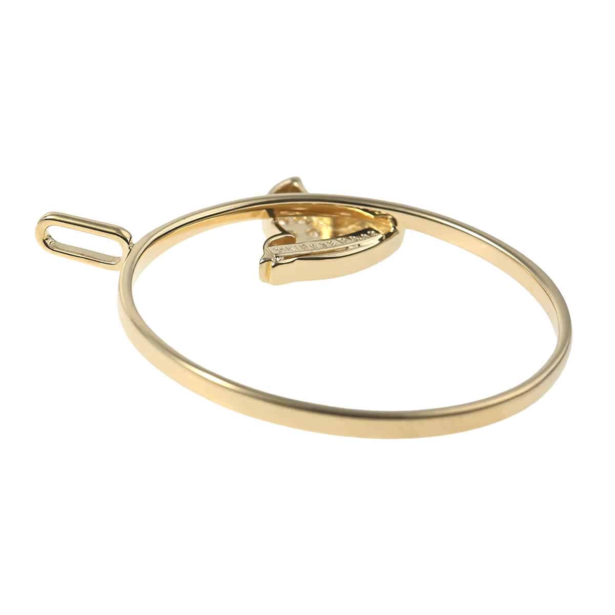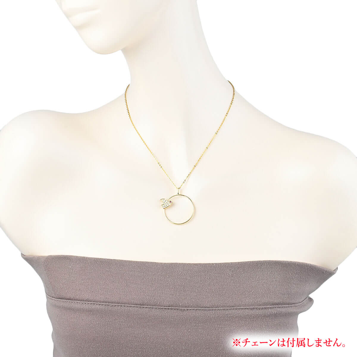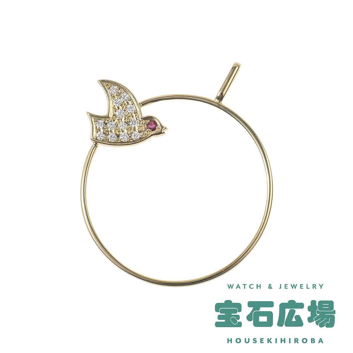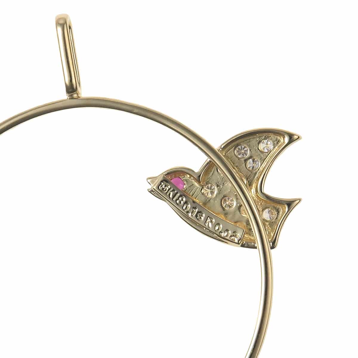 1893年に世界で初めて真珠の養殖に成功し、真珠に生涯を捧げ、「Pearl King(真珠王)」とまで呼ばれ歴史にその名を刻んだ「御木本幸吉」氏が、“世界中の女性を真珠で飾りたい”と夢を抱いて創業した『MIKIMOTO(ミキモト)』。パールだけでなく様々なジュエリーにも力を入れ、世界中から大きな評価を得て、今や日本を代表する世界のジュエラーとなりました。ダイヤモンドのきらめきをまとった愛らしい小鳥が、艶やかなゴールドラインで描かれた大きなサークルにデザインされたイエローゴールド製ペンダントヘッド。小鳥の目にあしらわれたルビーが、美しく印象的なアクセントになっています。長めのチェーンにあしらったり、レザーやコットンコードとのコーディネートでカジュアルに、首に沿うチョーカーでインパクトある大人のお洒落を楽しむのも素敵です。