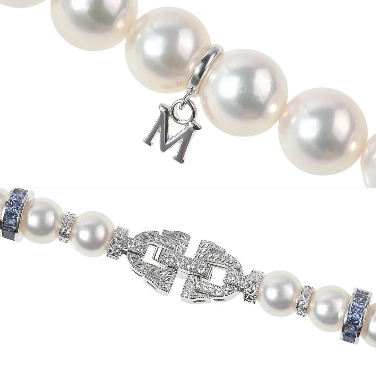 1893年に世界で初めて真珠の養殖に成功し、真珠に生涯を捧げ、「Pearl King(真珠王)」とまで呼ばれ歴史にその名を刻んだ「御木本幸吉」が、“世界中の女性を真珠で飾りたい”と夢を抱いて創業した『MIKIMOTO(ミキモト)』。以来、養殖真珠のオリジネーターとして120年以上も真珠の魅力と向き合い、“真珠と言えばMIKIMOTO”と言われるほどに誰もが知る、日本を代表する世界のジュエラーとなりました。MIKIMOTOが厳選した、このうえなく美しいパールが連なるチョーカーとブレスレットのセット。ダイヤモンドの煌めきを纏ったデザインクラスプと、そのサイドにあしらわれたサファイアのパーツが、バックスタイルまでエレガントに彩ります。デザインクラスプを斜めにもってきてアレンジししたり、ブレスレットとチョーカーで揃えてつけたり、繋げてロングネックレスにしたりと、スタイリングで印象を変えながらパールの美しさを楽しめる、ミキモトらしいエレガントな華やかさあふれるハイジュエリーです。