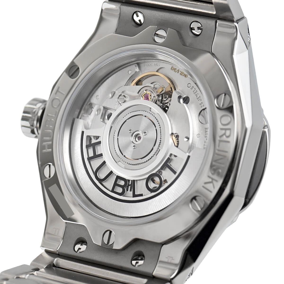 裏蓋はシースルーバックとなっており、42時間パワーリザーブのHUB1100がご覧になれます。