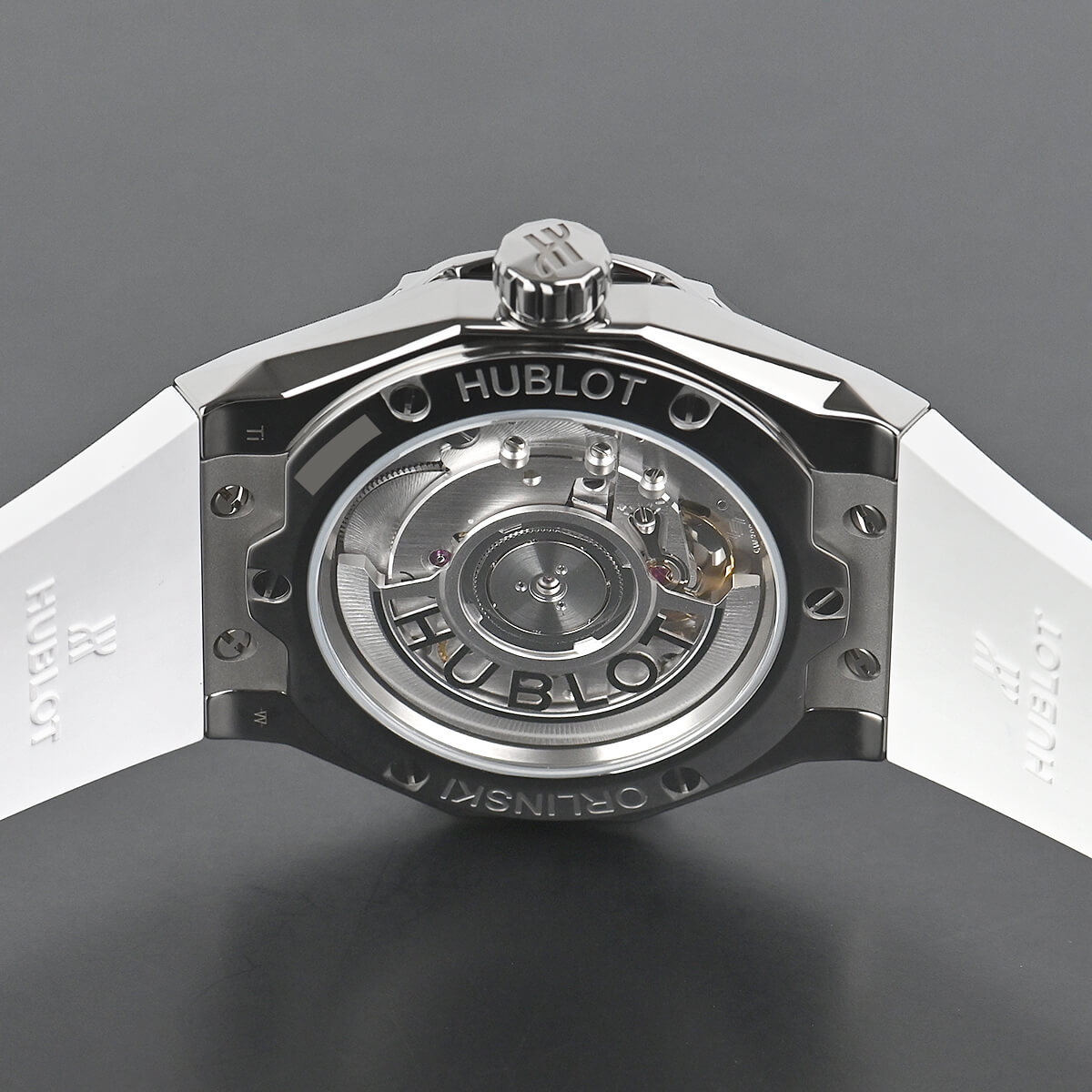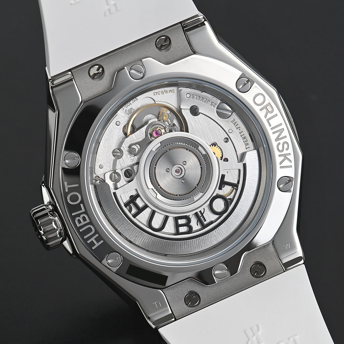 裏蓋はシースルーバックとなっており、42時間パワーリザーブのHUB1100がご覧になれます。