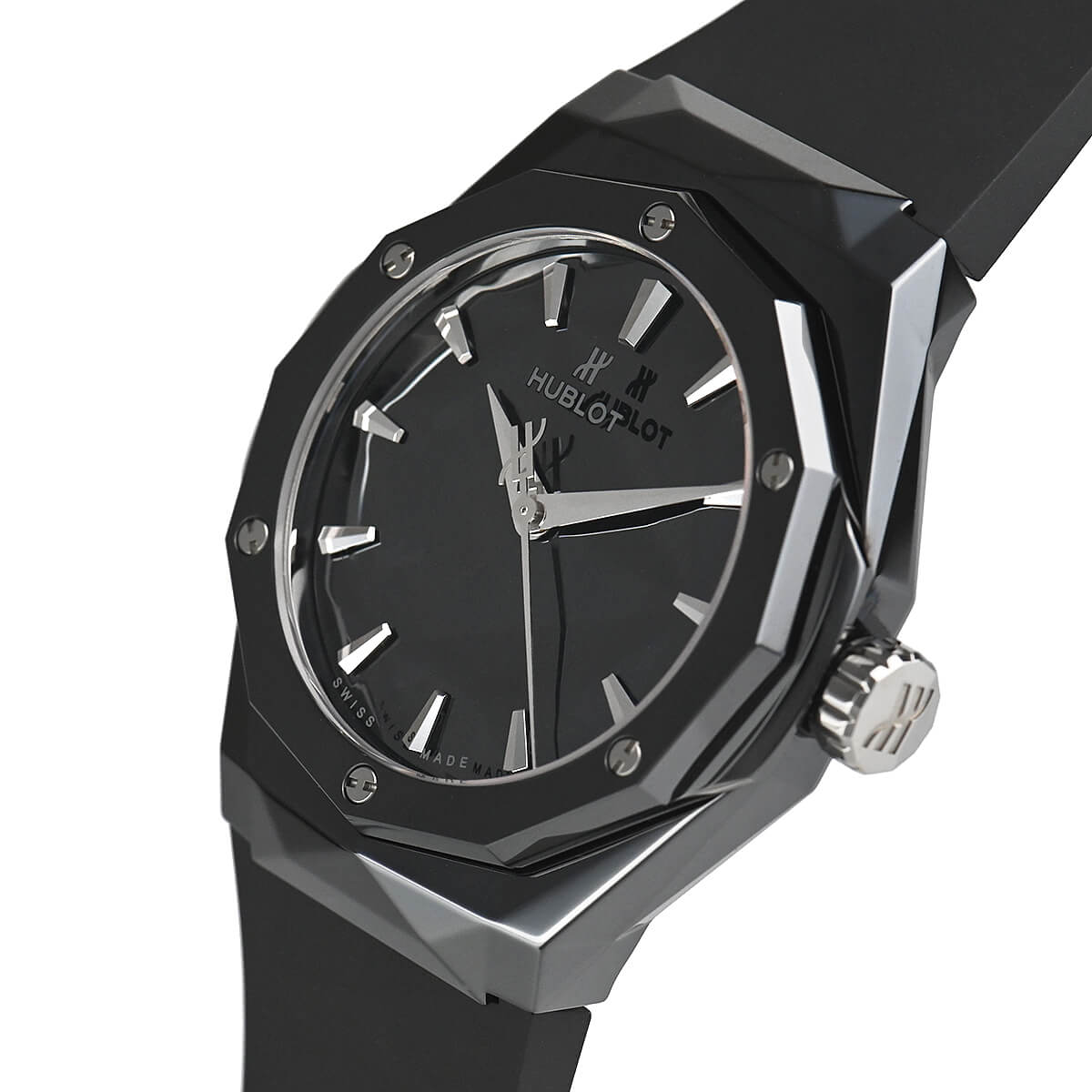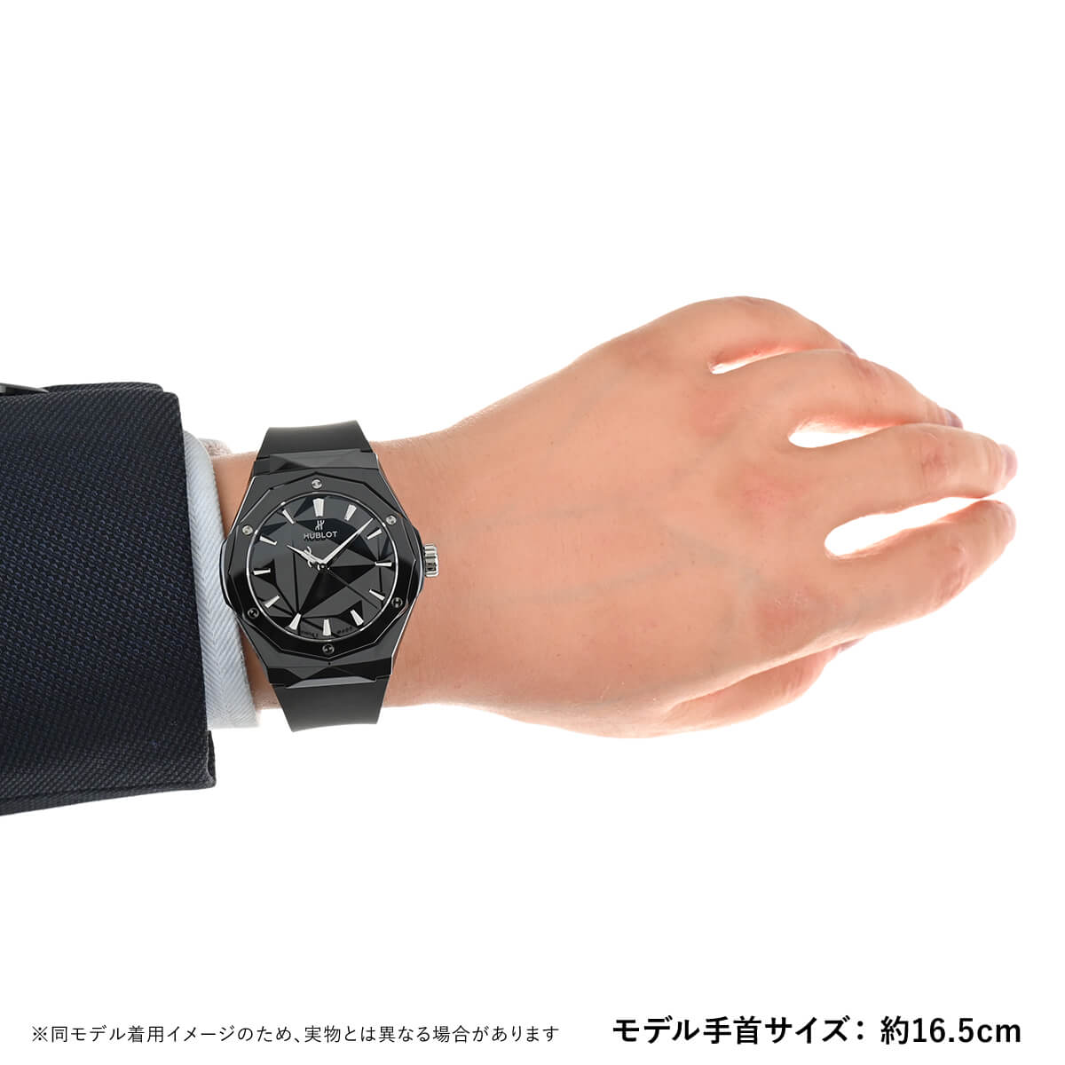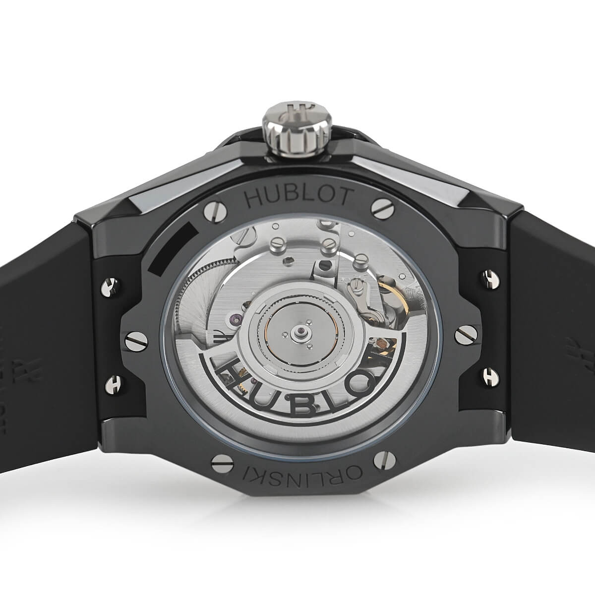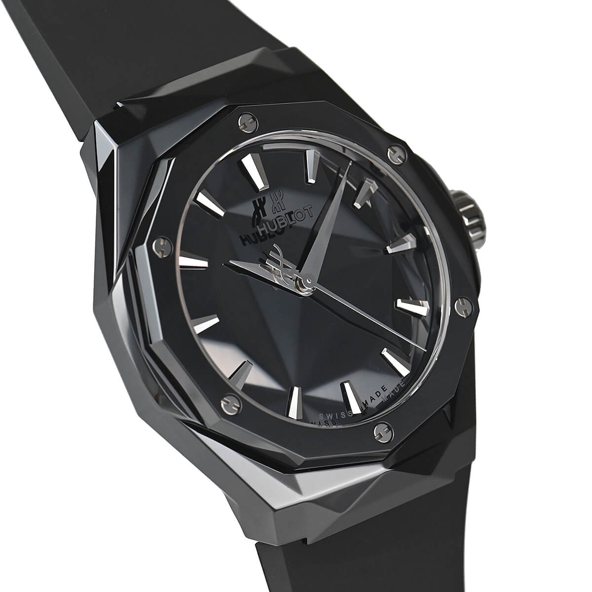 革新的な素材を使い時計製作を行うウブロと、フランス人現代アーティストの奇才、リチャード・オーリンスキー氏がコラボレートして生まれた【クラシックフュージョン オーリンスキー】。こちらはケースや文字盤、ラバーストラップをブラックカラーで統一した「ブラックマジック」です。