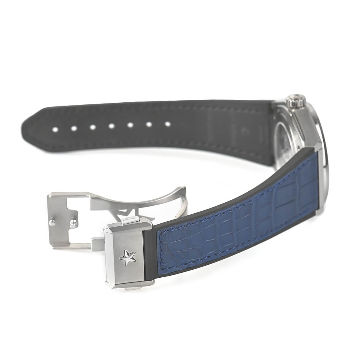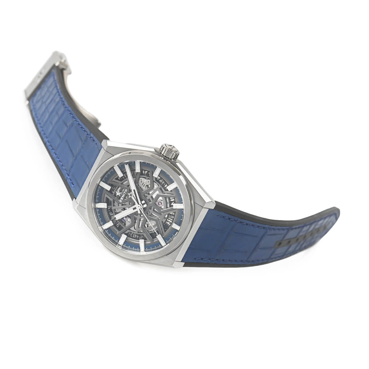 シースルーバックからは、ゼニスのブランドロゴでもあるスターを象ったローターを装備し、地板やローターにオープンワークが施された美しいムーブメントがご覧になれます。