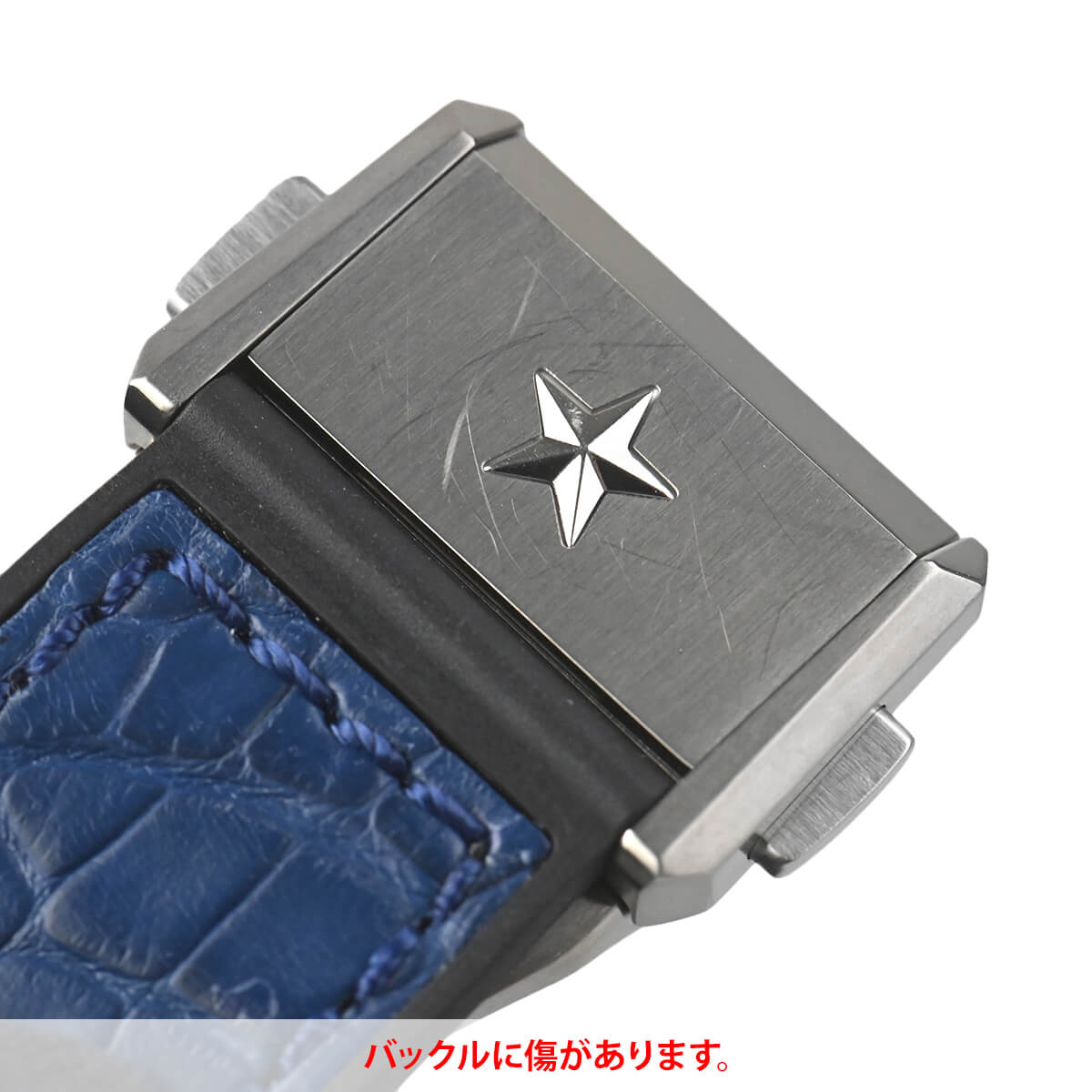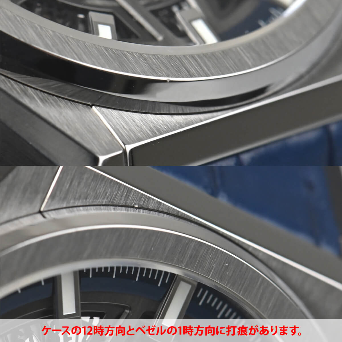バックルに傷、ケースの12時方向とベゼルの1時方向に打痕があります。