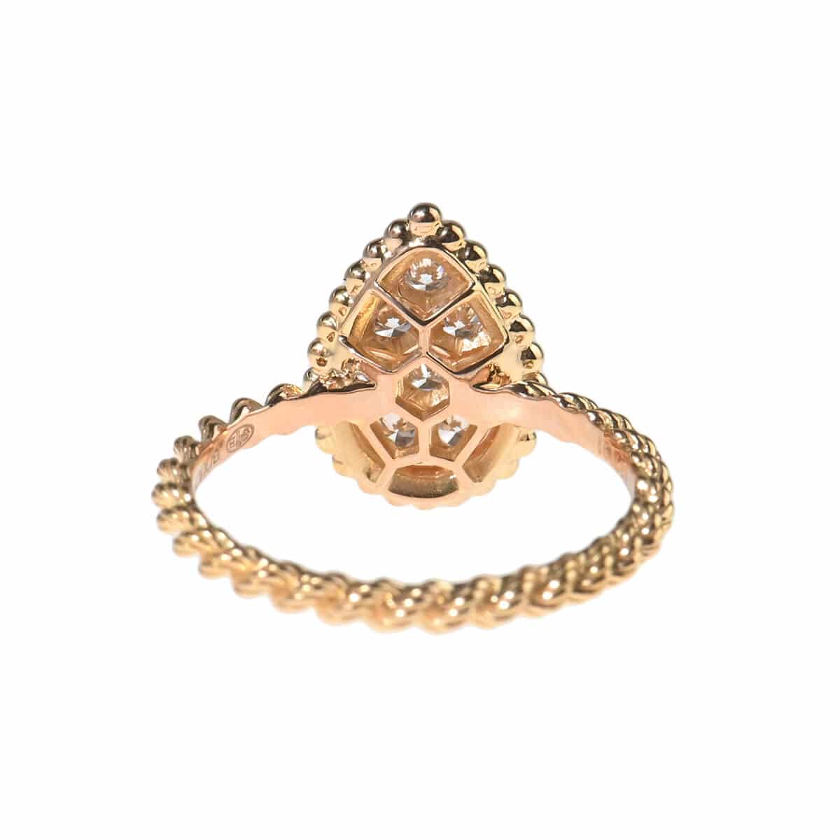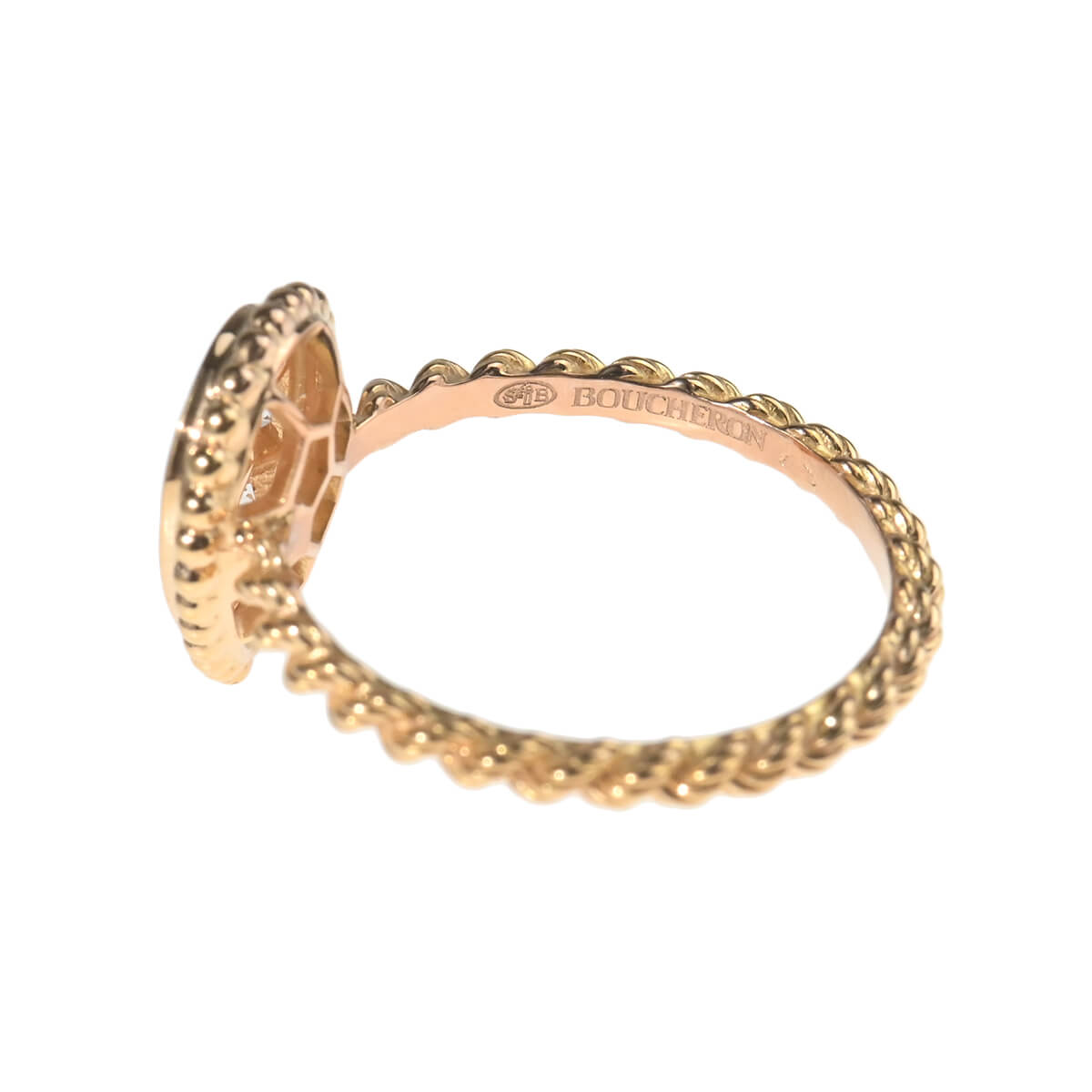 『BOUCHERON(ブシュロン)』のアーカイブにも多くみられるメゾンのアイコンのひとつ、守り神の象徴であり不死のシンボルでもあるスネークが、よりモダンになって蘇った「セルパンボエム」コレクション。ブシュロンが誇る職人の技とサヴォワールフェール(ノウハウ)が見事に表現されたコレクションです。洗練されたゴールドビーズの彫刻に囲まれた、パヴェダイヤモンドが一層際立つ、魅惑的な美しさをもつスモールサイズのピンクゴールド製リング。繊細に仕上げられた華奢なツイストチェーンからインスピレーションを得たアームと、遊び心を持って表現されたシェイプのモチーフとのバランスが印象的なリングは重ね着けしても素敵です。