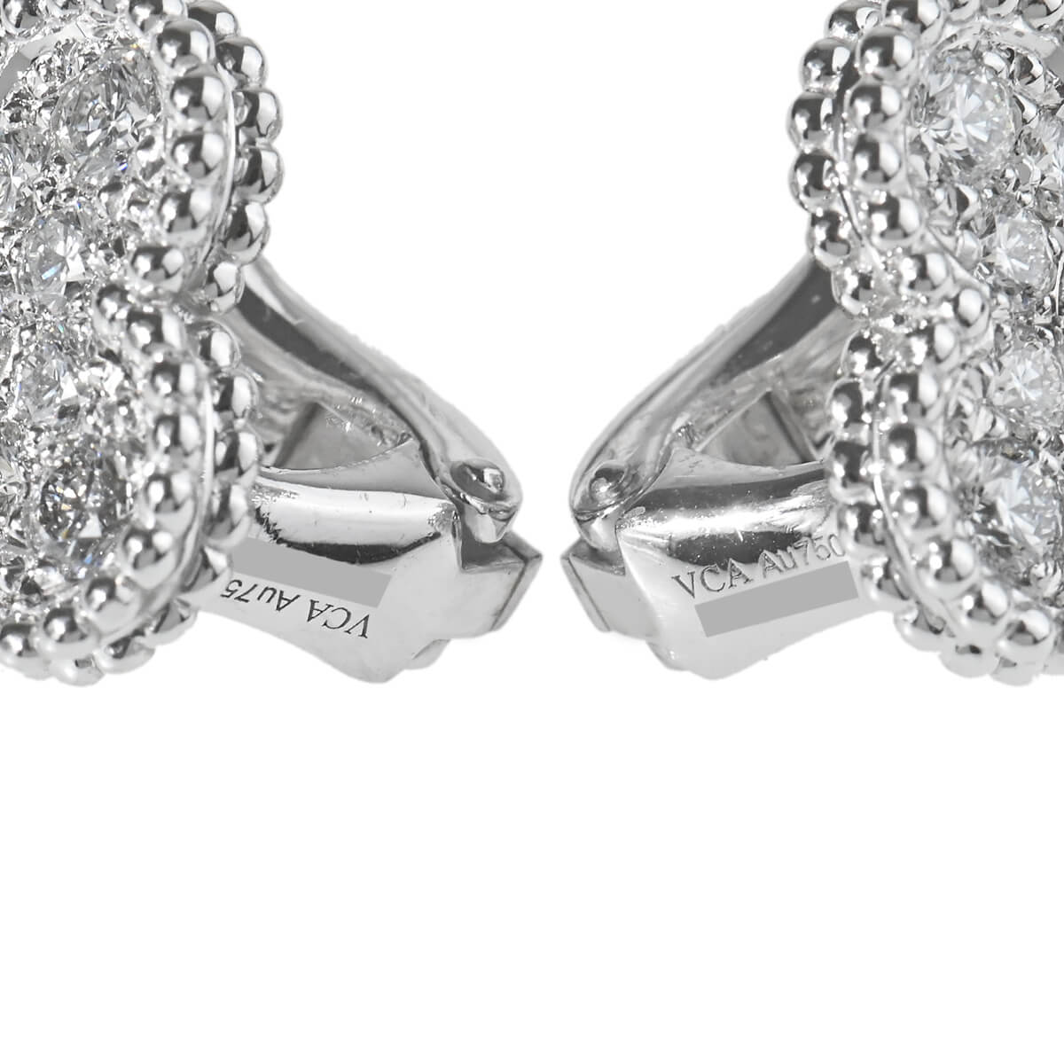 1968年に初めて誕生した幸運のシンボル「アルハンブラ」の特徴を受け継ぎ、『VanCleef&Arpels(ヴァンクリーフ&アーペル)』ならではの独創性と時を超えるエレガンスを湛える「ヴィンテージアルハンブラ」コレクション。極上の煌めきを放つダイヤモンドの煌めきをまとった喜びに満ちた幸運のモチーフが、ひときわ目を引く存在感を放つ「ヴィンテージアルハンブラ」ホワイトゴールド製ピアスです。定番コレクションながら定番モデルとは一線を画す、このうえなくエレガントで優美なピアスは、身に着けるだけで特別な気分に。可憐なホワイトゴールドビーズに縁どられた四つ葉のクローバーに着想を得た幸運のシンボルが、耳元で圧倒的な存在感を放ちます。たくさんつけてもしつこくなく、むしろ“素敵”にまとまる、不思議な個性をもつアルハンブラはコレクションで揃えていって、バリエーションを魅せるのも楽しいですね。