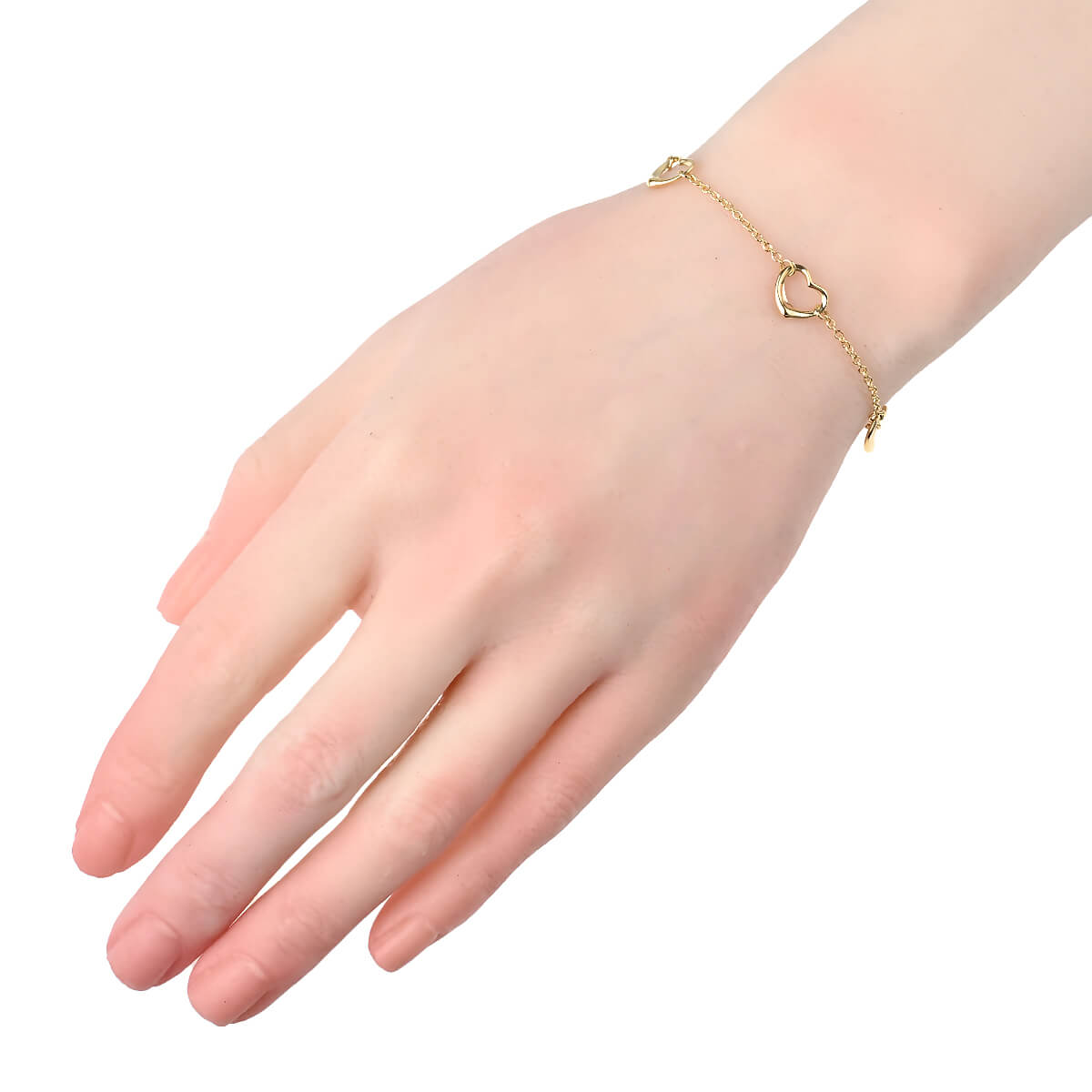 1970年代ファッションミューズとして注目を集めながら、『TIFFANY&Co.(ティファニー)』のジュエリーデザイナーとしても活躍してきたエルサ・ペレッティ。目にしたものすべてを彫刻的で有機的、そして抗えないほどに官能的なジュエリーやオブジェへと昇華させてきた彼女は、デザインの真のパイオニアともいわれています。ペレッティのエレガントなスタイルを体現したアイコン的デザインのひとつ、ティファニー「オープンハート」コレクションのイエローゴールド製ブレスレット。シンプルながら心ときめくフォルムのオープンハートが5つ、ゴールドチェーンにあしらわれたブレスレットは、ボリュームがありながら軽やかで、スタイリングを可憐に、エレガントに印象づけます。