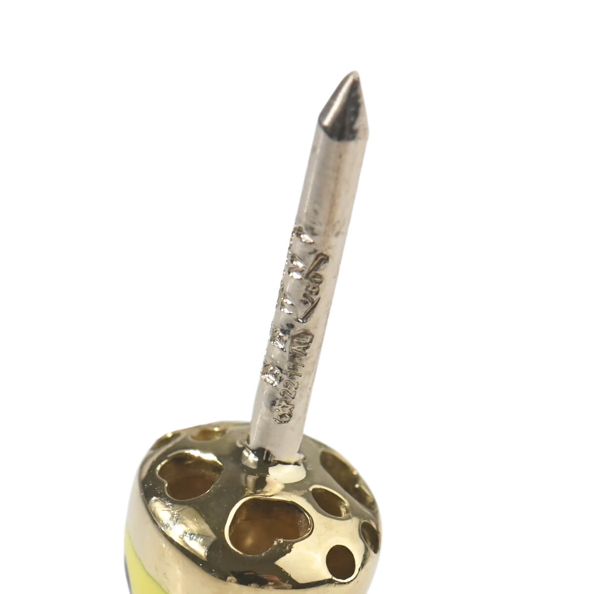 2世代にわたり、イタリアのアトリエで卓越したジュエリーをつくり続ける『PASQUALE BRUNI(パスクワレ ブルーニ)』。ジュエリーを身につける人がつけた瞬間に感じる“Vera Passione(真の情熱)”を秘めた作品をつくることを使命としたブルーニのジュエリーは、美しい個性とインパクトにあふれています。イエローのエナメルのてんとう虫に黒いドットが際立つ、イエローゴールド製ピンブローチです。Tシャツやカットソーなどの薄手のトップスにもつけることのできる軽やかな着け心地も魅力のピンブローチは、自由なアレンジで自分だけのお洒落を楽しんで。ジェンダーレスに使える、大人のユーモアとセンスの光る愛らしくお洒落なピンブローチです。